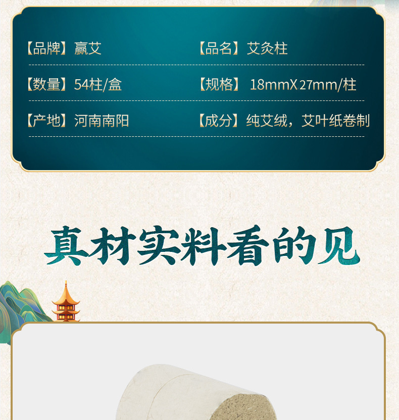 平直堂厂家直销赢艾艾灸柱54粒三年家用随身灸温灸柱陈艾艾绒批发