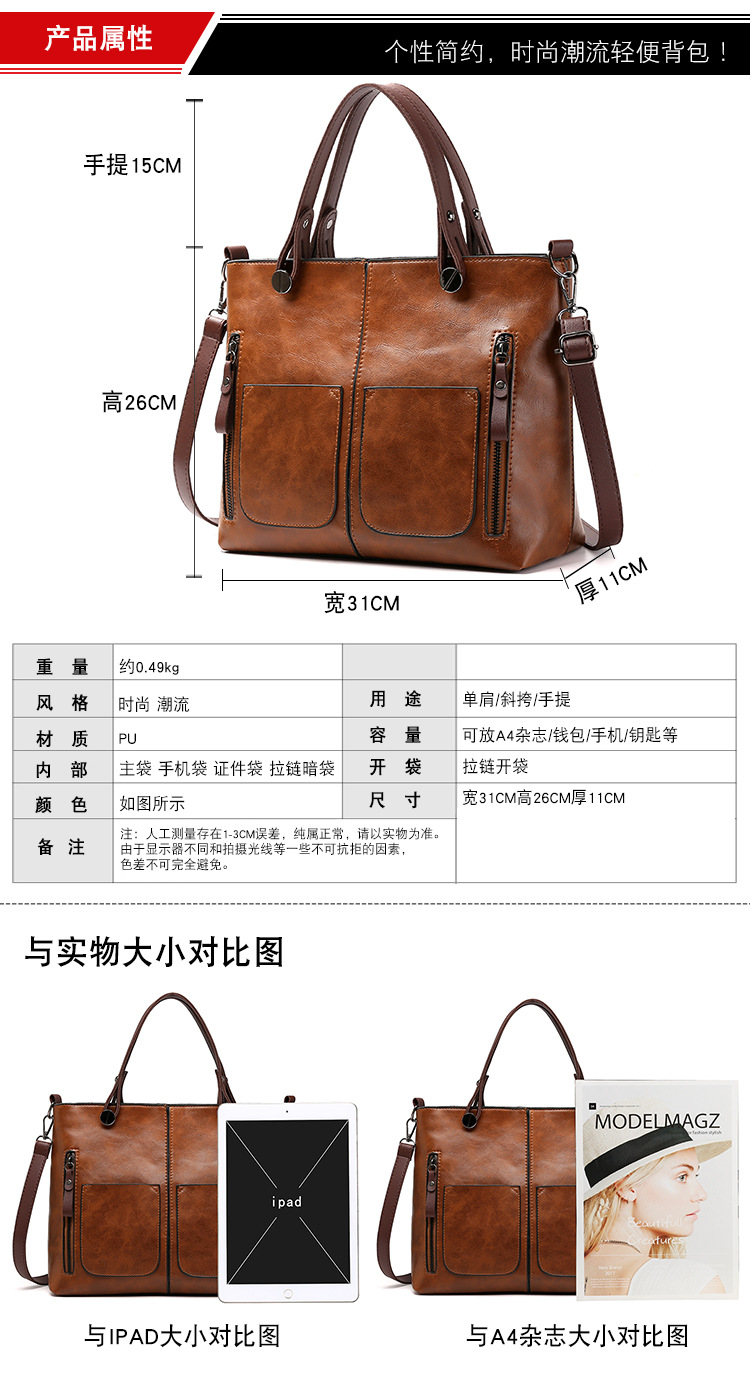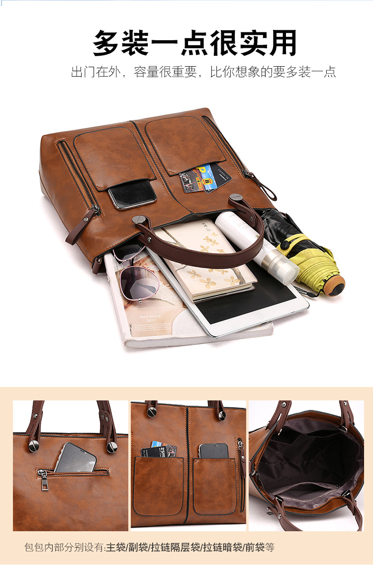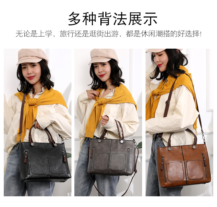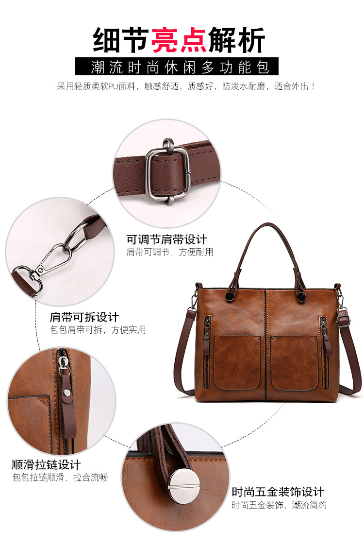 包包女2024新款欧美时尚单肩包女大容量复古女士托特包简约斜跨包