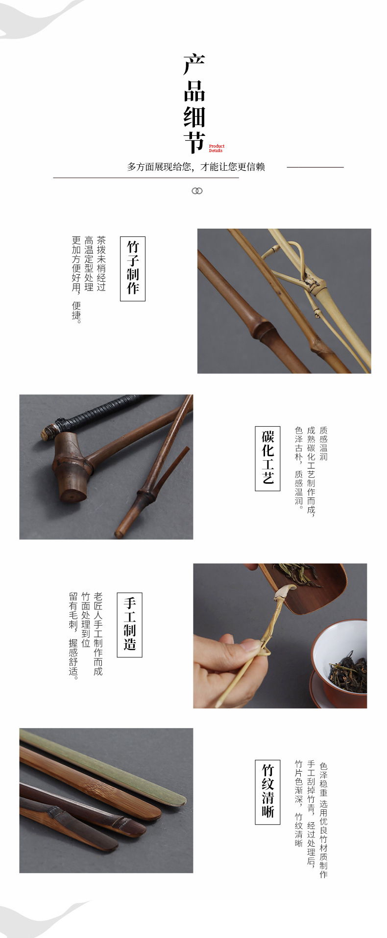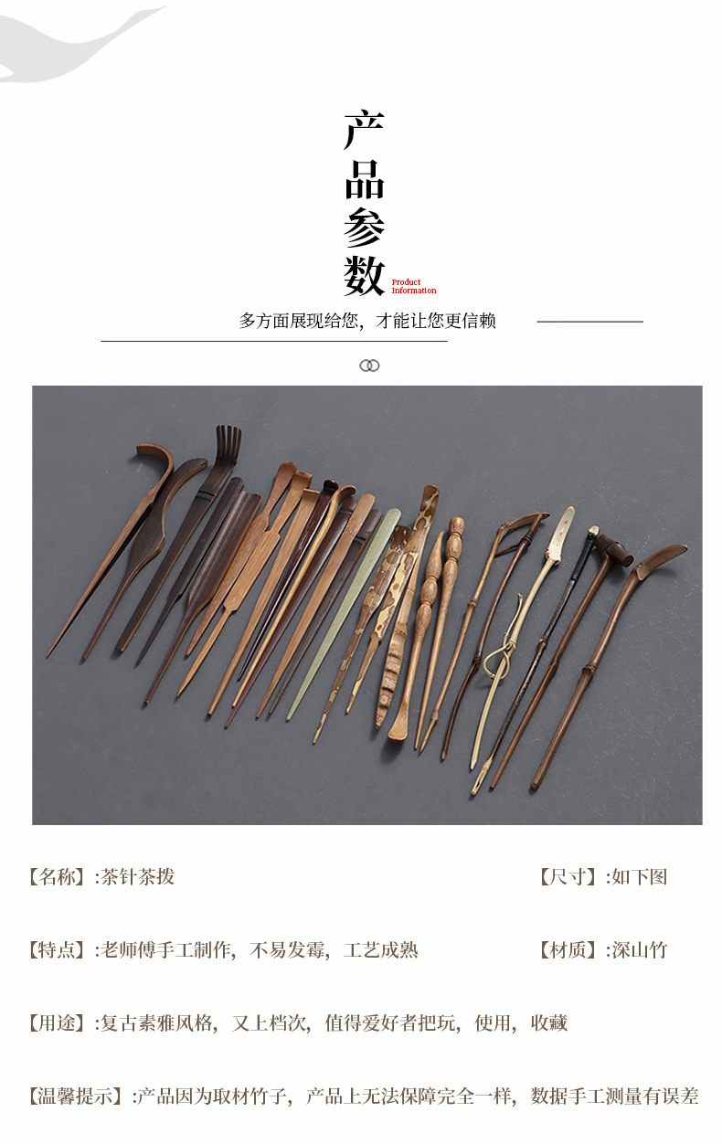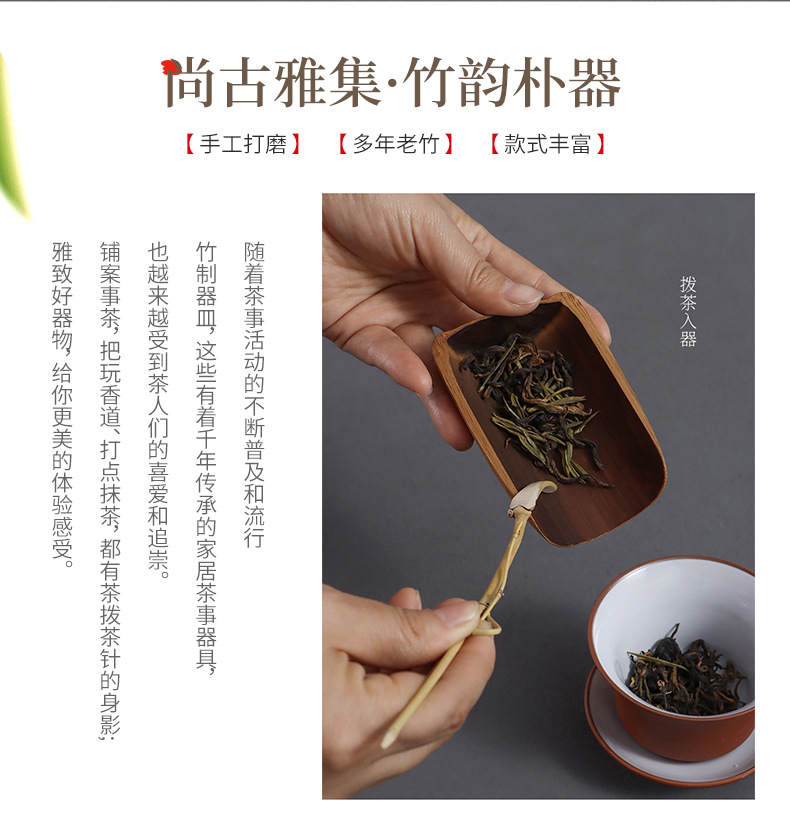 手工老竹枝茶针茶拨茶扒茶杓 煤竹制茶道六君子功夫茶具配件壶通