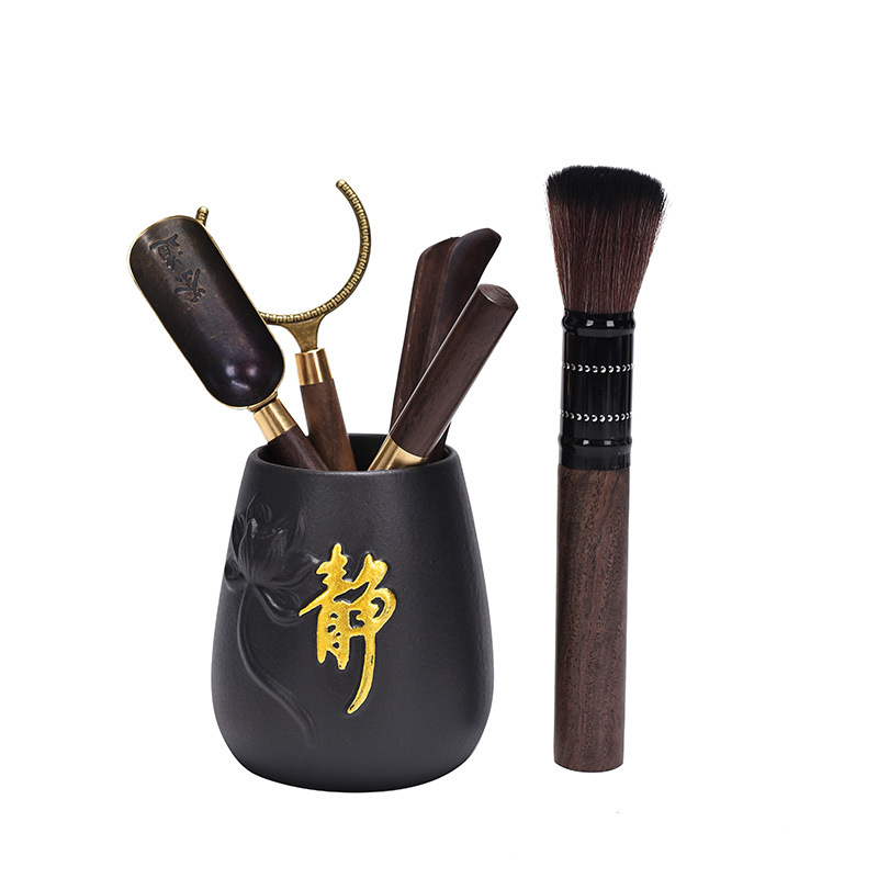 黑檀茶道五件套茶道六君子功夫茶具配件黑檀茶针茶勺茶夹杯叉茶刷