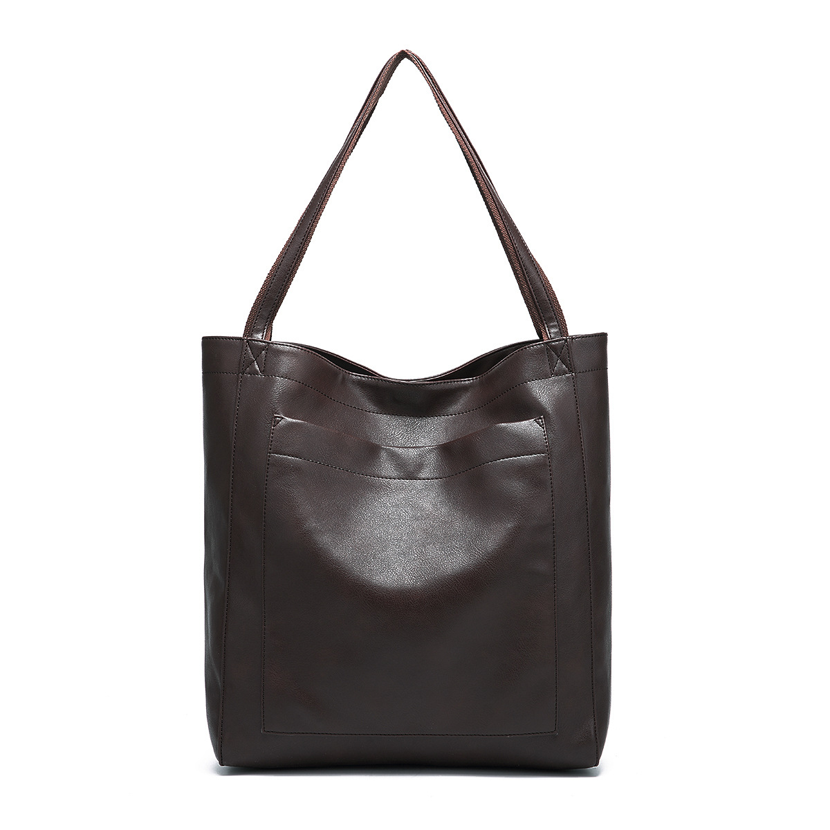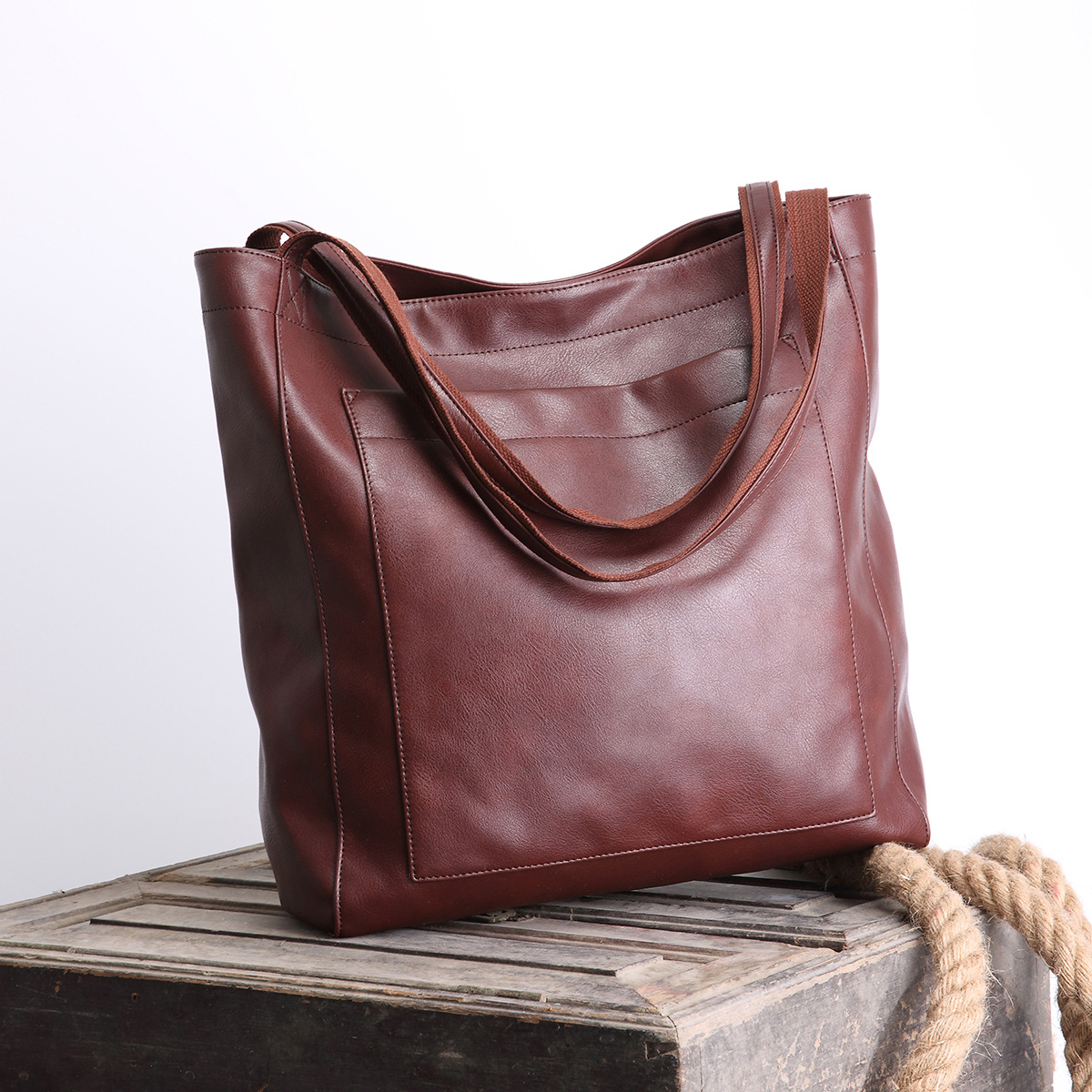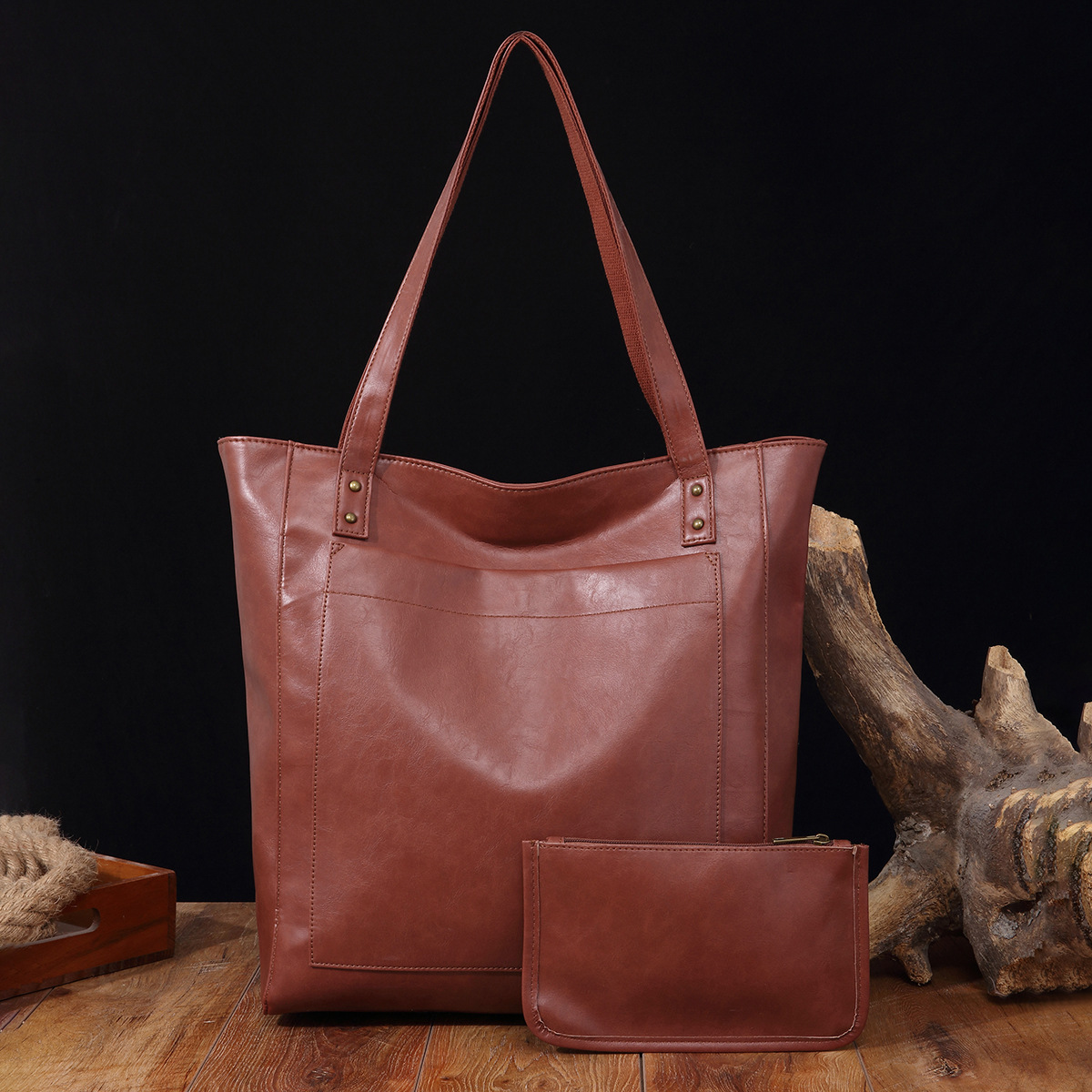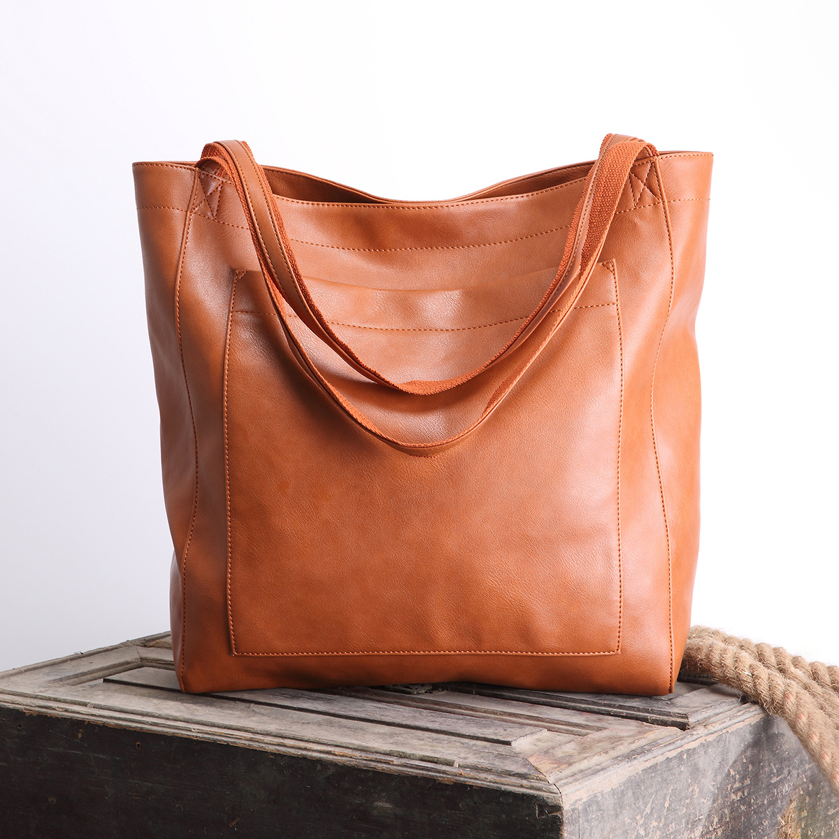带口袋女式软皮手提单肩复古油腊皮大容量时尚新款托特包包供跨境