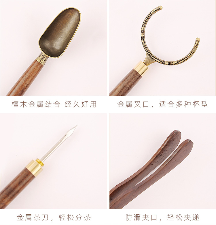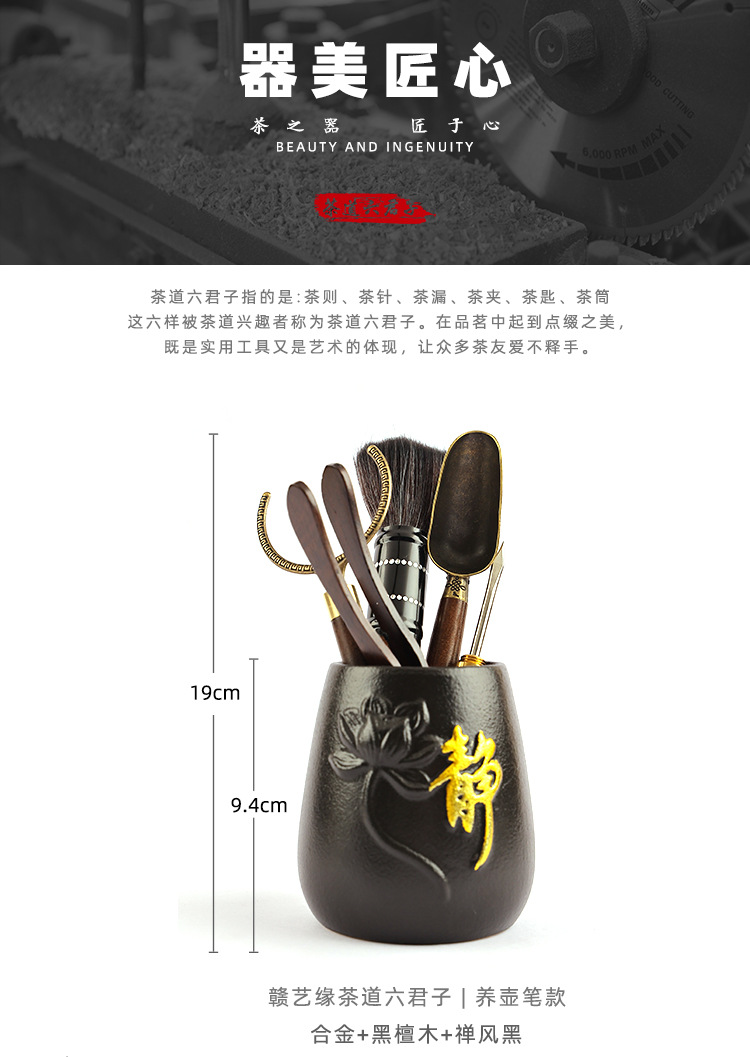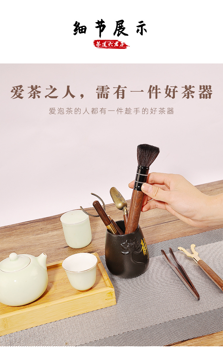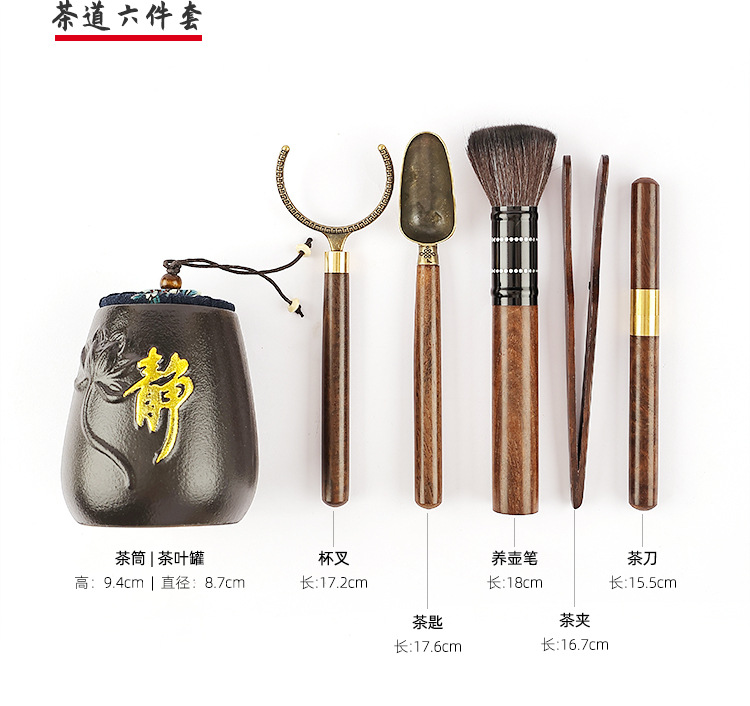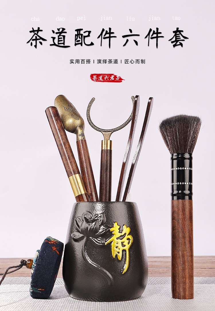 黑檀木茶道六君子配件套装批发 茶夹茶刀养壶笔功夫茶具泡茶工具