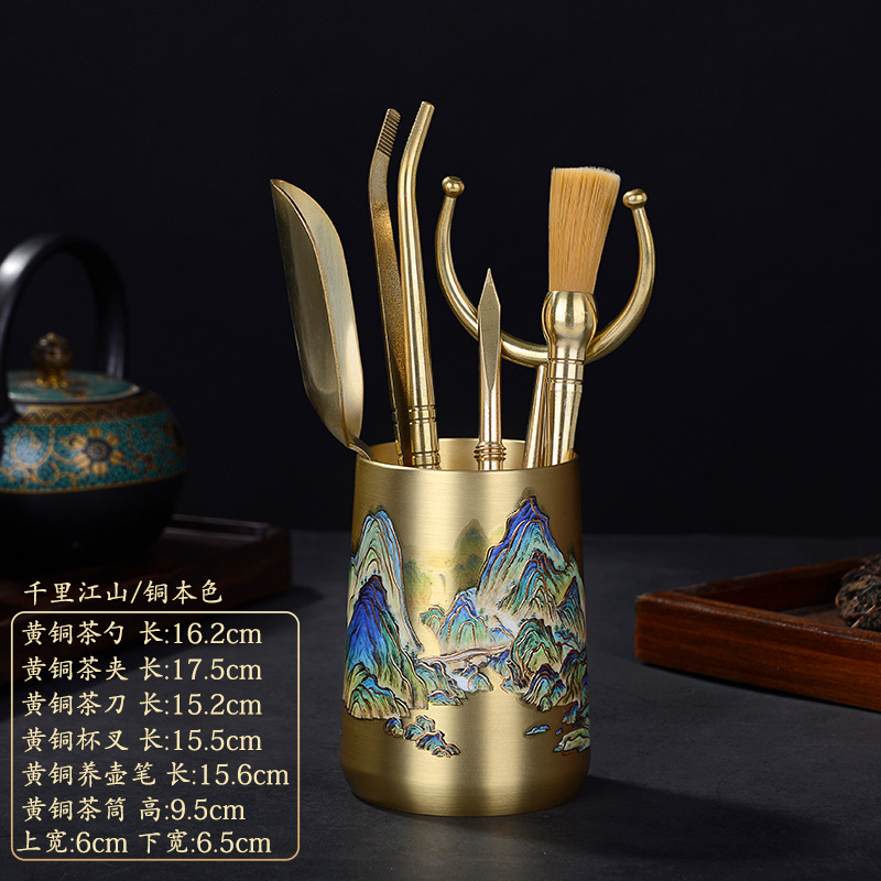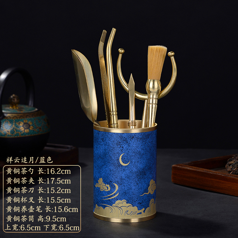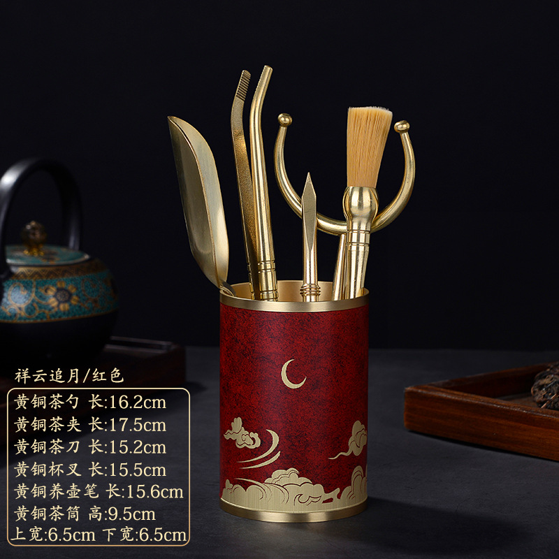 隆饮斋黄铜茶夹茶道六君子套装茶刀茶勺功夫茶具配件养壶笔6君子