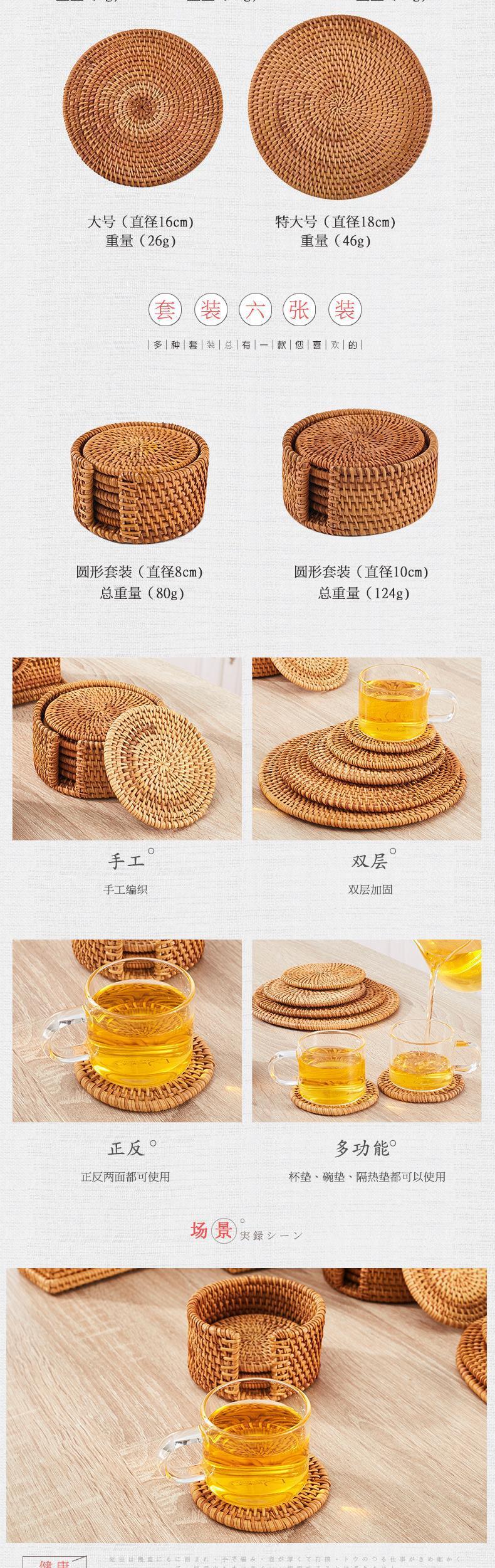 藤编织茶杯垫托茶壶垫子越南壶承茶道茶席功夫茶具配件收纳六君子