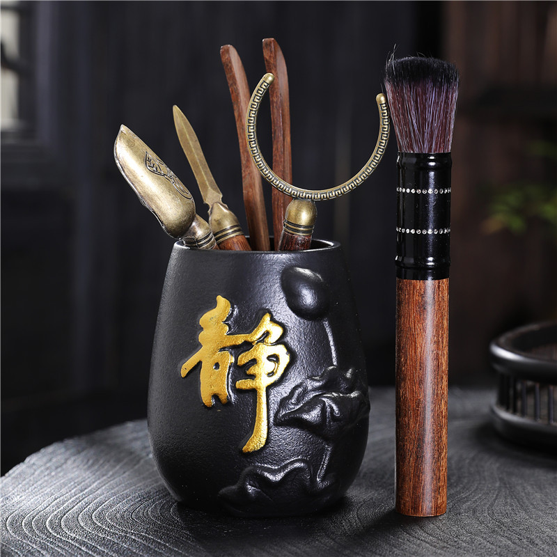 陶瓷茶道六君子功夫茶具配件黑檀实木套装泡茶工具茶夹针优惠批发