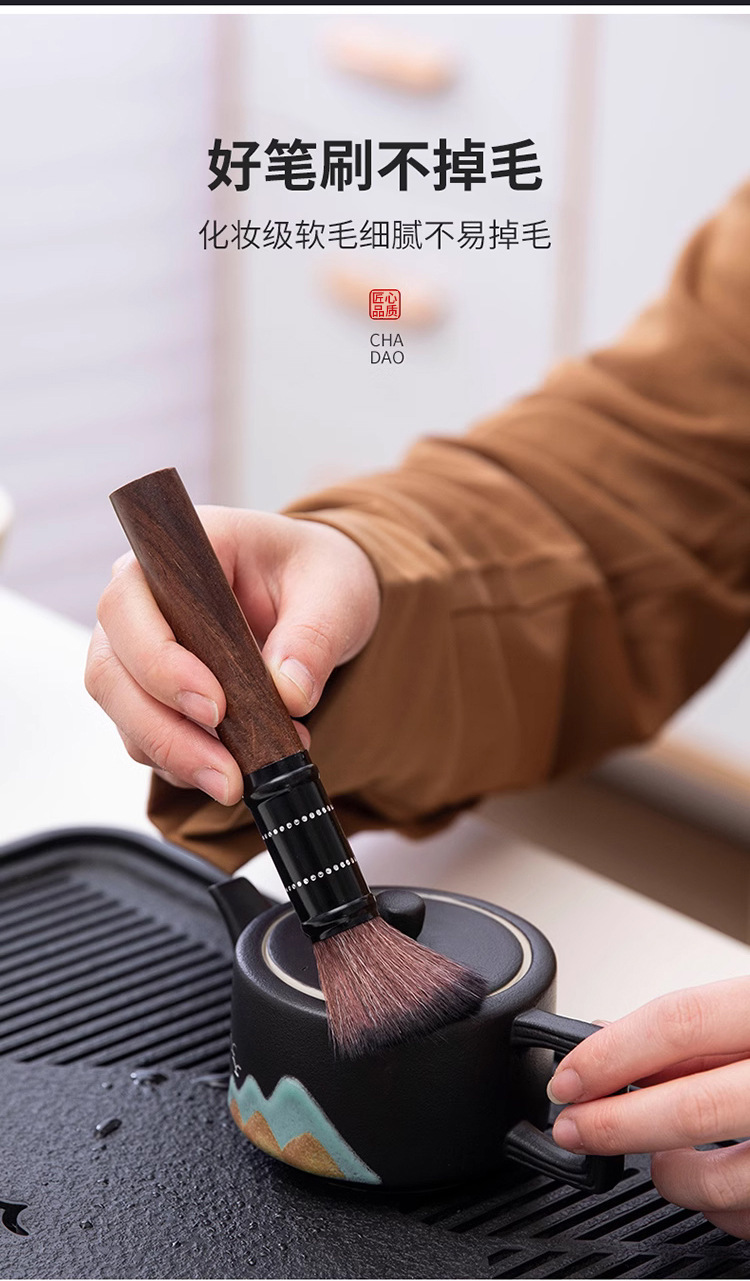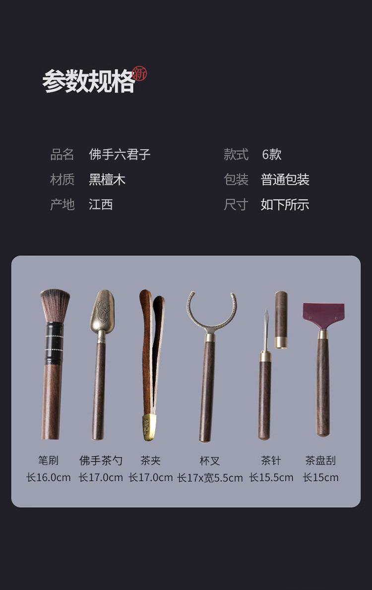 黑檀木茶道六君子五件套功夫茶具茶针养壶笔茶夹杯叉茶勺茶刷配件