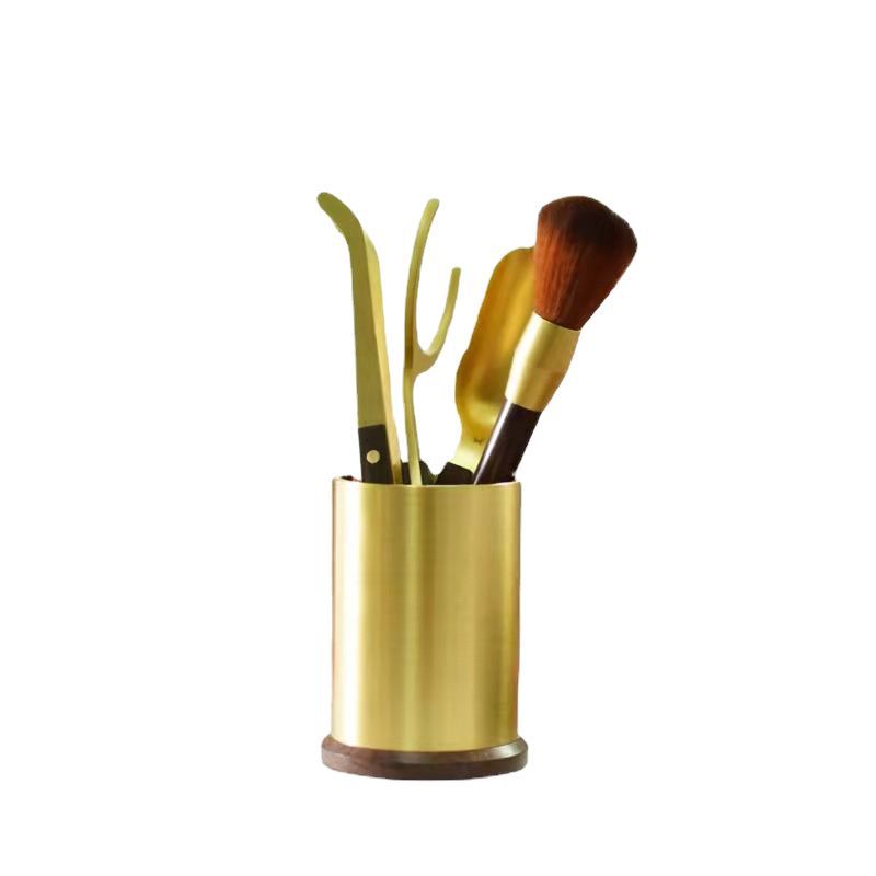 黄铜茶具套装铜木茶夹茶叶勺养壶笔配件黄铜花梨黑檀木茶道六君子