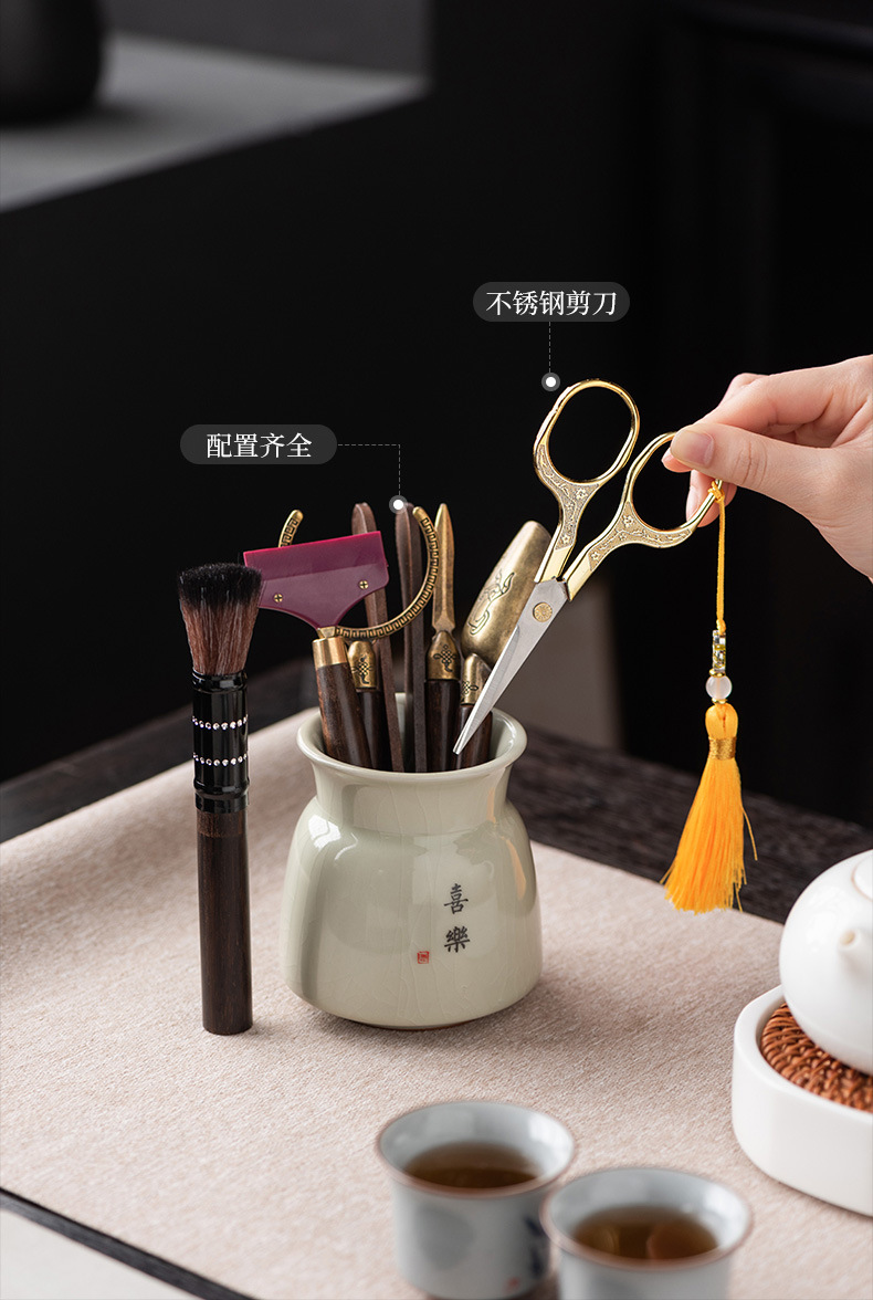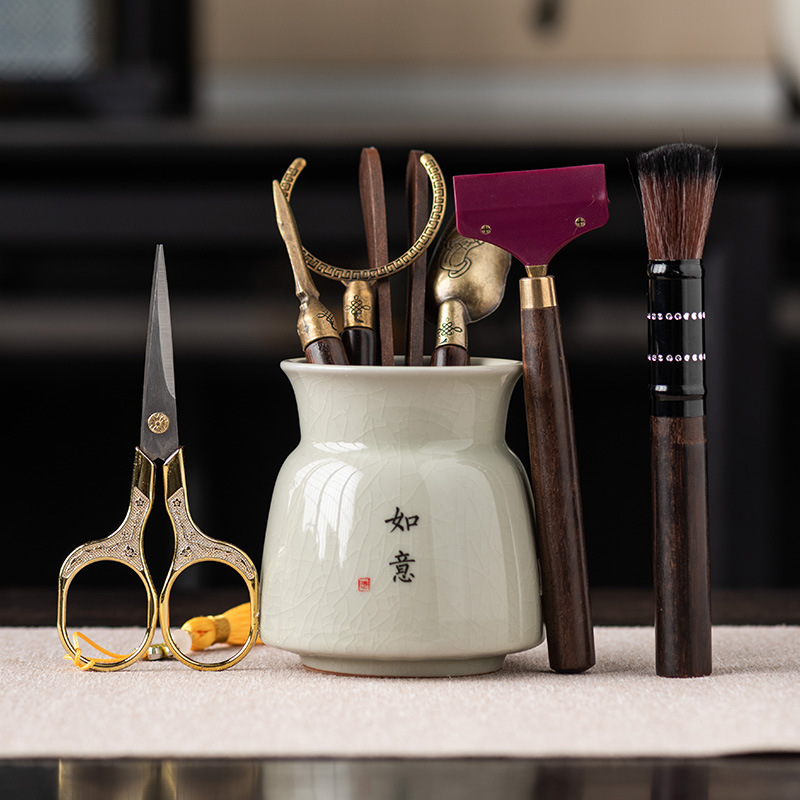 哥窑茶道六君子全套泡茶工具六君子茶夹茶针茶刮茶剪功夫茶具配件