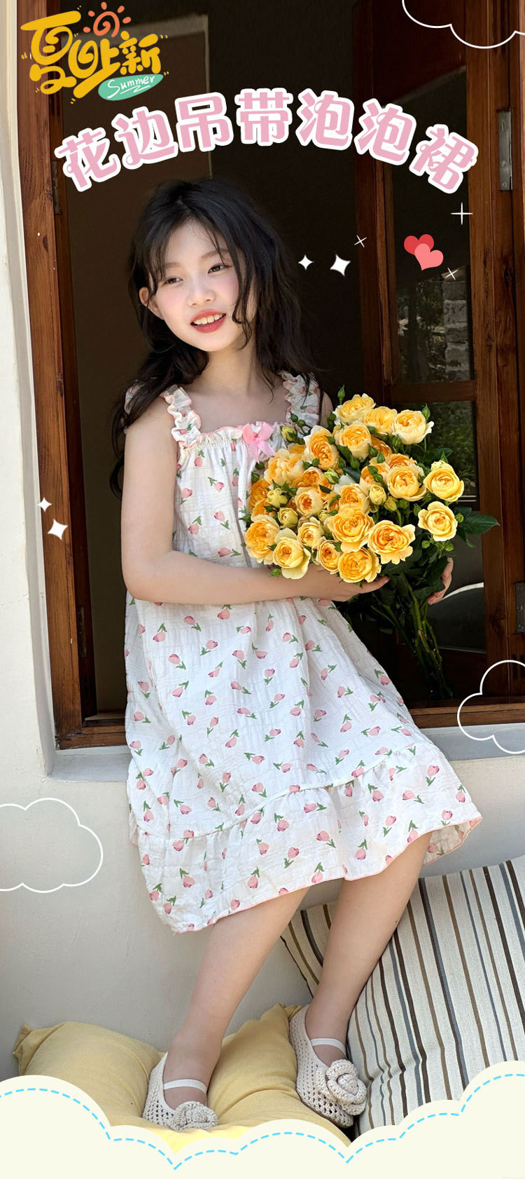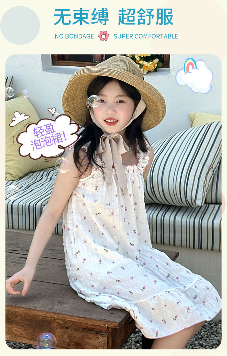 女童夏装吊带连衣裙2025新款洋气儿童度假风沙滩裙女孩休闲裙子薄