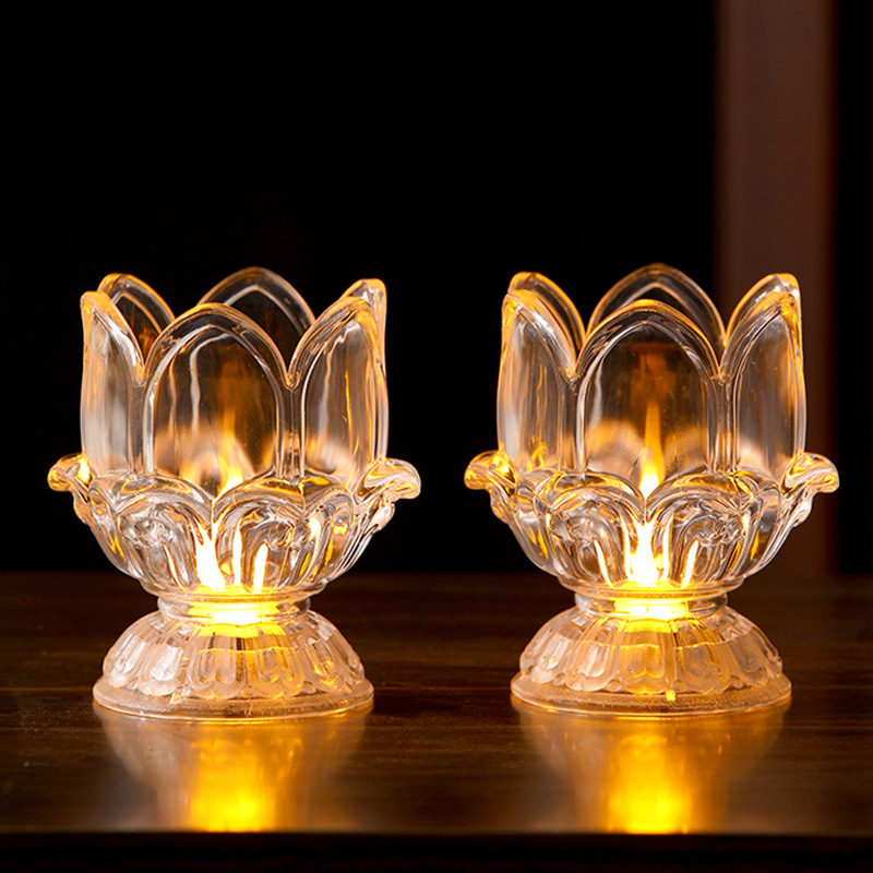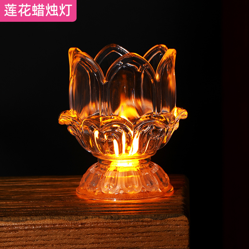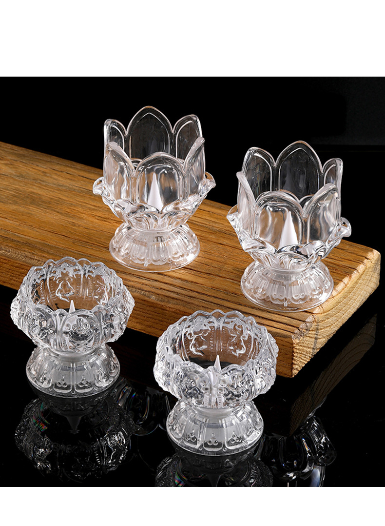 LED透明莲花蜡烛灯摆件仿真浪漫生日布置创意婚庆道 具长明灯