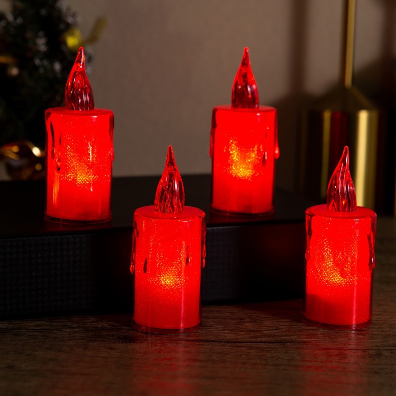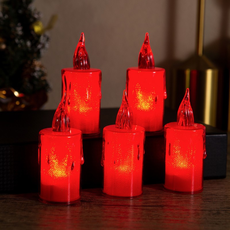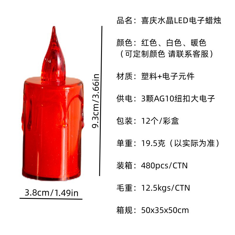 新款红色仿真电子led蜡烛灯创意水晶供佛喜庆节日防风无烟蜡烛