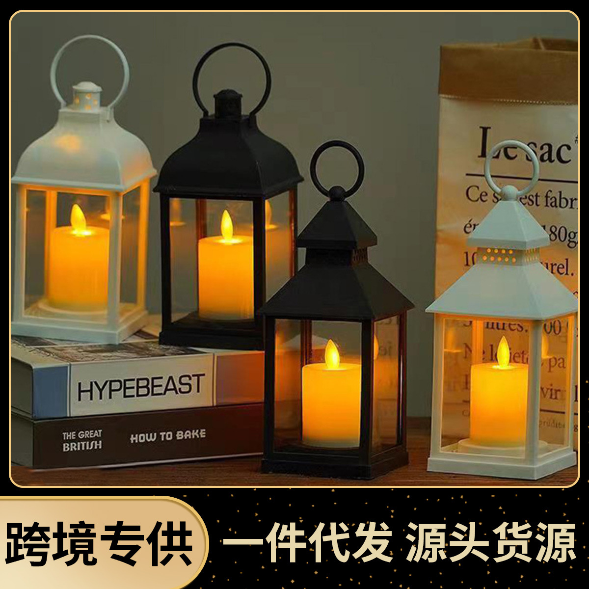 跨境风灯小提灯烛台复古浪漫电子蜡烛灯圣诞节小夜灯万圣节马灯