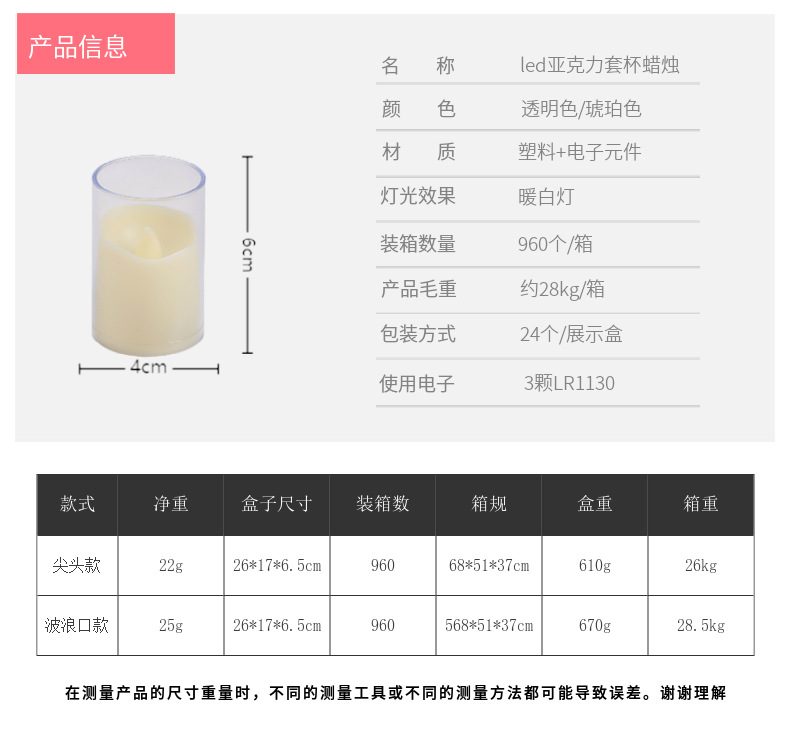 仿真茶蜡LED电子蜡烛亚克力杯蜡万圣节生日婚庆布置小蜡烛氛围灯