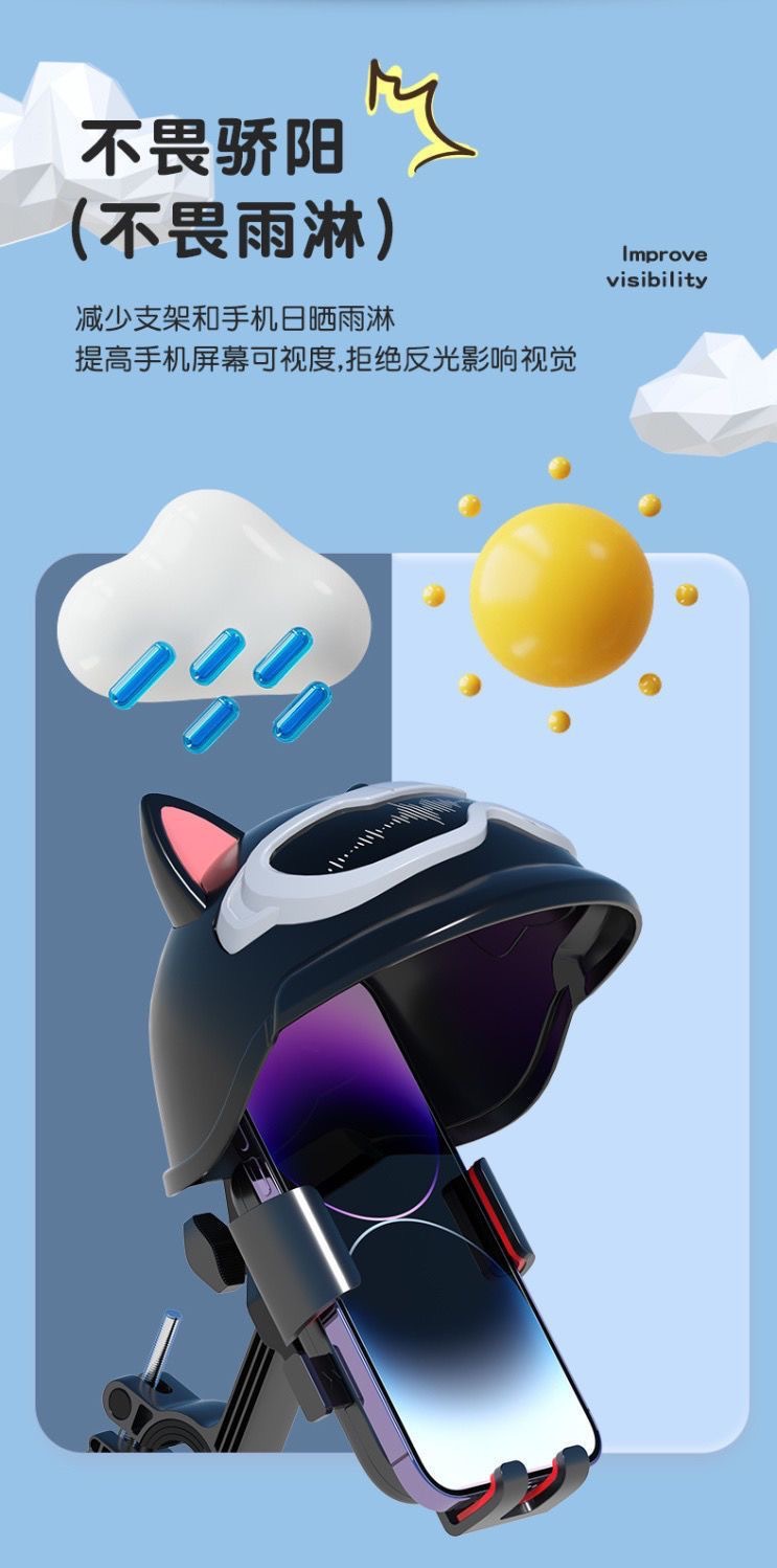 电动车手机导航支架带头盔摩托踏板自行电瓶骑手外卖代驾卡通支撑