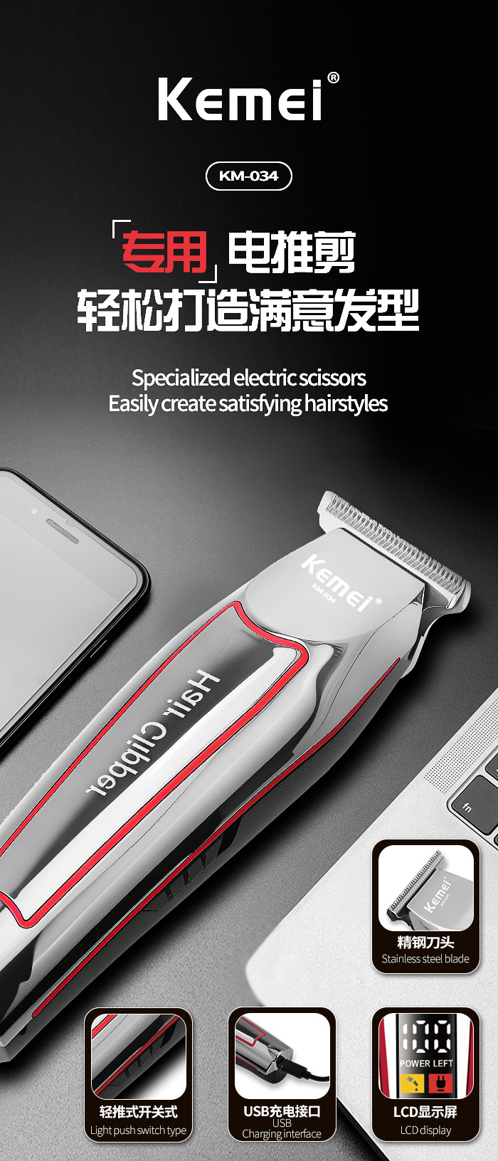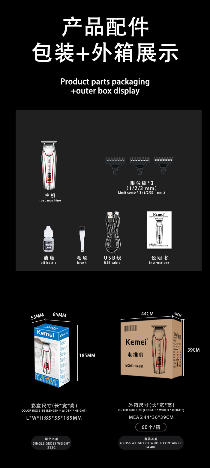 科美/KM-034 电推剪理发套装初学者家用电动理发智能数显油头雕刻