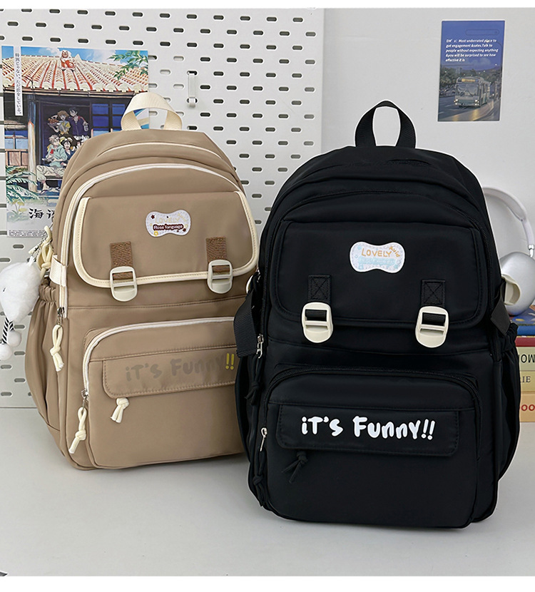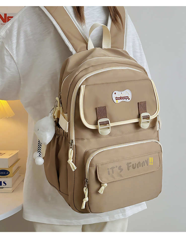 新款学院风双肩包休闲简约书包时尚潮流背包可爱初中生书包