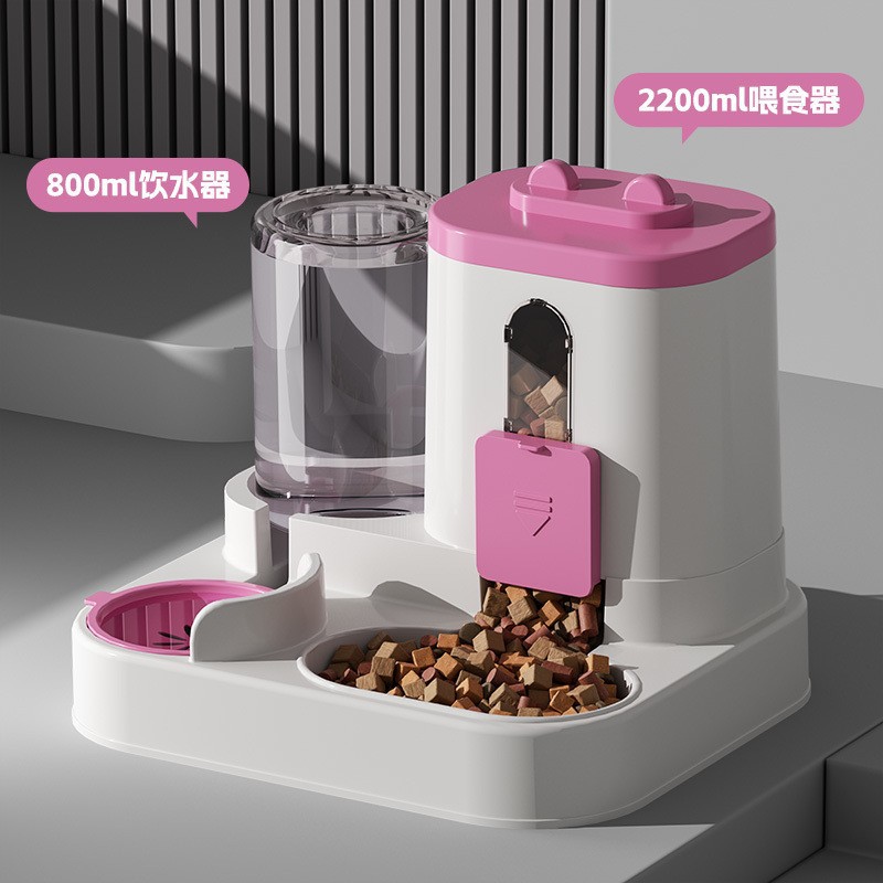 新款自动猫咪喂食器狗碗宠物碗猫盆二合一饮水机猫碗宠物用品跨境