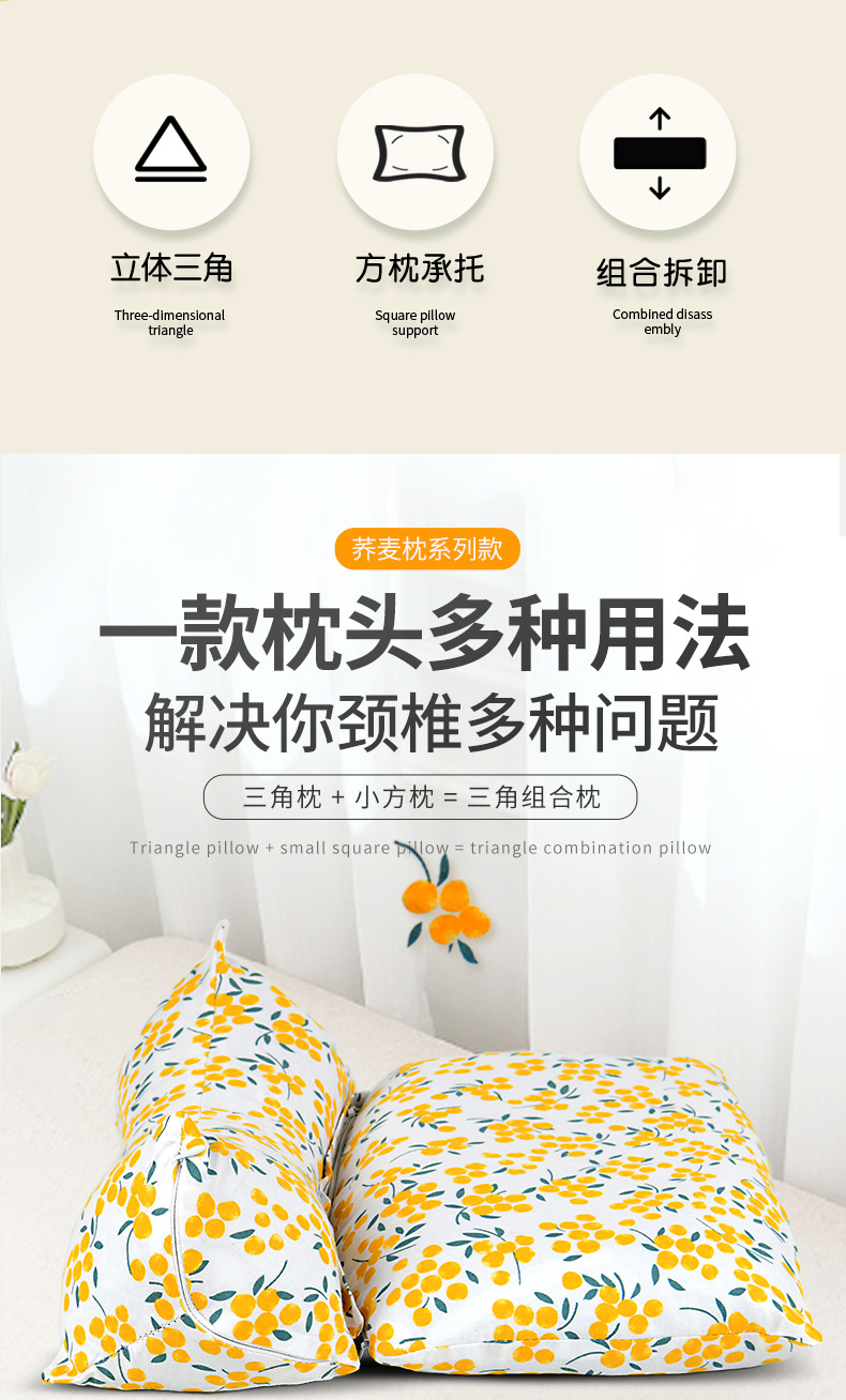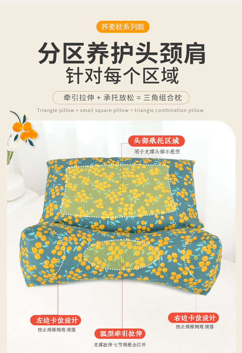 颈椎三角枕助荞麦壳睡枕头睡枕护颈枕眠办公室宿舍脖枕午睡小枕头