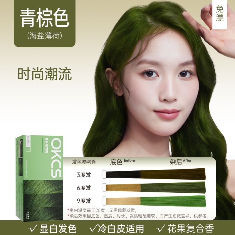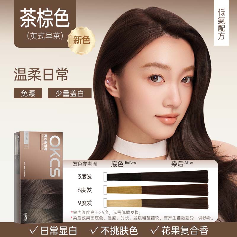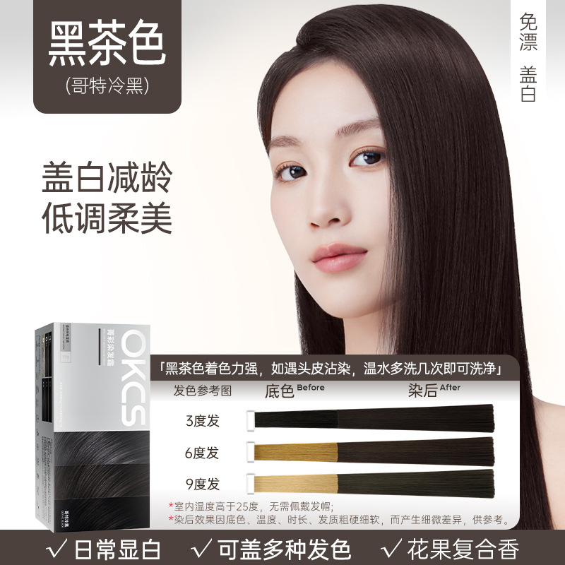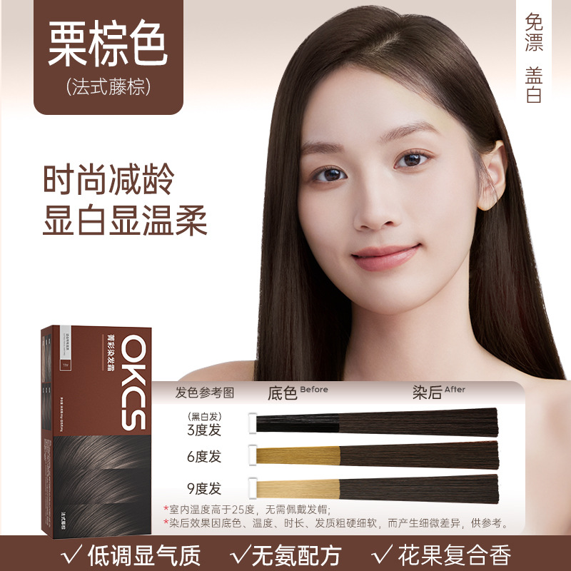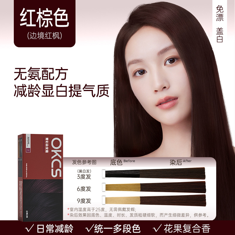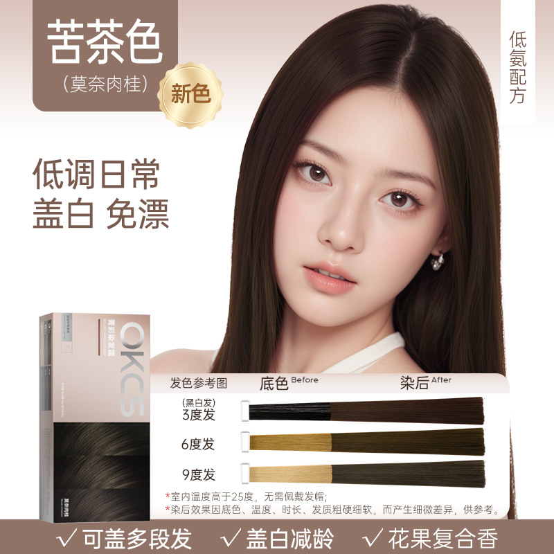 OKCS染发膏免漂遮白沙漠玫瑰咖啡色纯染发剂植物男女自己在家染发