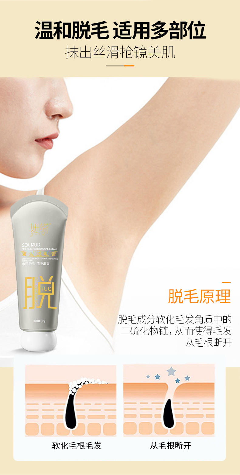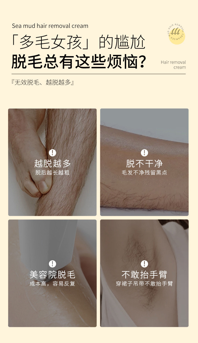妍绮海泥脱毛膏祛手腿腋毛温和不刺激去毛膏现货无疼干净不留黑点