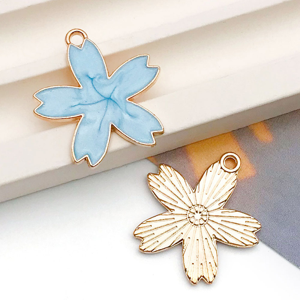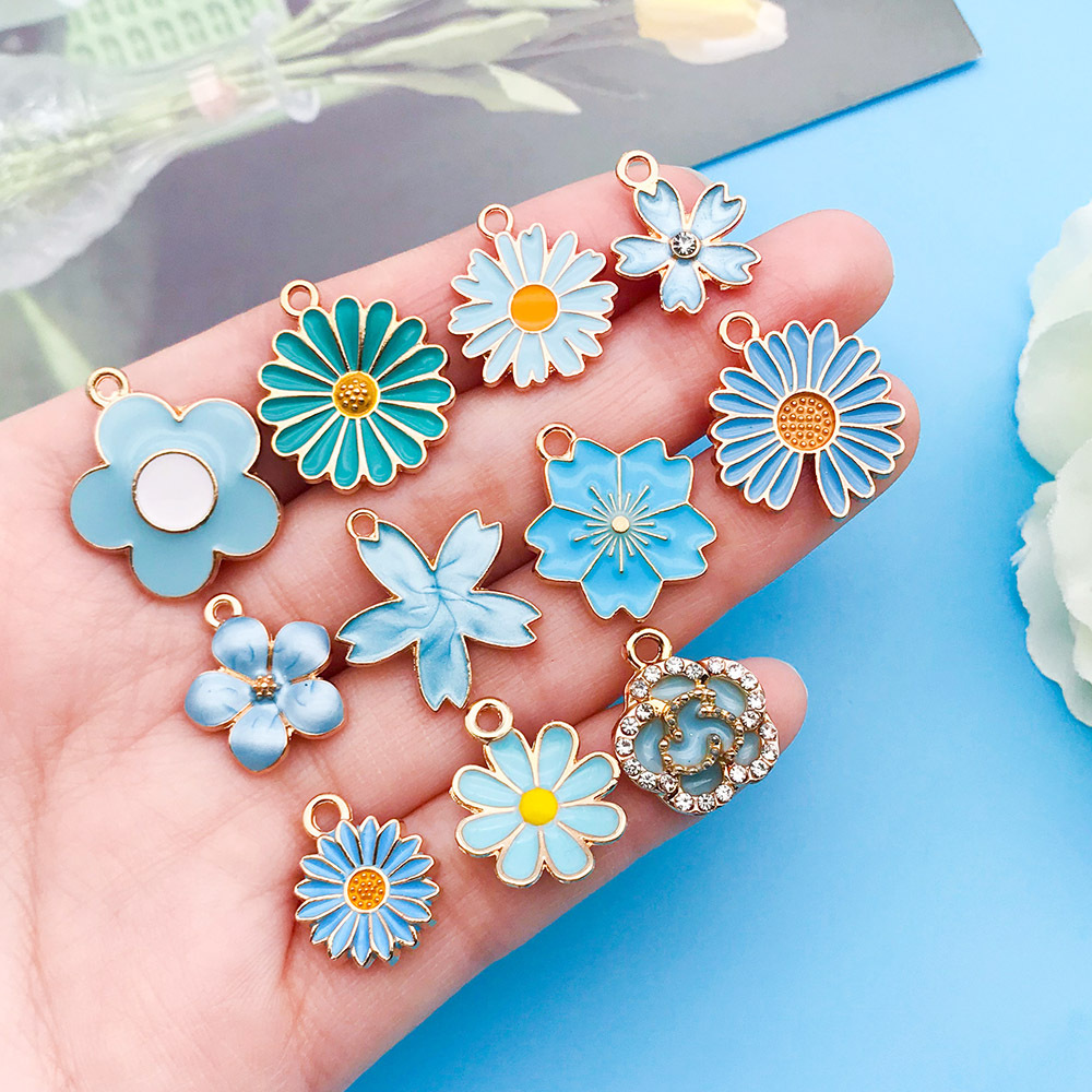 混30个滴油湖蓝色樱花雏菊珍珠花朵吊坠手工串珠手链饰品配件批发