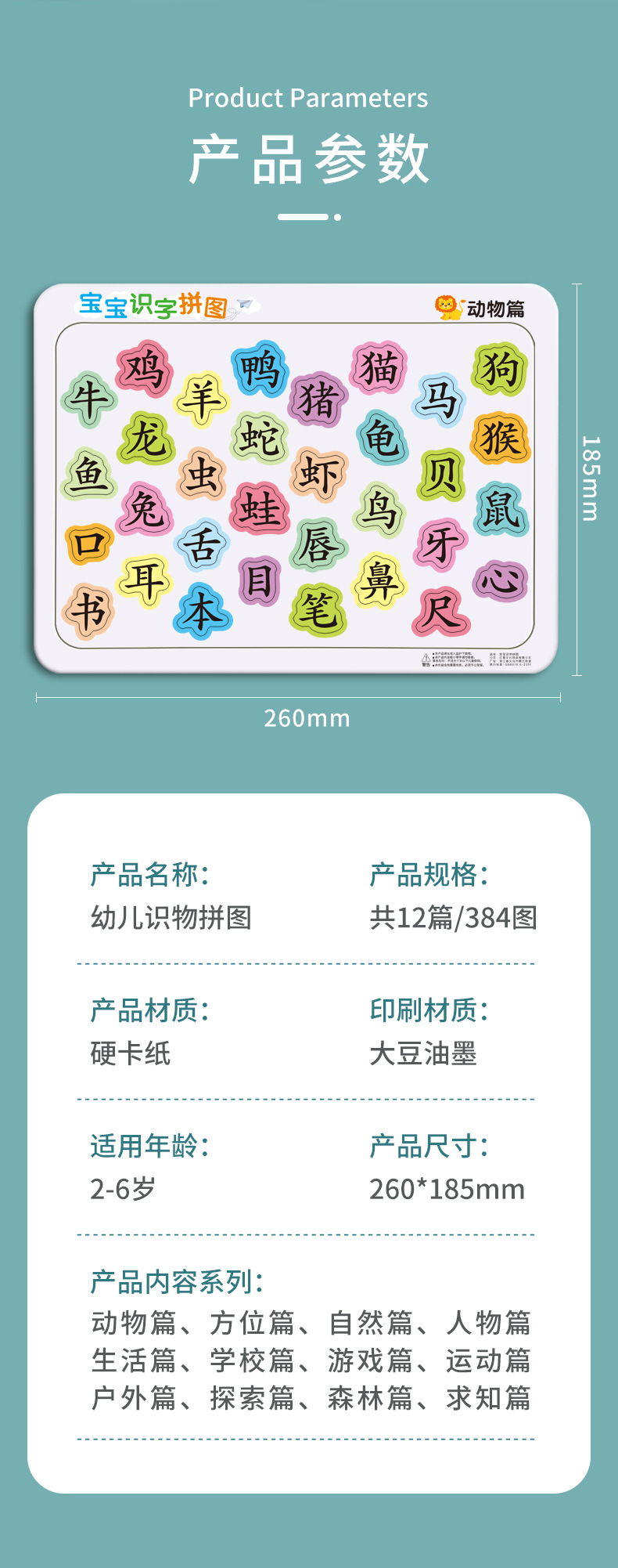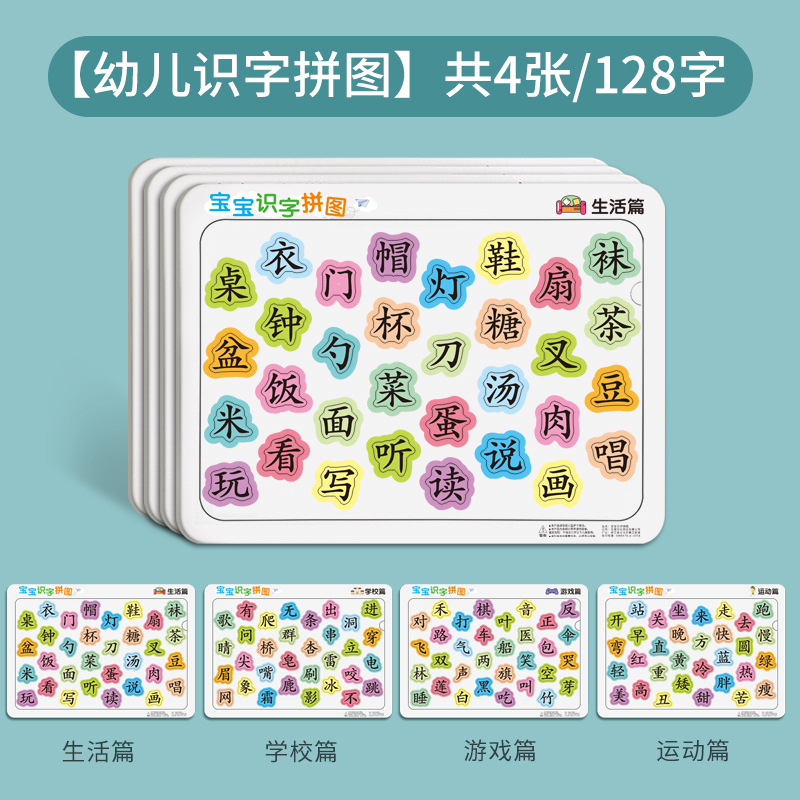 宝宝幼儿早教识字拼图汉字认字认知卡片3-4到6岁儿童进阶益智玩具