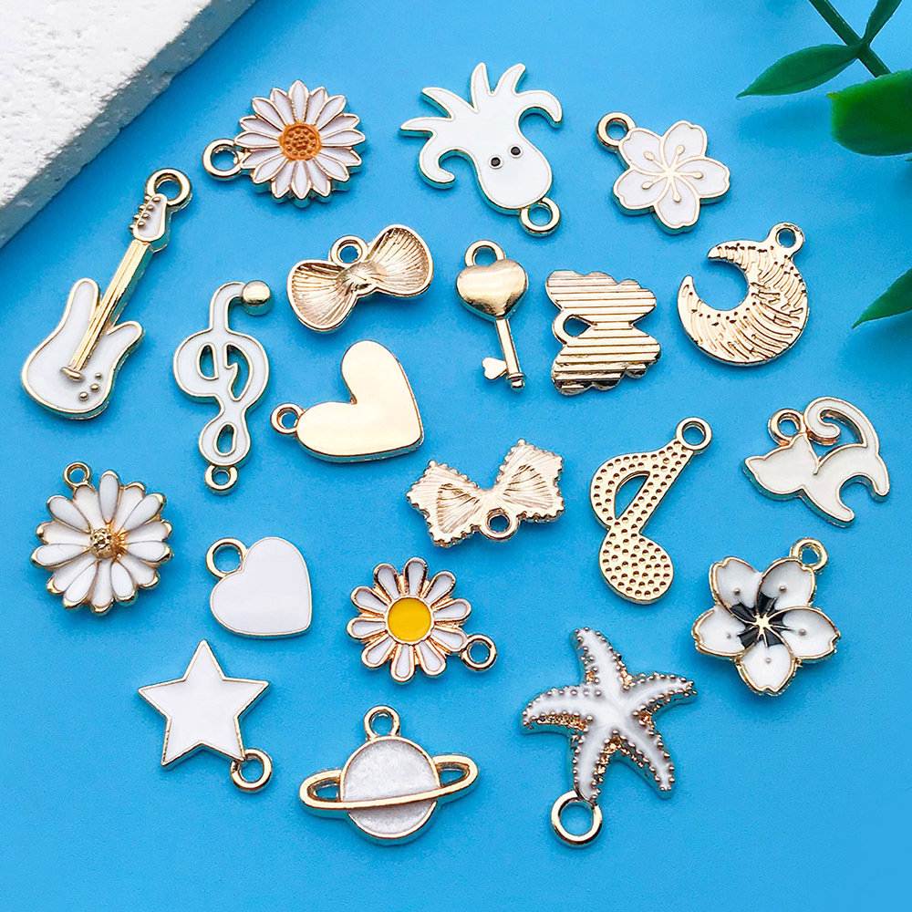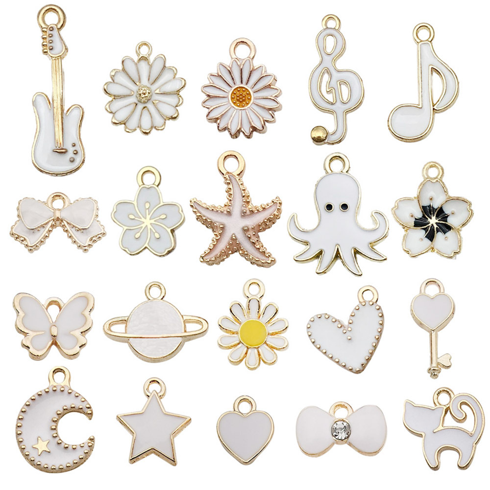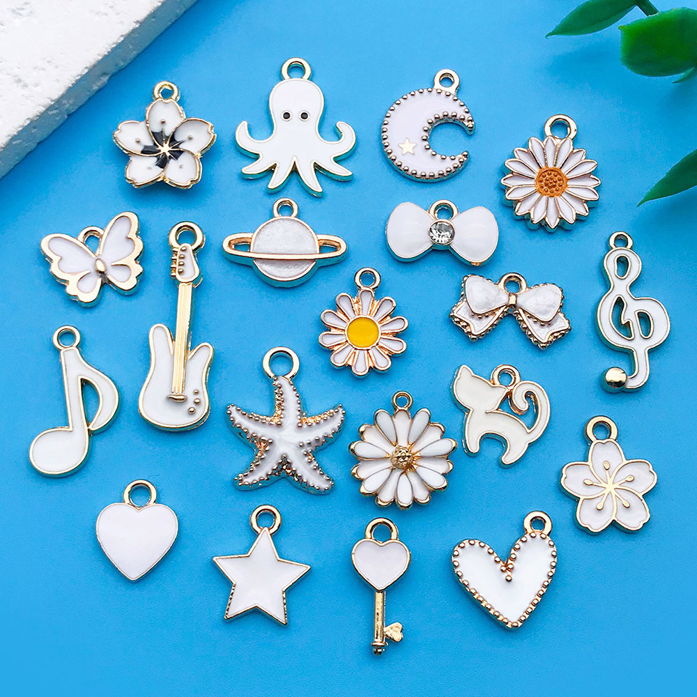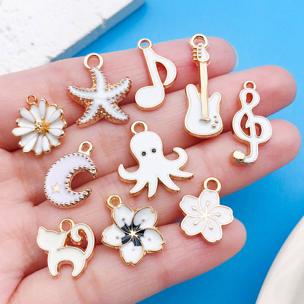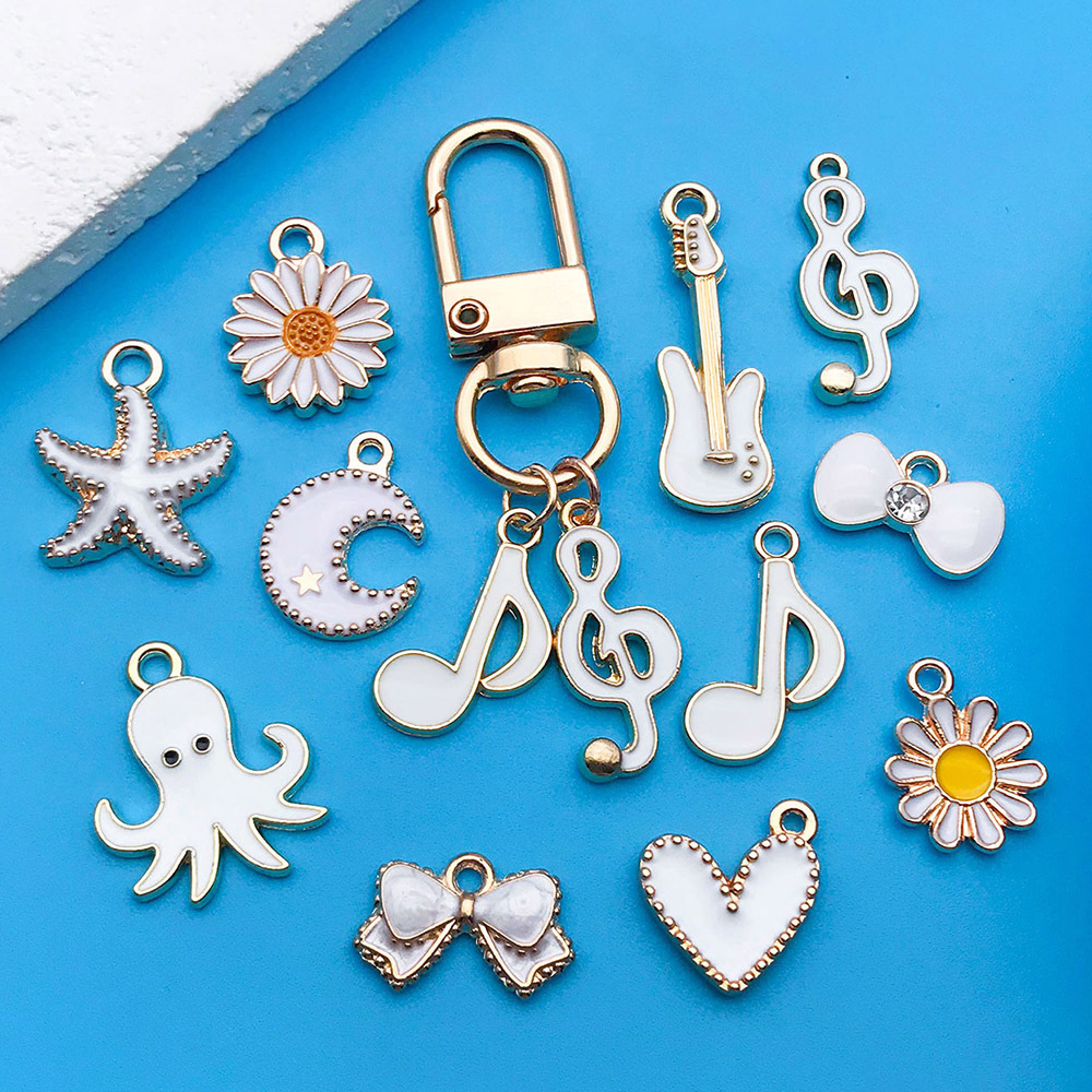 20款滴油可爱卡通白色音乐符号吉他合金吊坠 DIY耳环手链饰品配件