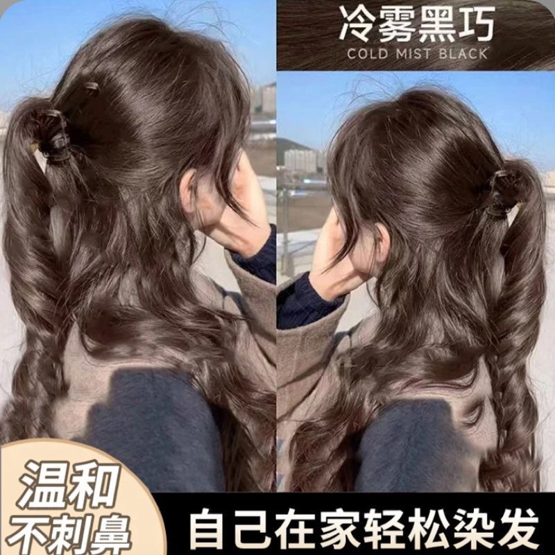 抖音椰露香槟染发剂膏2025流行色冷雾黑巧显白植物纯奶茶灰棕家用