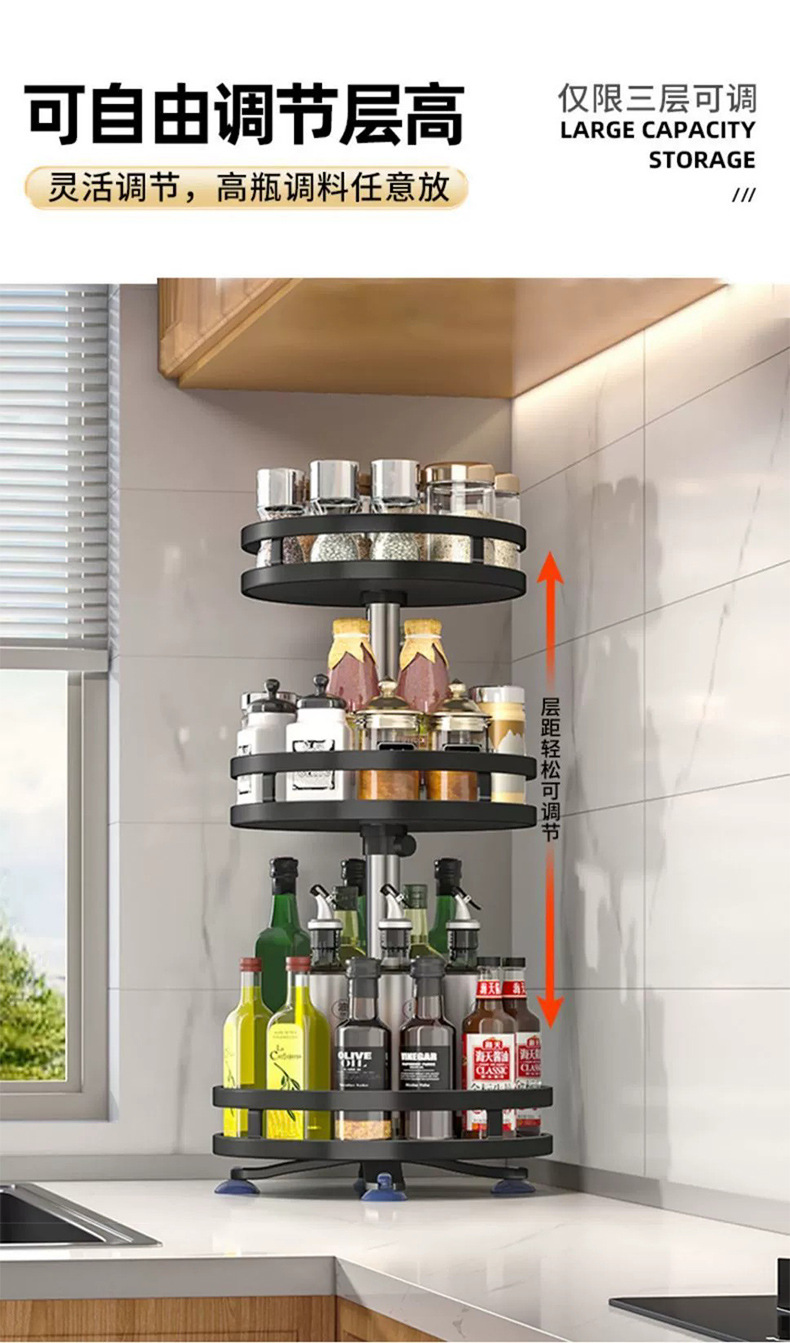 可旋转360度厨房调味架调料收纳置物架罐架收纳盒油盐酱醋调味品