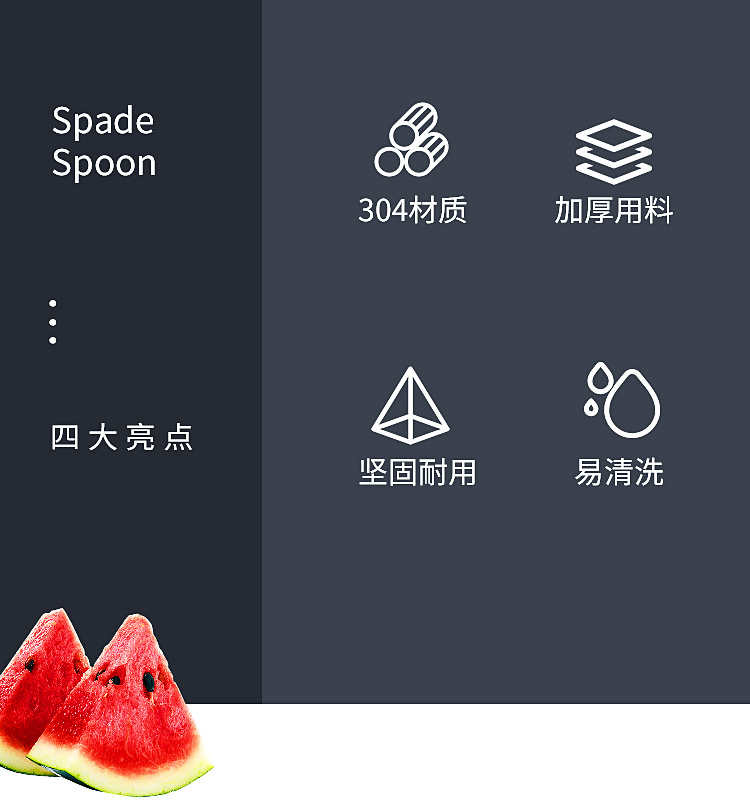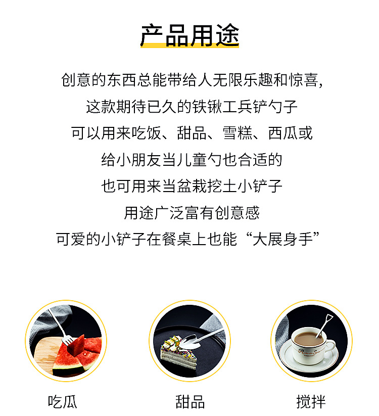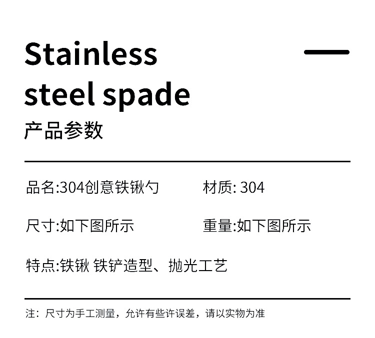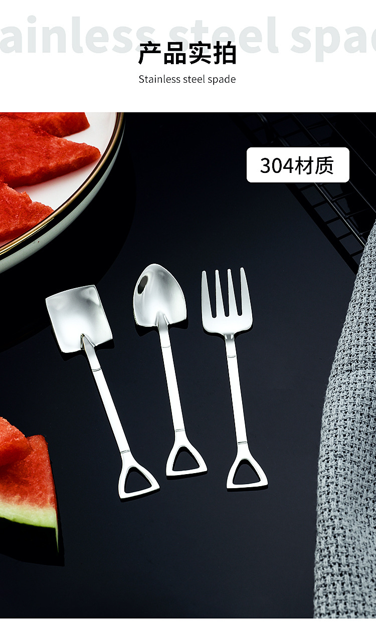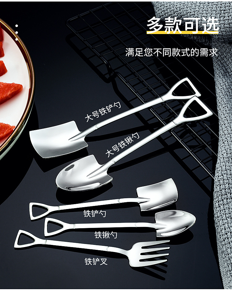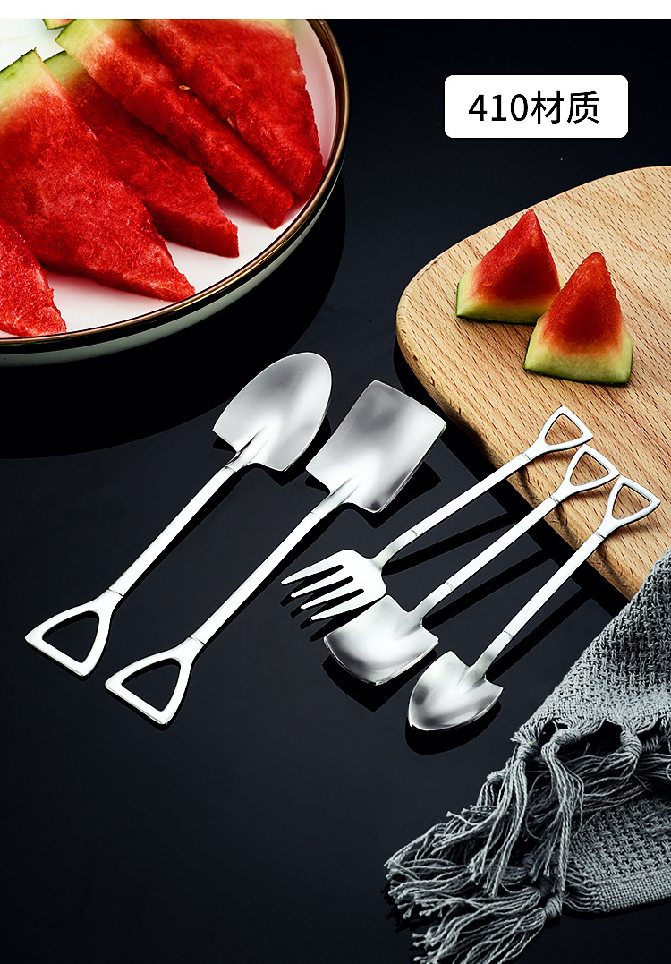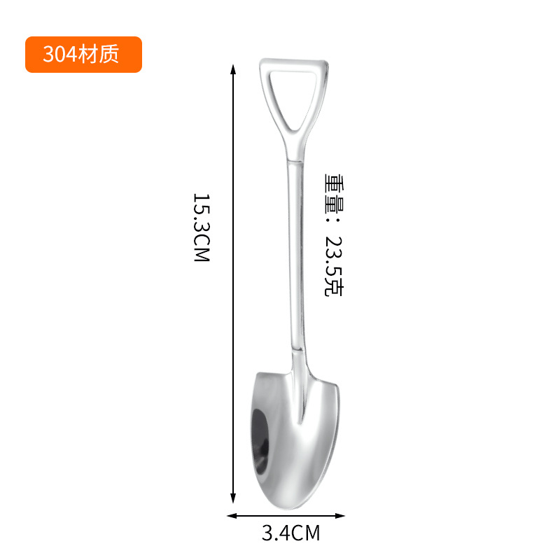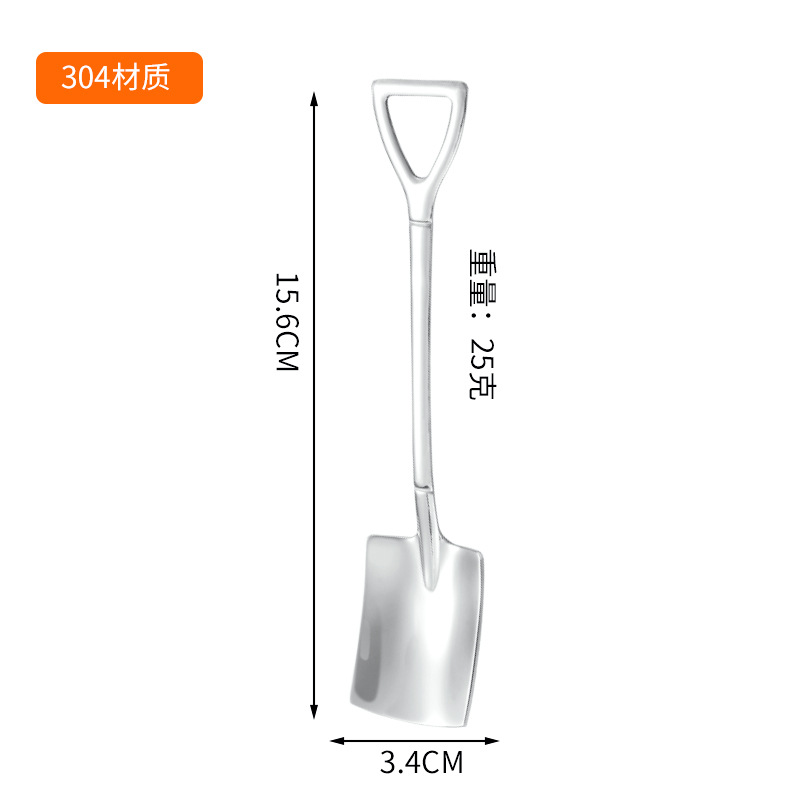 高颜值304不锈钢西瓜勺铁锹勺子 网红家用咖啡搅拌勺雪糕勺工兵铲