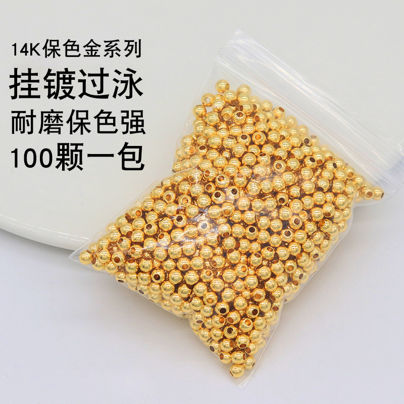 金珠子14k铜珠DIY手工编串直孔隔珠串珠散珠众兴高保色饰品材料包