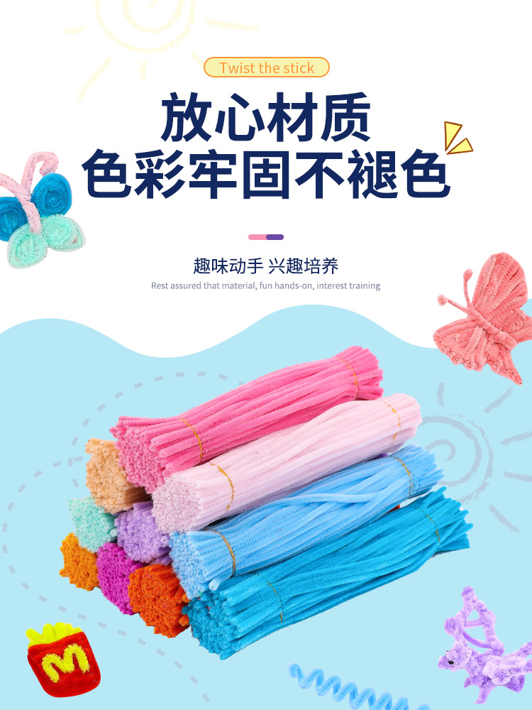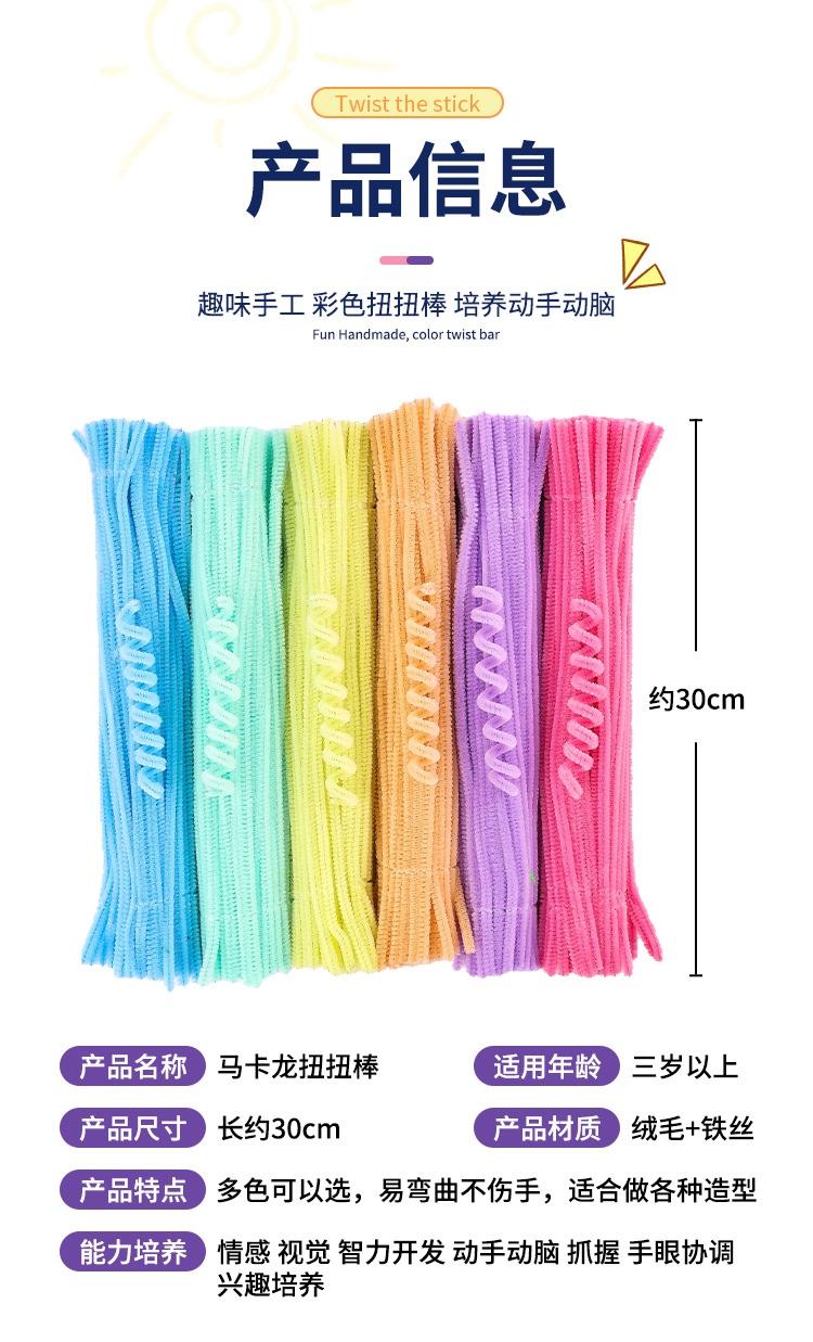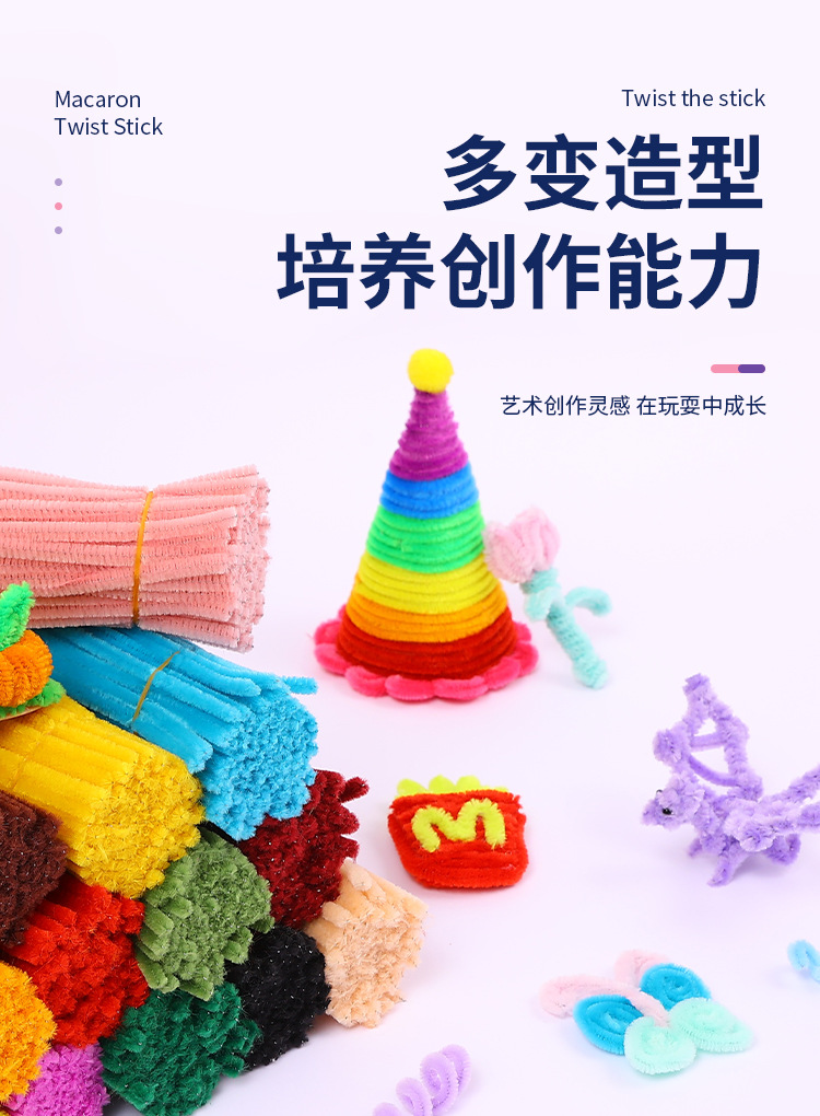 马卡龙色扭扭棒diy材料包批发仿真毛绒毛条折叠棒扭扭棒材料花束