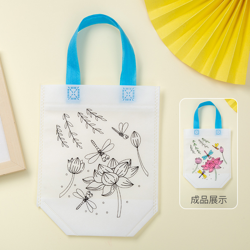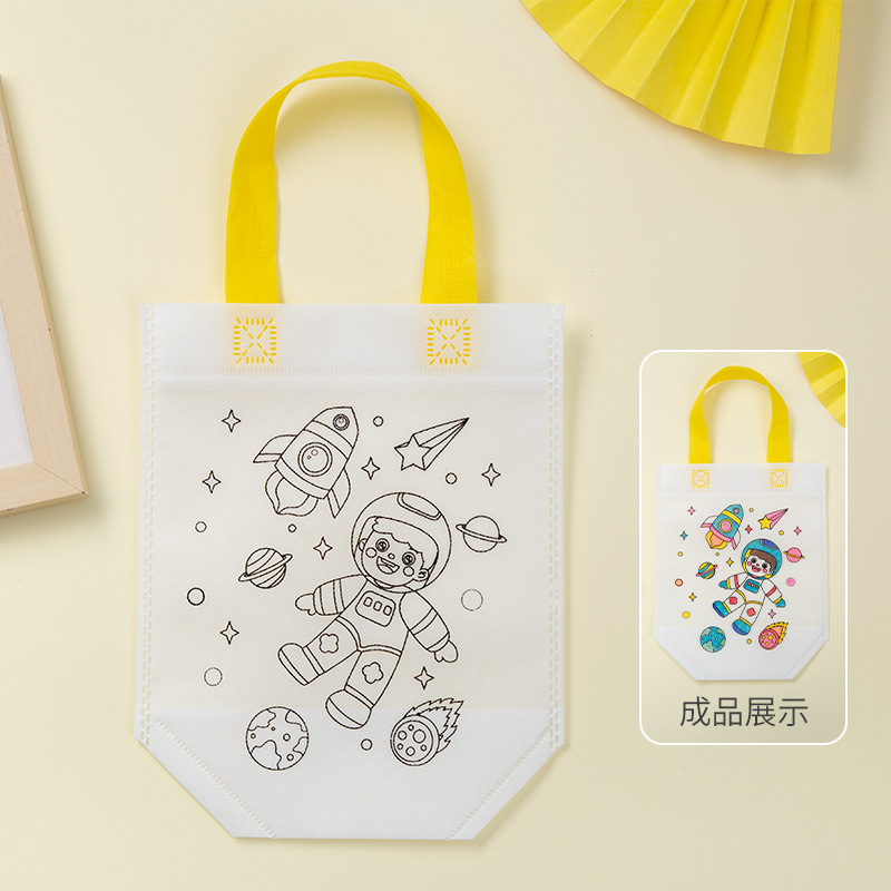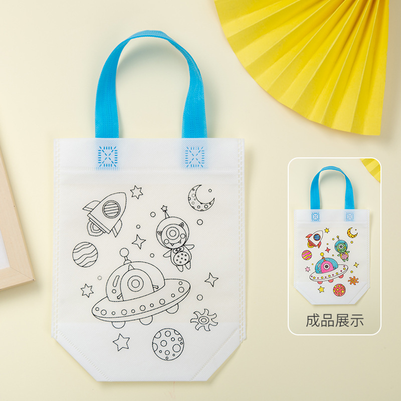 儿童手工diy材料包绘画涂色环保空白涂鸦无纺布手提袋幼儿园摆摊