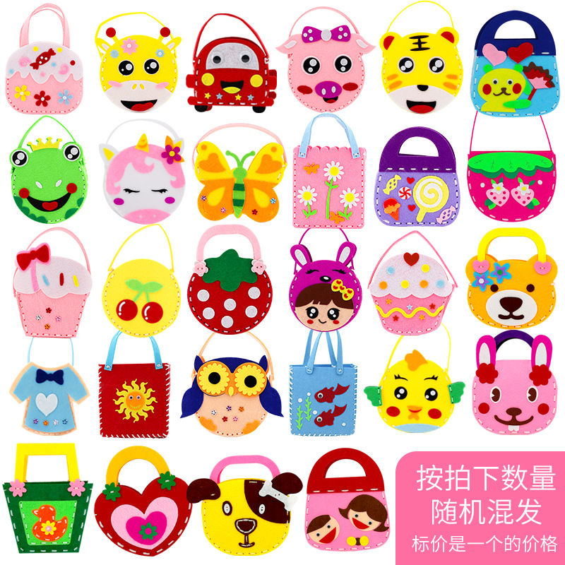 布艺拎包不织布儿童手工DIY粘贴制作材料包幼儿园手缝无纺布包包