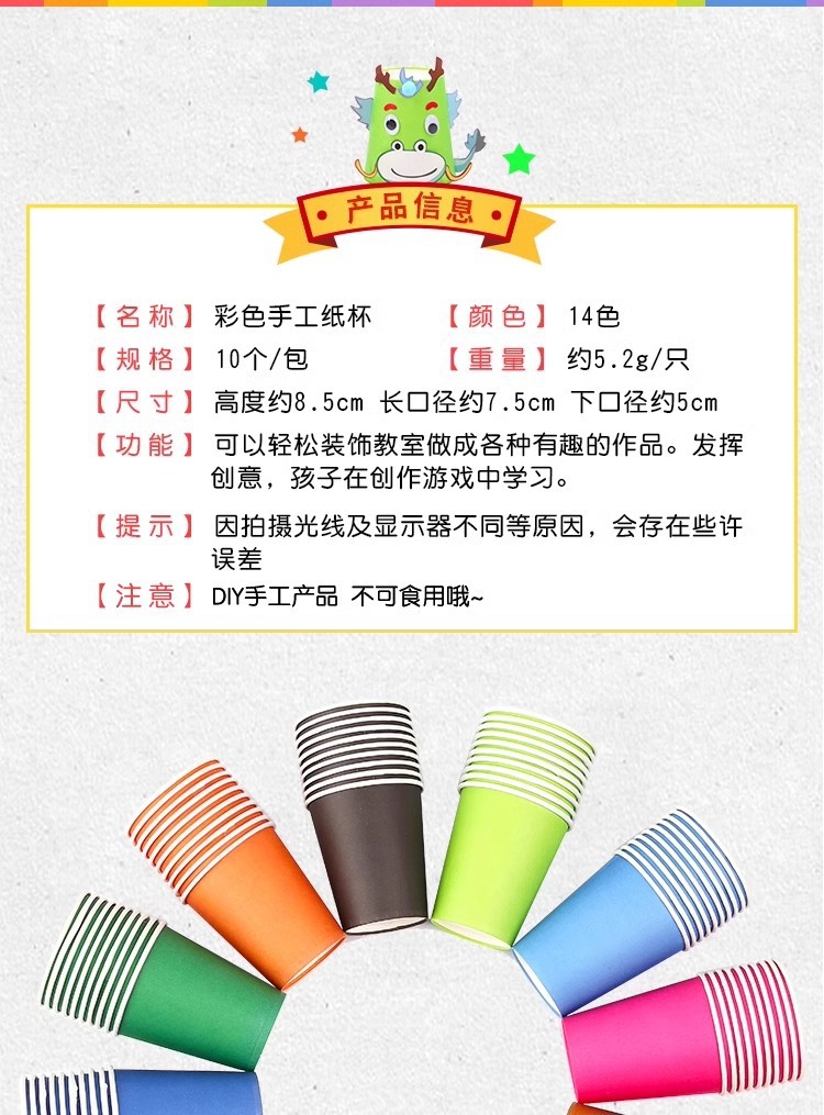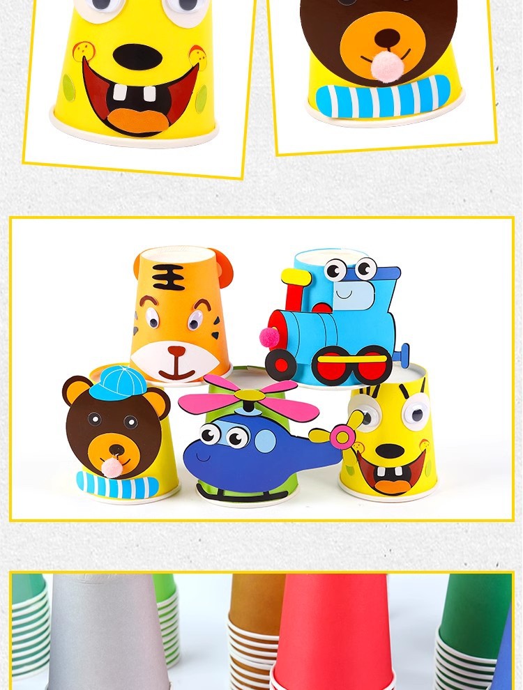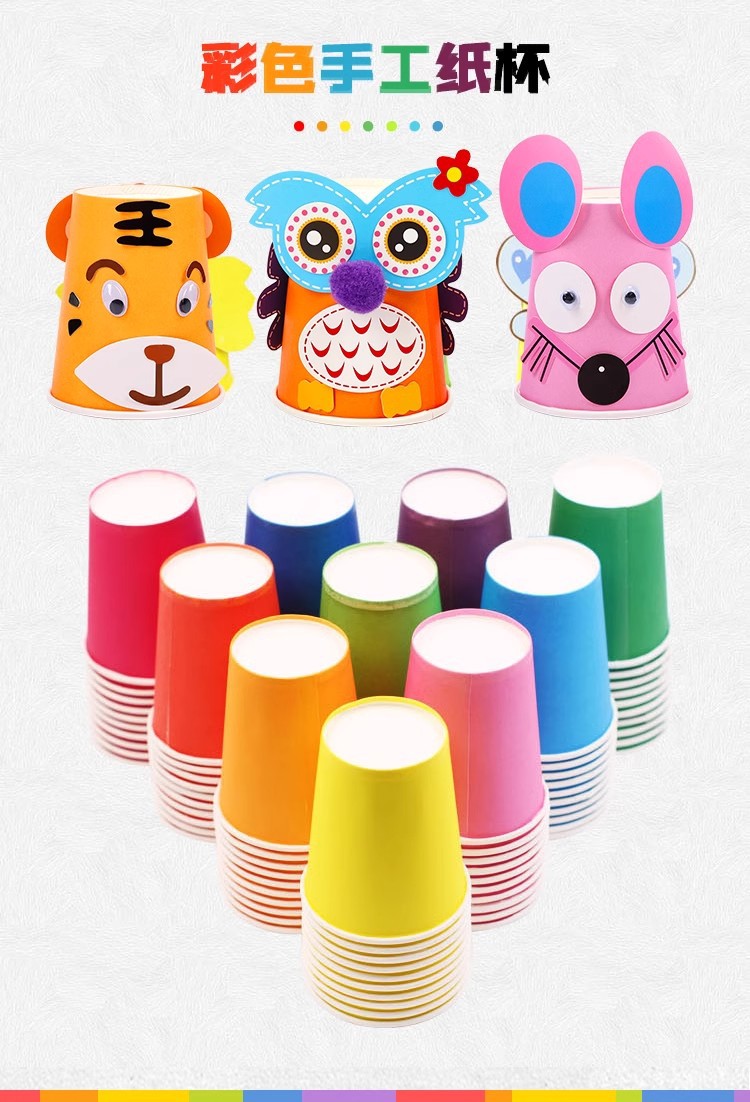 手工diy彩色纸杯儿童美术制作材料包幼儿园一次性加厚杯子玩具