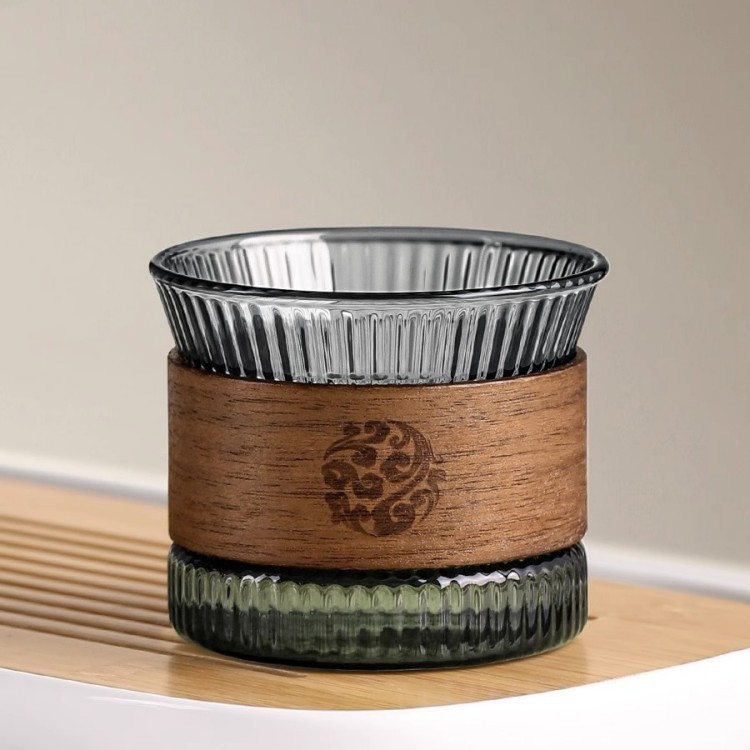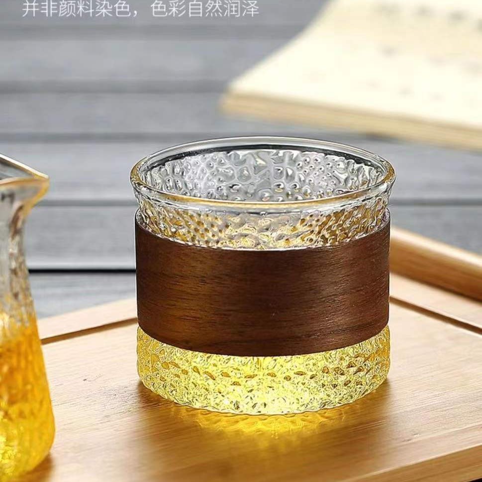 日式耐热玻璃品茗杯隔热高硼硅主人杯家用锤纹防烫玻璃茶杯咖啡杯