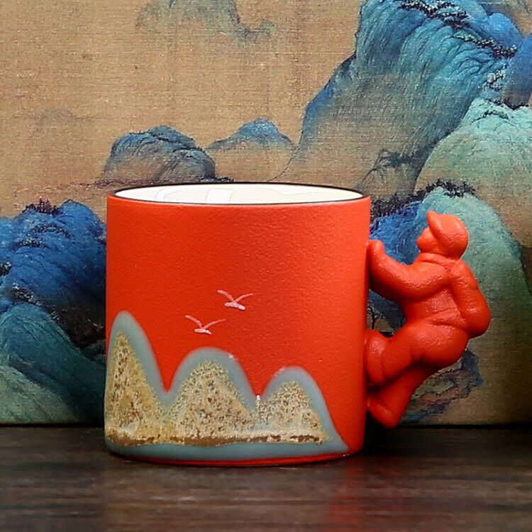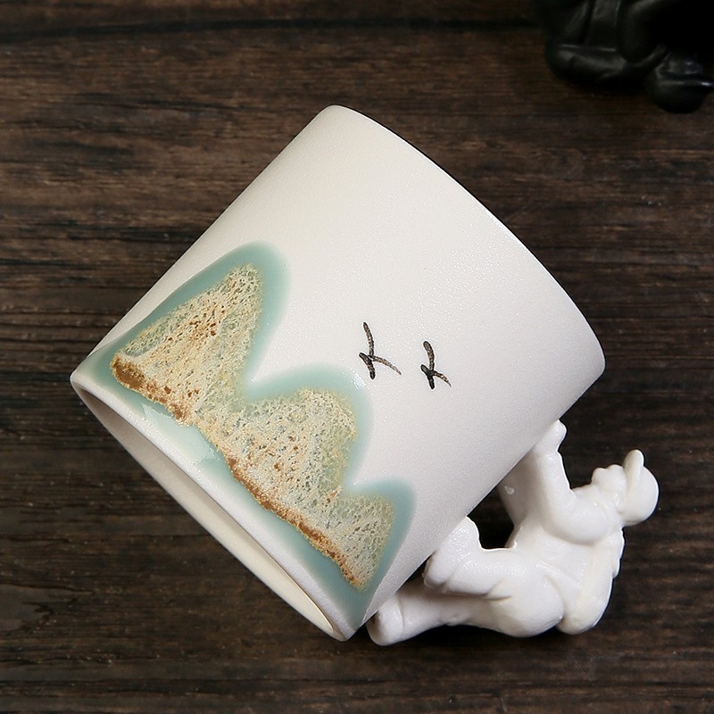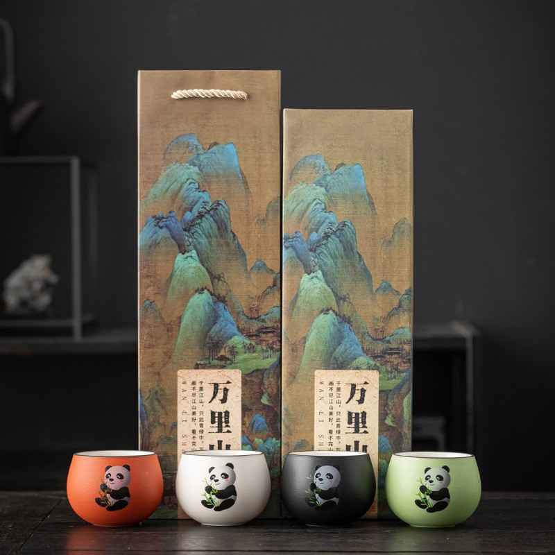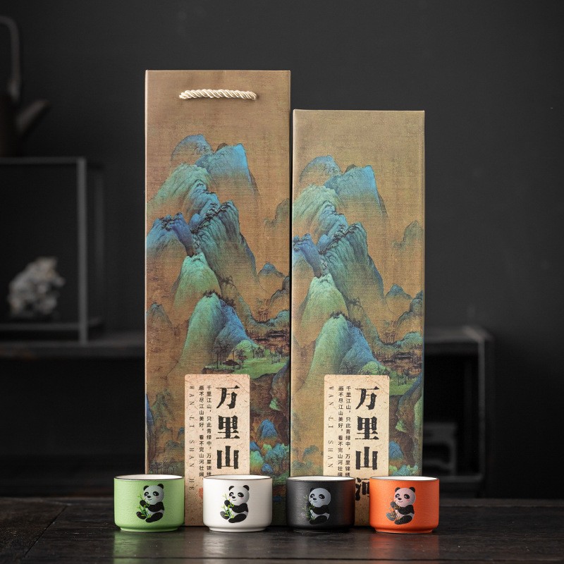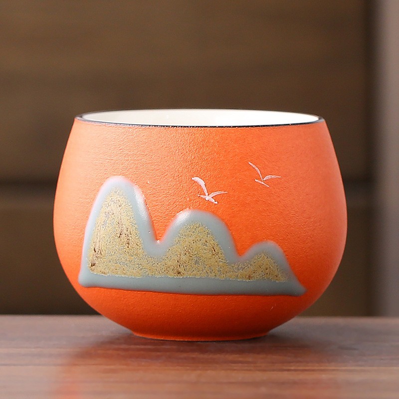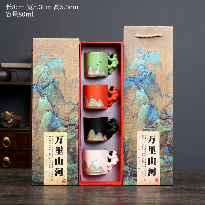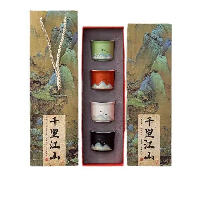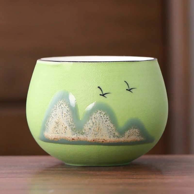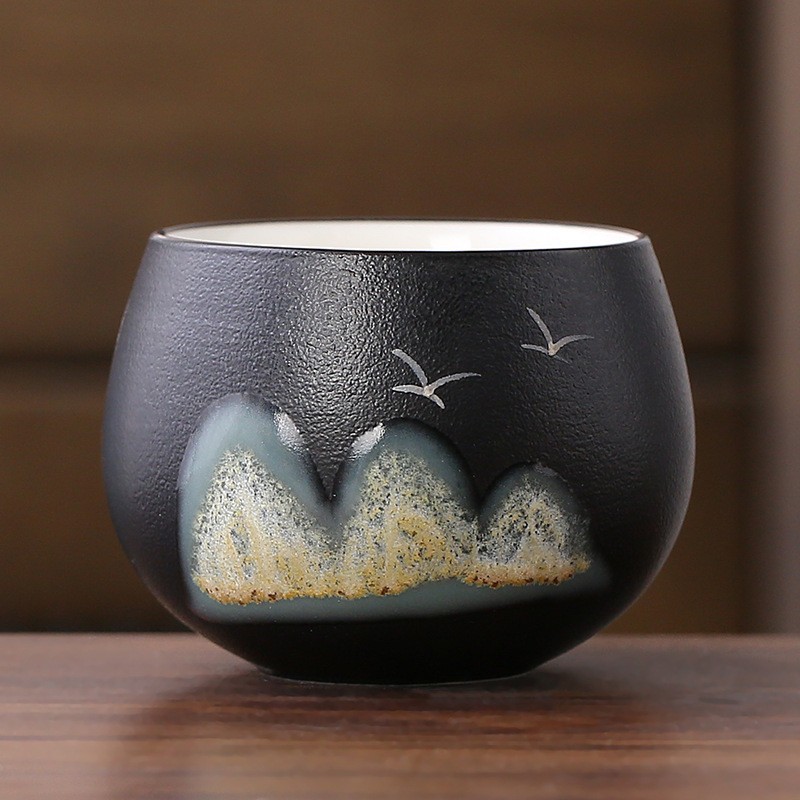 手绘远山陶瓷品茗杯大中小主人杯单杯礼盒装家用办公礼品茶杯批发