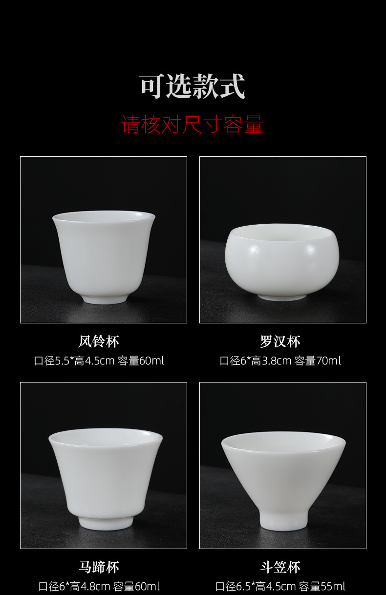 羊脂玉瓷茶杯高档主人杯个人专用品茗杯单杯茶盏家用陶瓷功夫茶具