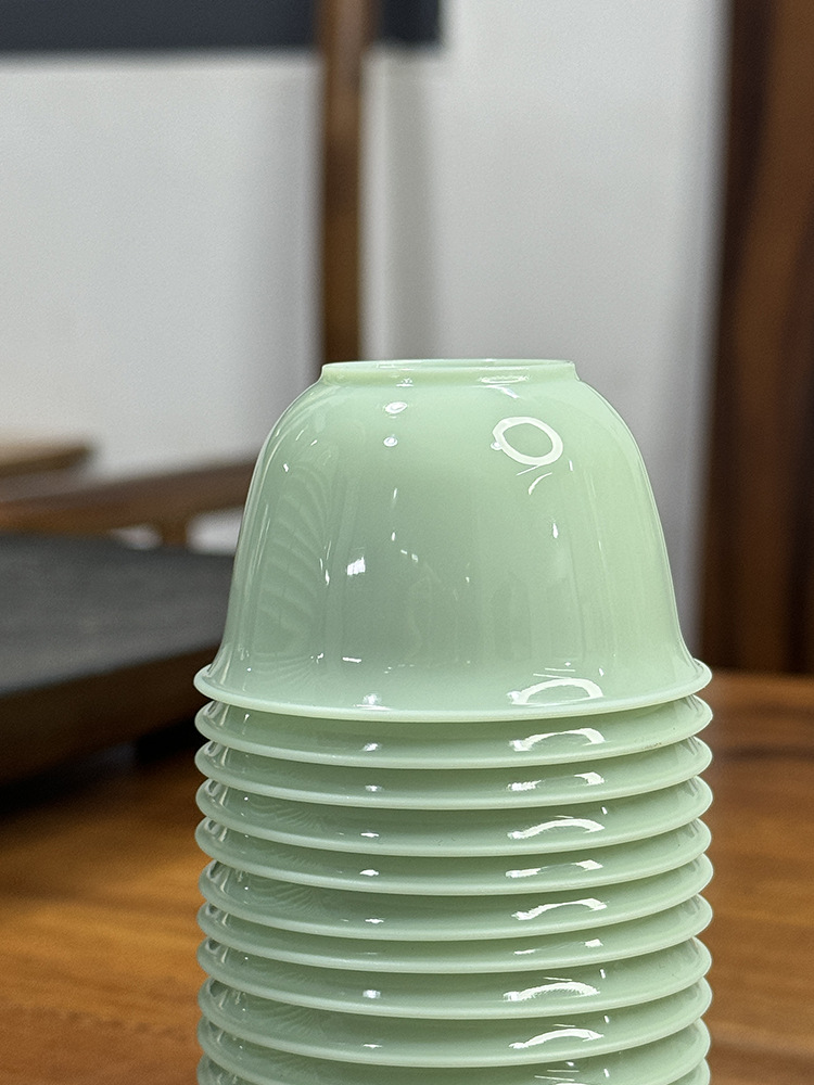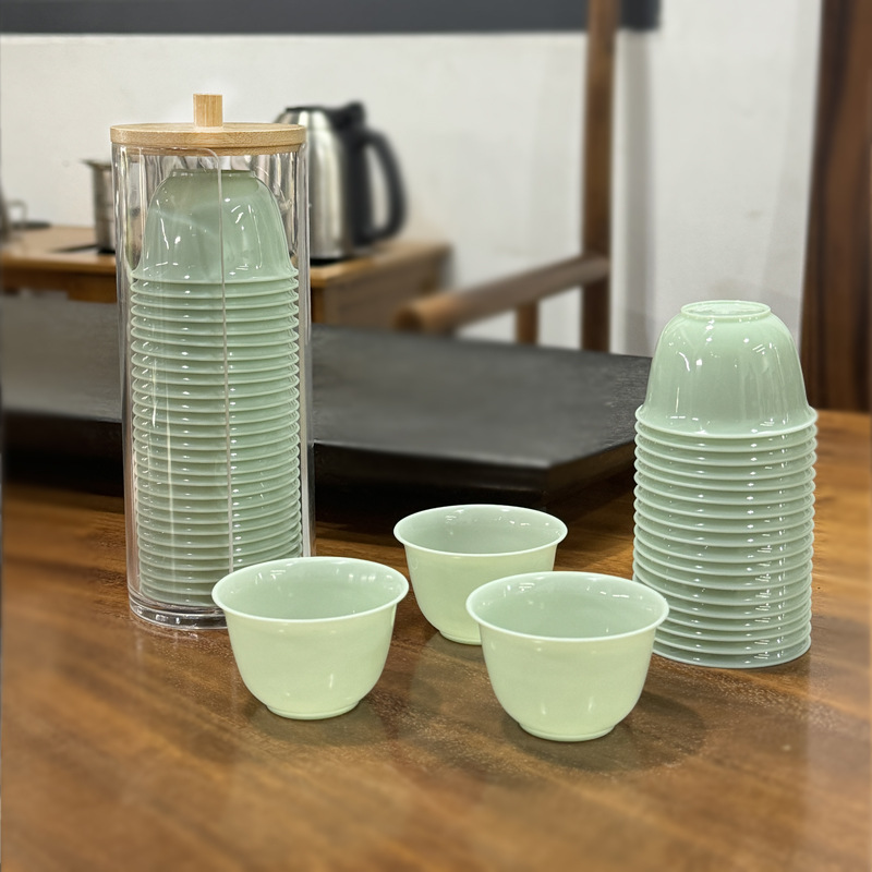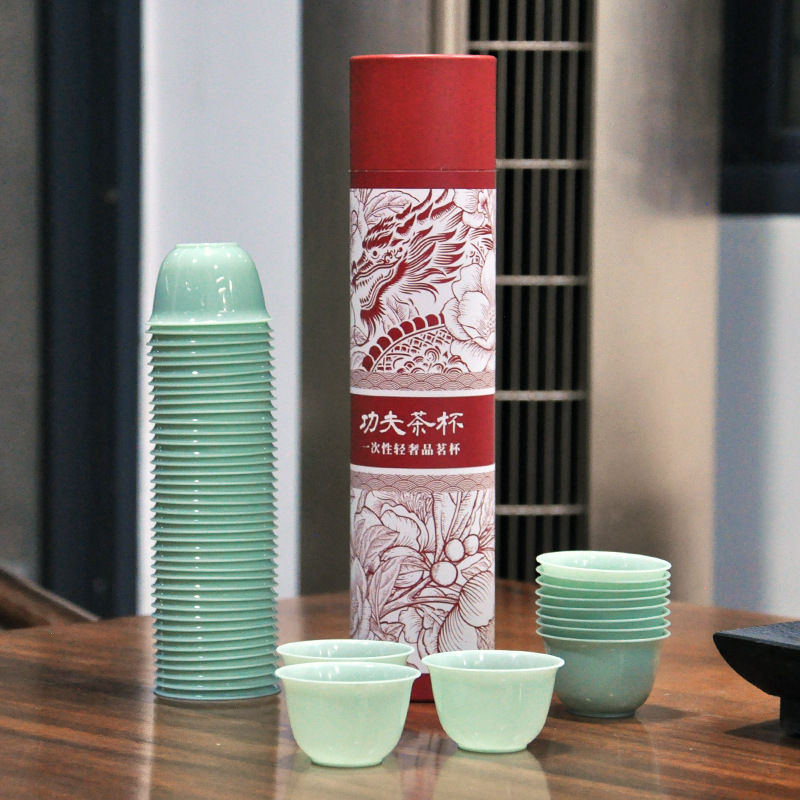 一次性茶杯翡翠仿玉高档小号中式品茗杯加厚防烫旅游便携家用商用
