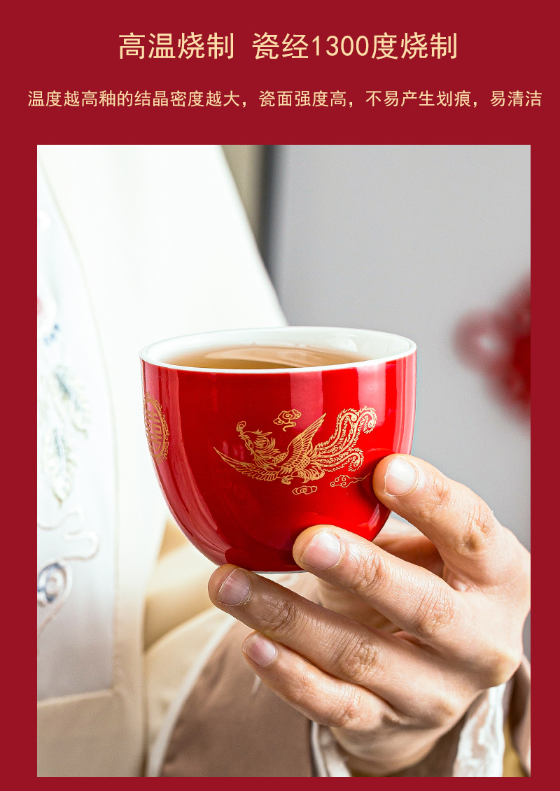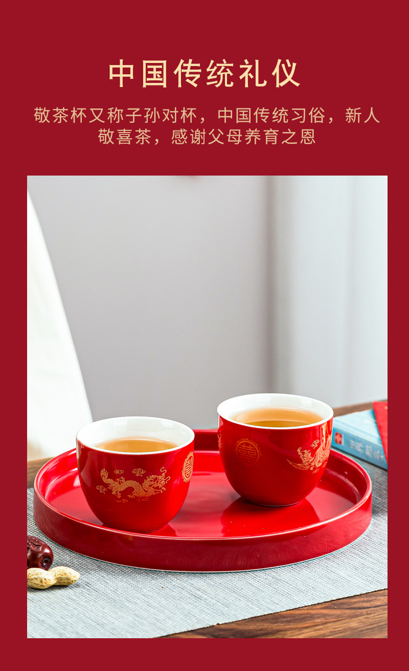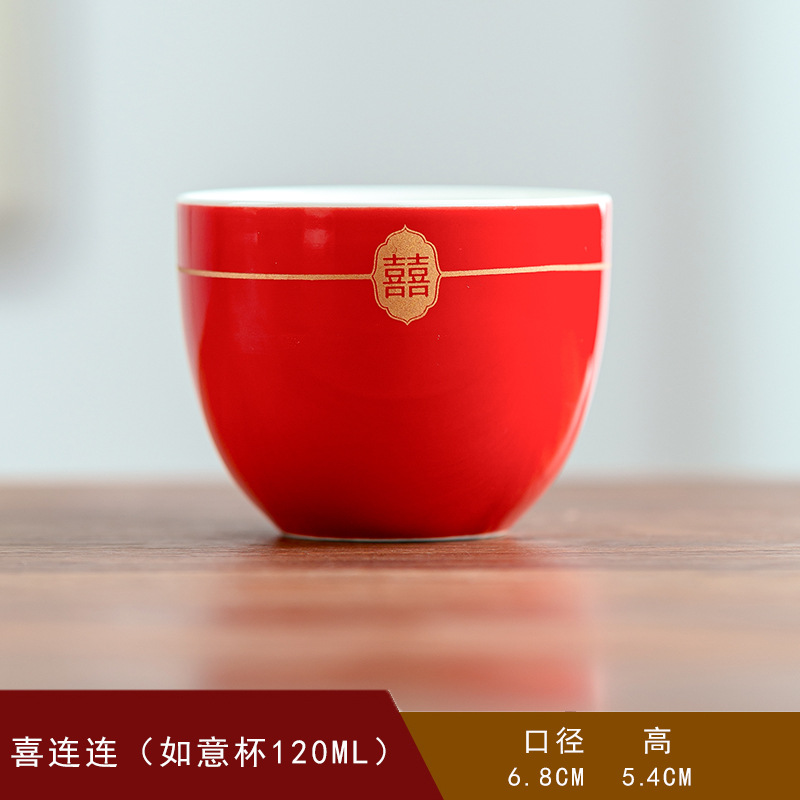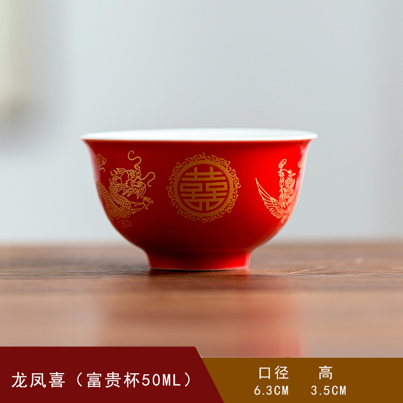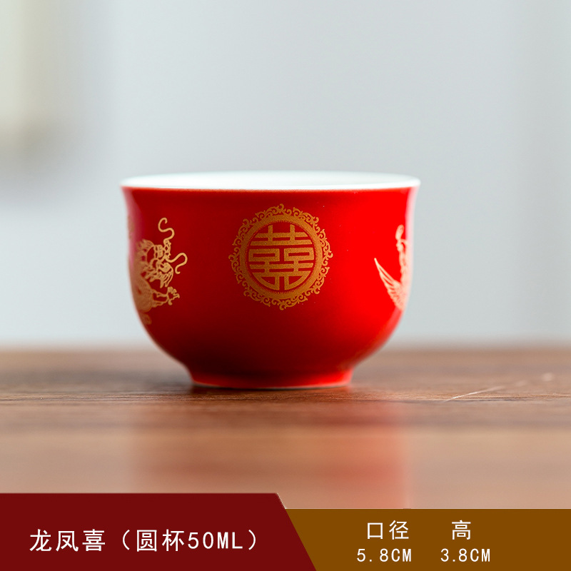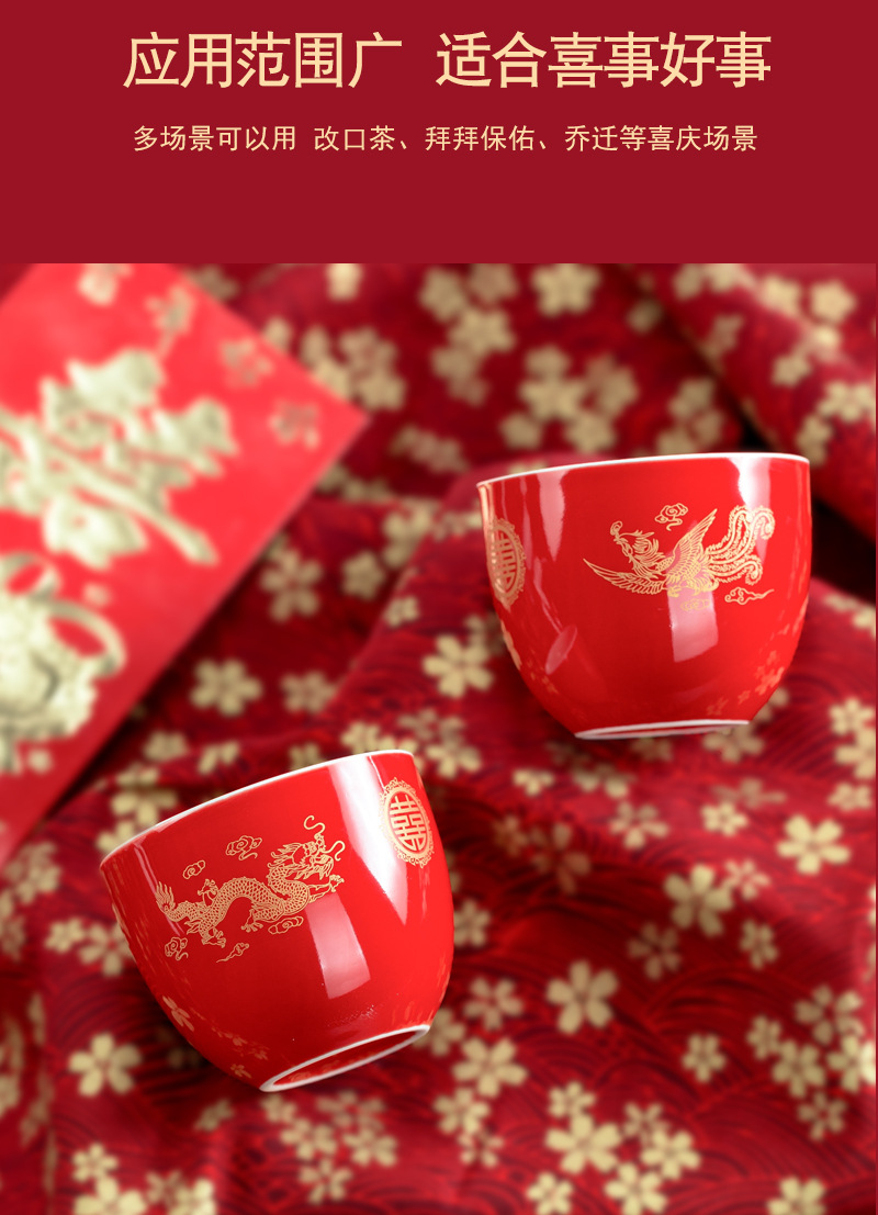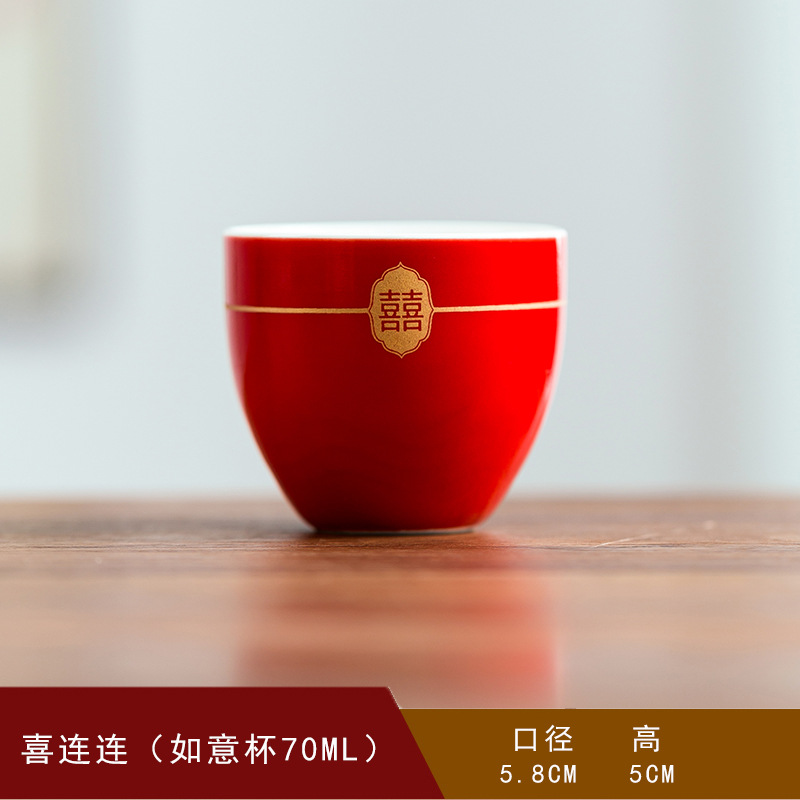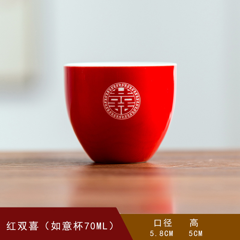 结婚敬茶杯喜事拜拜过年乔迁结婚红釉陶瓷杯功夫茶具茶杯品茗杯