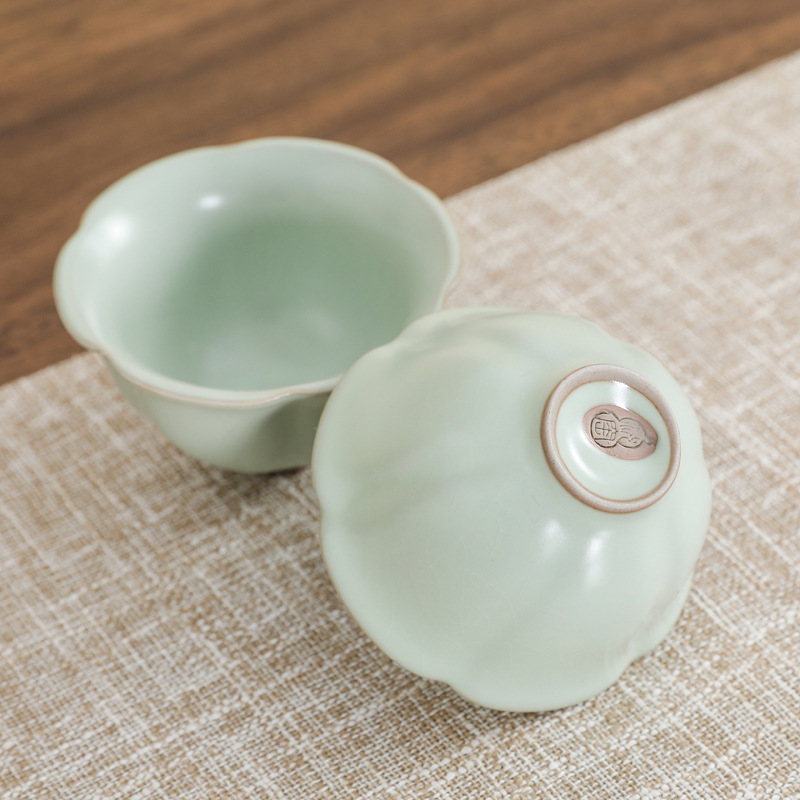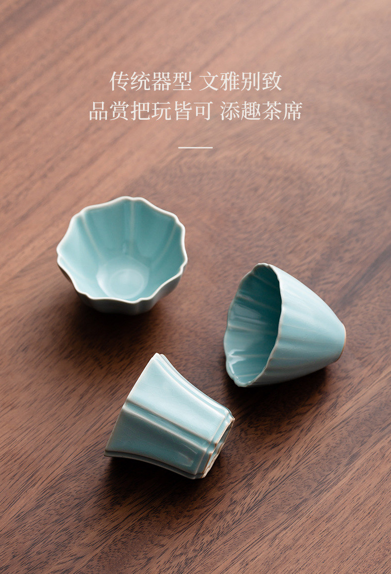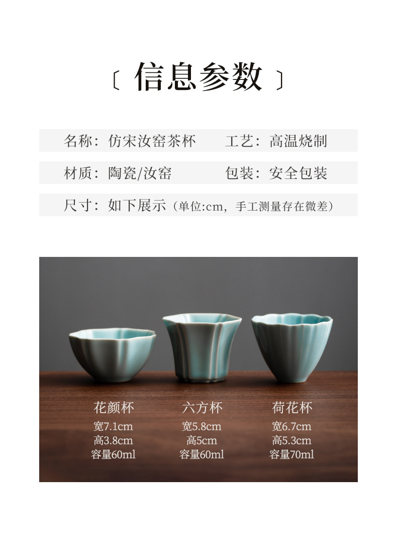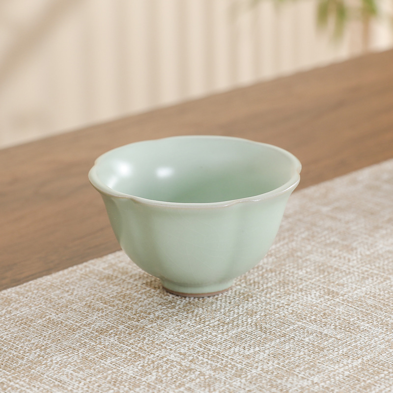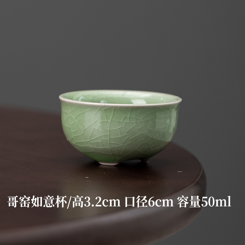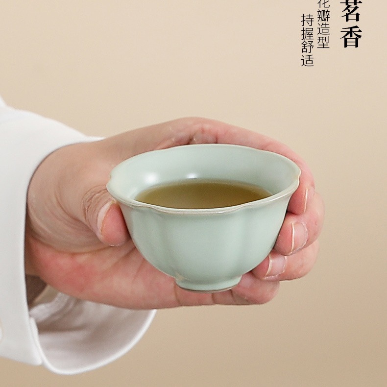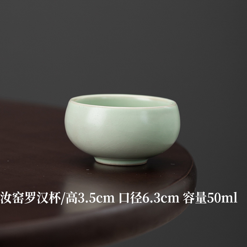 汝窑茶杯功夫茶具泡茶杯开片可养家用主人杯单个品茗杯哥窑陶瓷杯