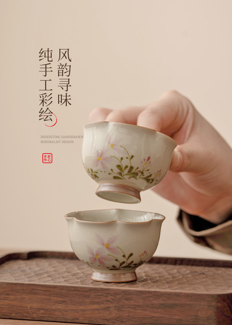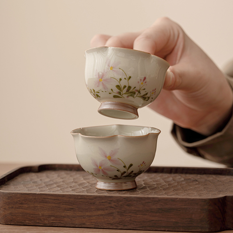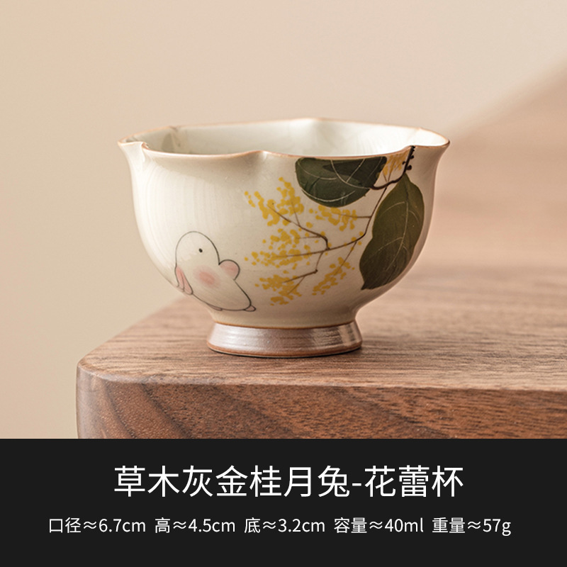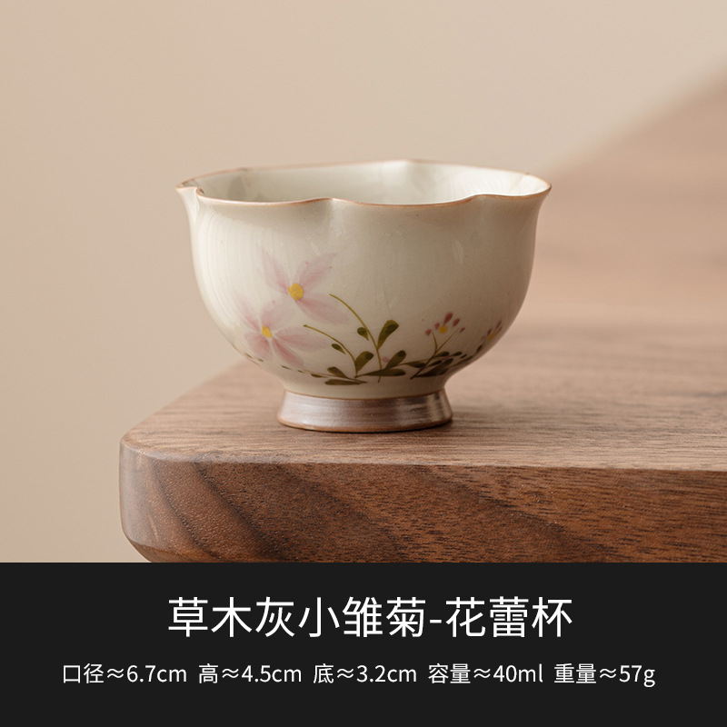 草木灰小雏菊花蕾杯喝茶杯陶瓷主人杯单杯家用功夫茶具品茗杯茶盏