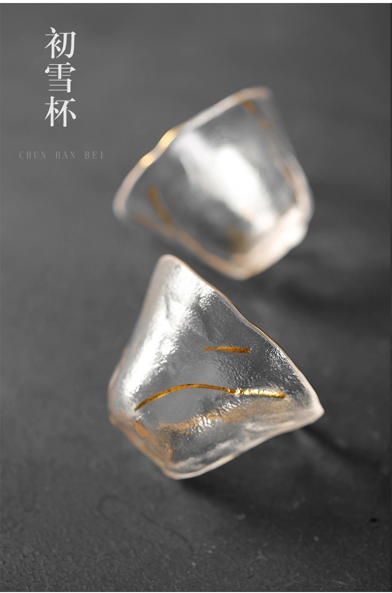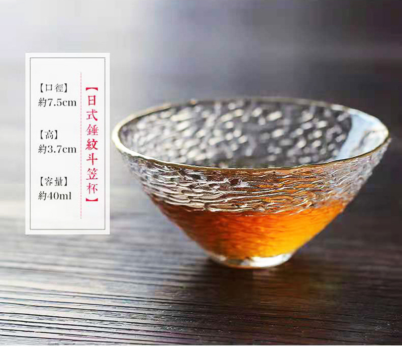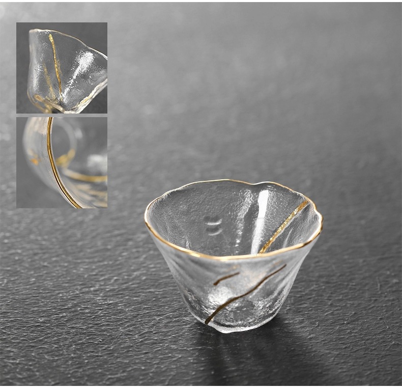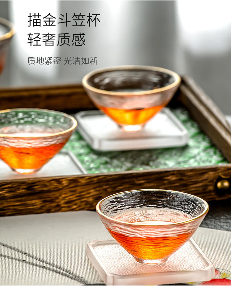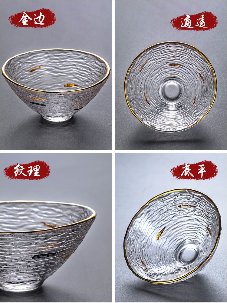 日式描金锤纹玻璃杯ins风小杯子功夫茶杯金边清酒杯主人茶碗茶具