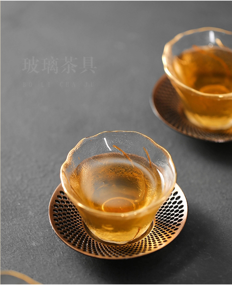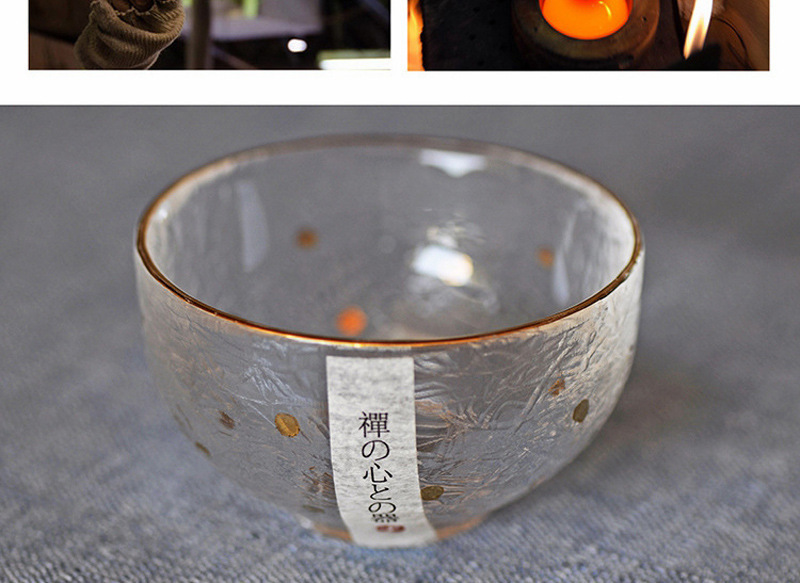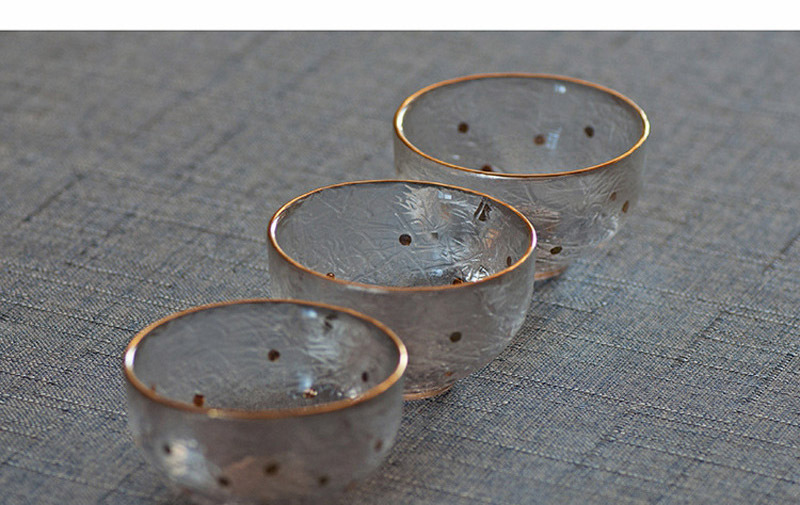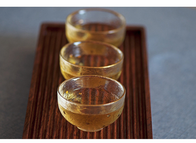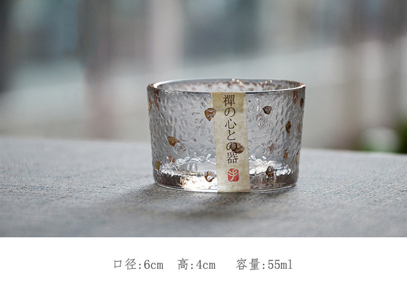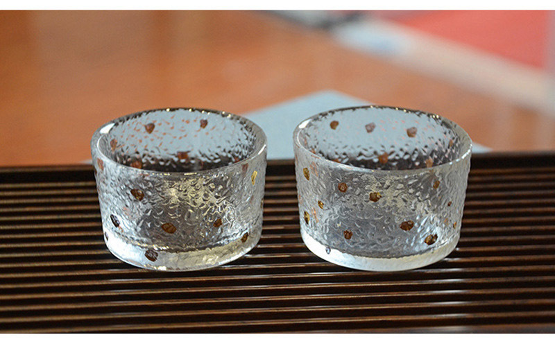 日式描金锤纹玻璃杯ins风小杯子功夫茶杯金边清酒杯主人茶碗茶具