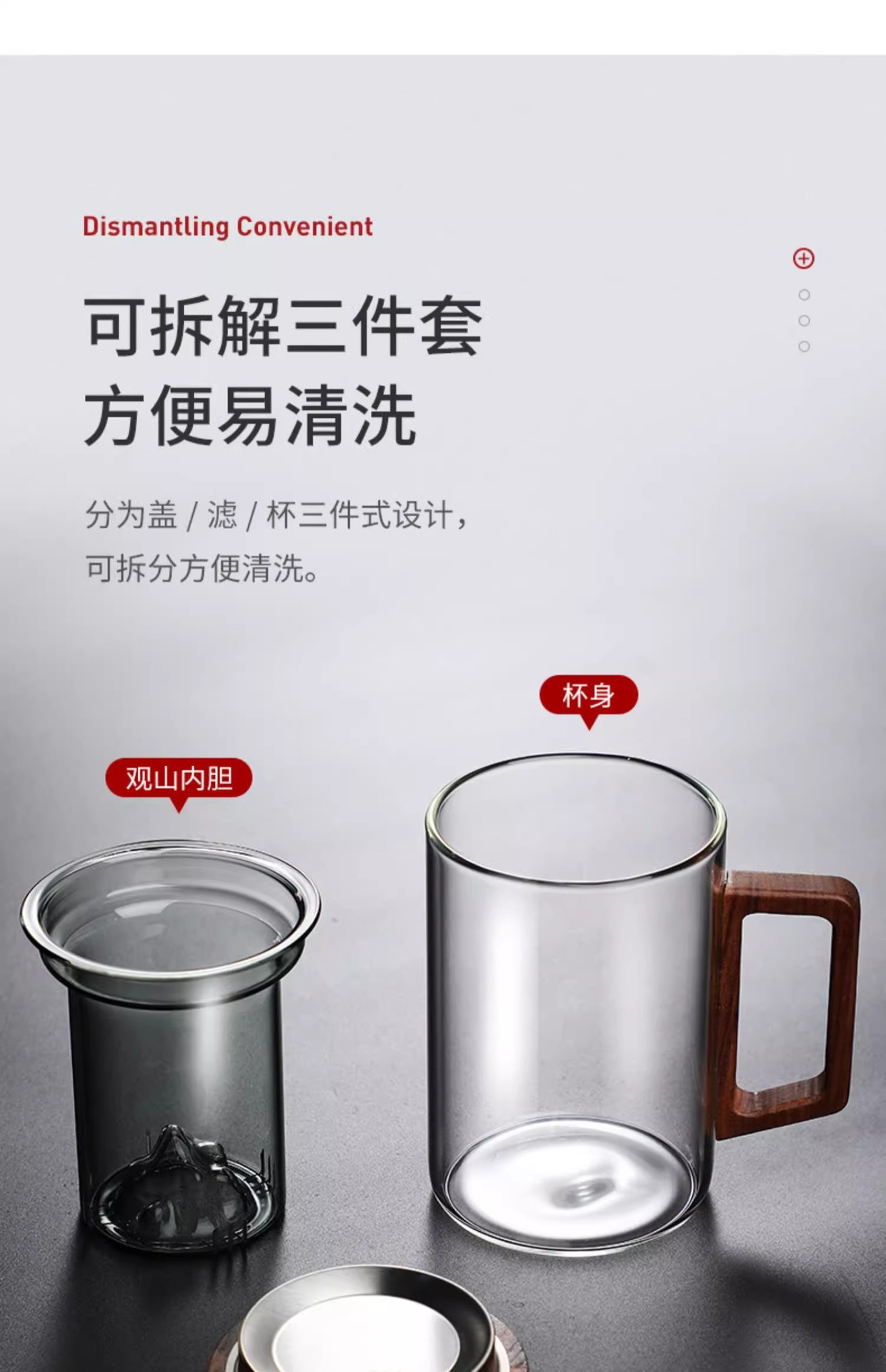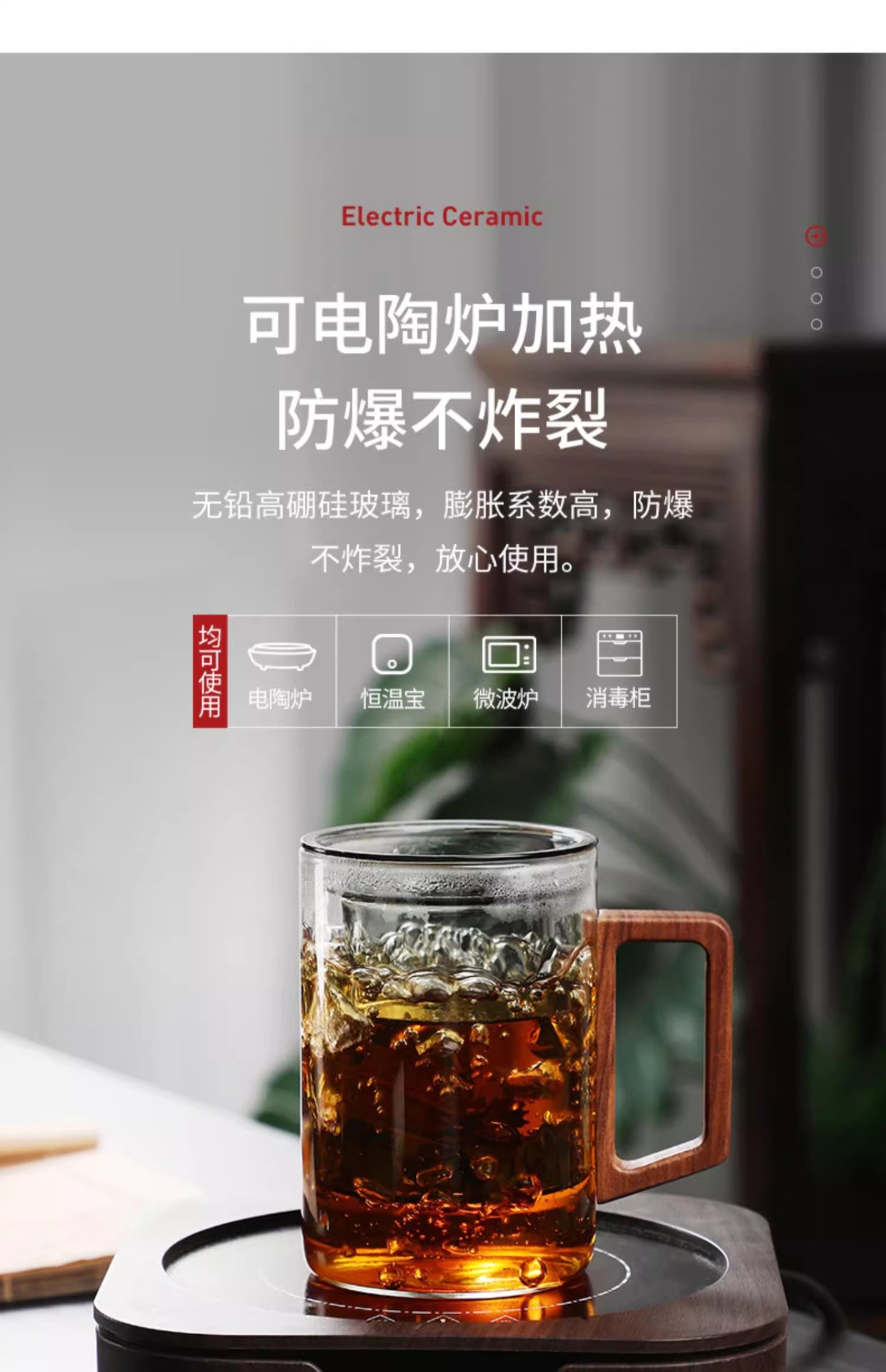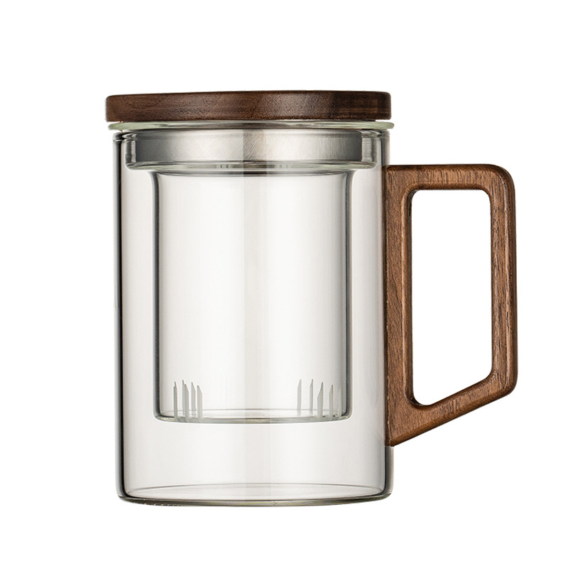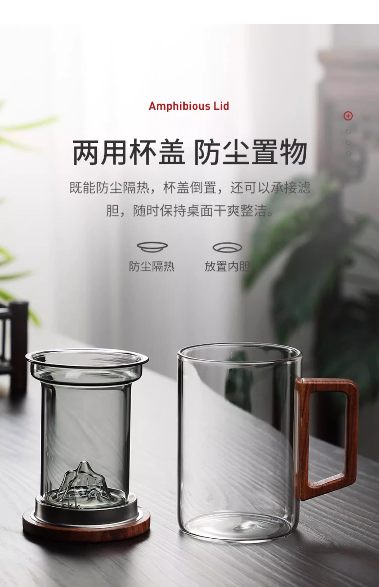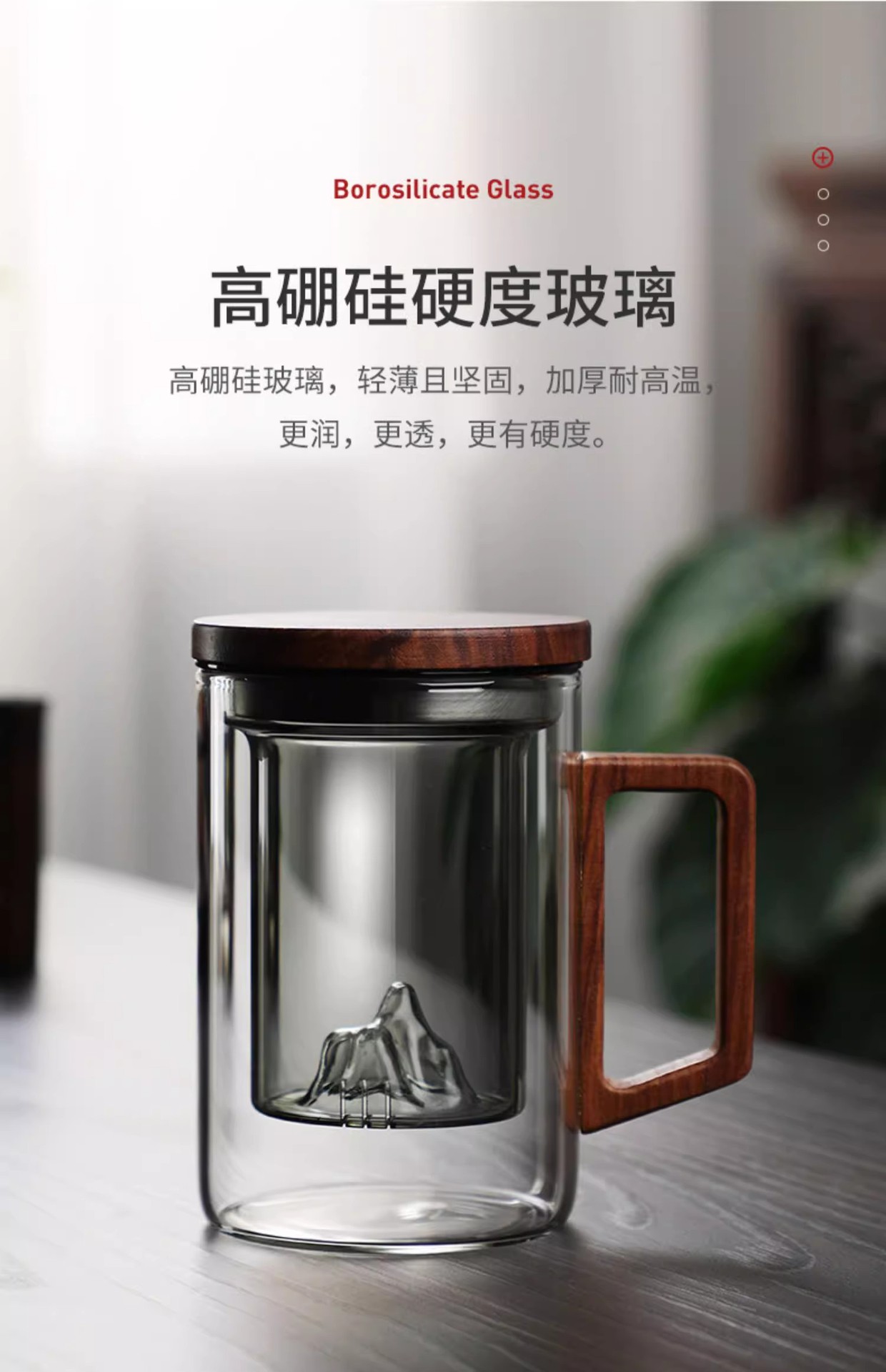 胡桃木把手茶水分离杯木盖子泡茶杯新中式绿茶杯办公三件杯喝水杯