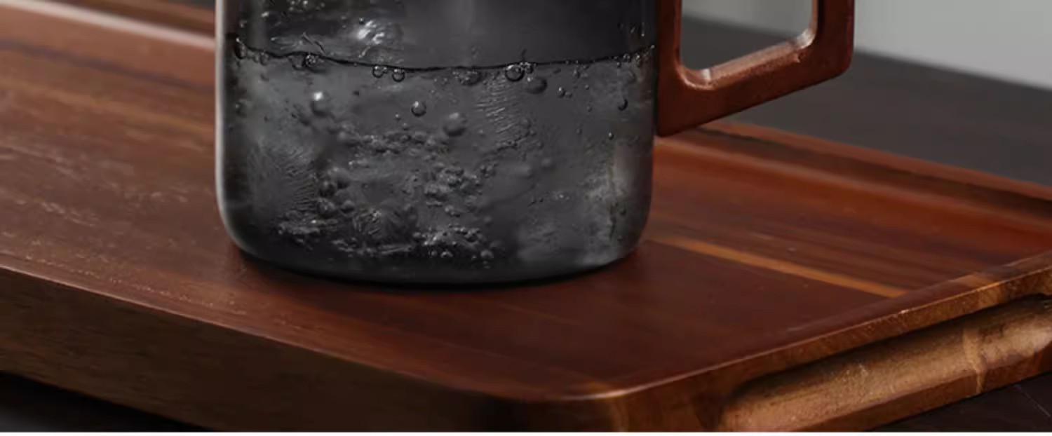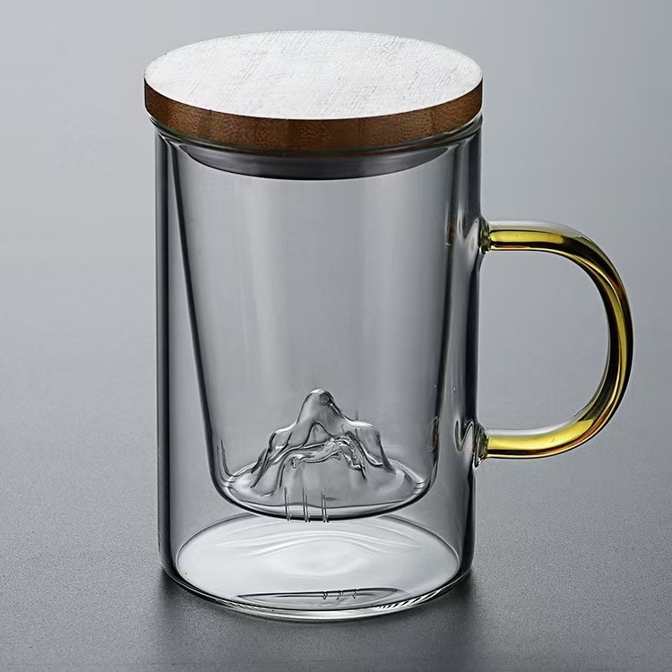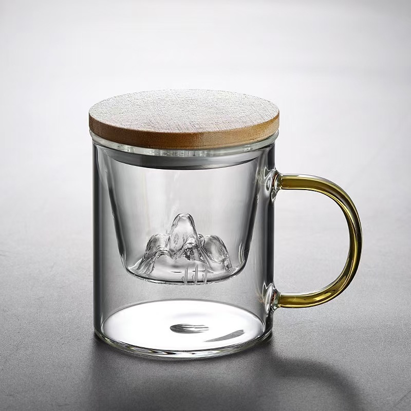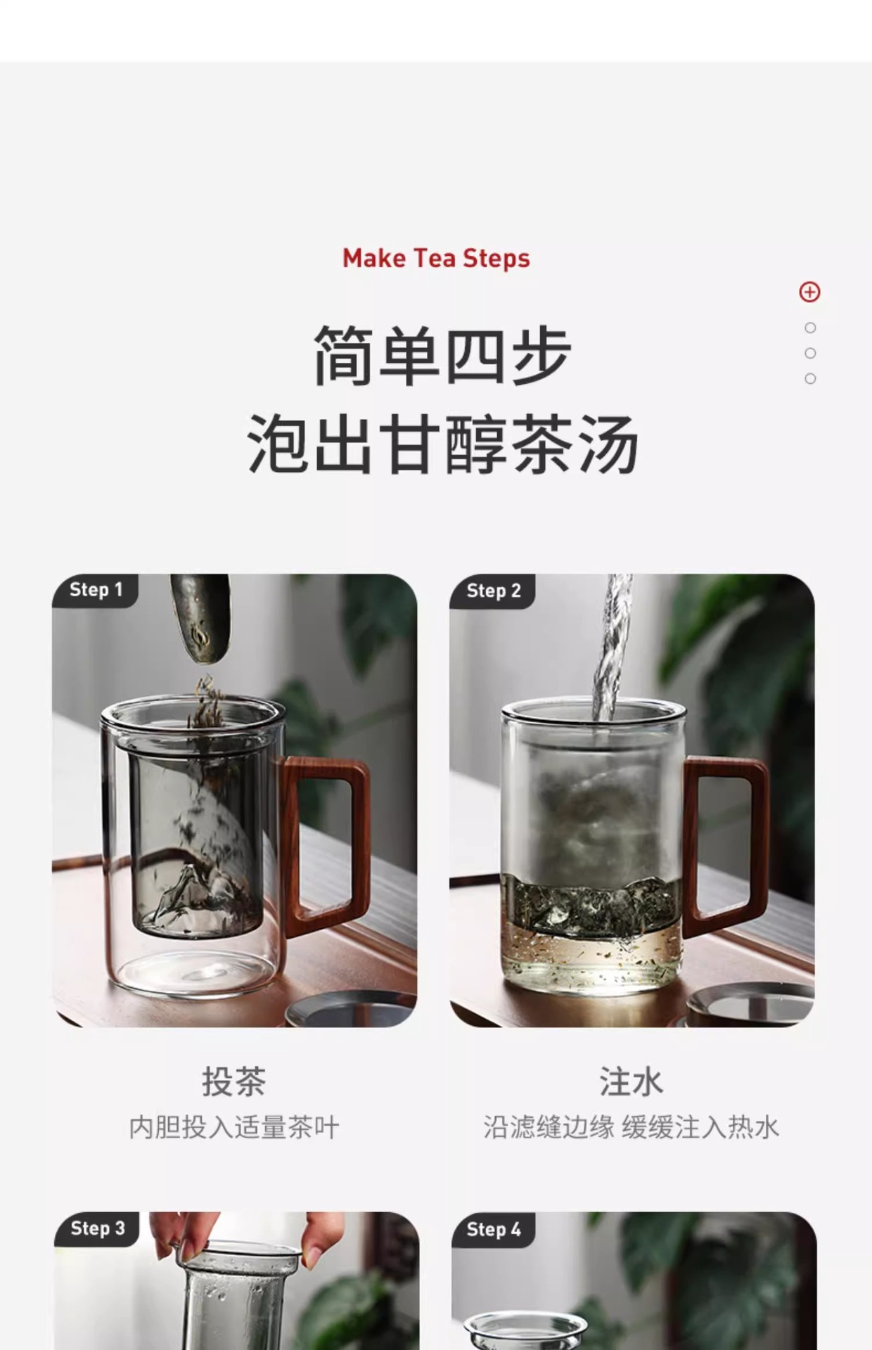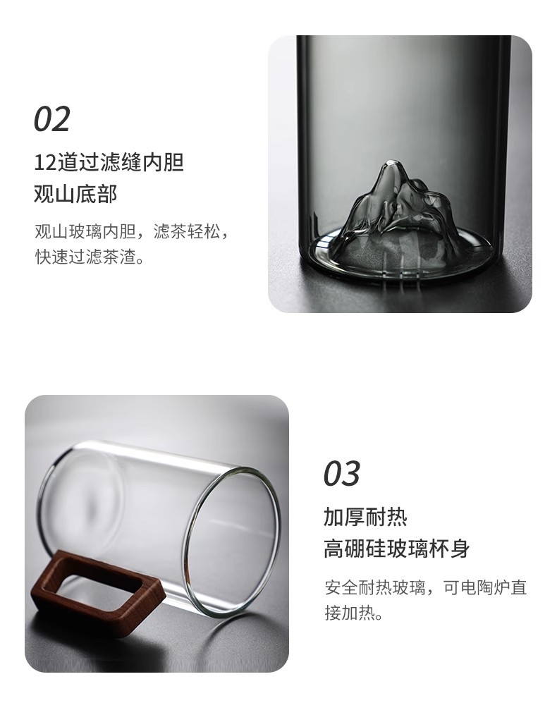 胡桃木把手茶水分离杯木盖子泡茶杯新中式绿茶杯办公三件杯喝水杯