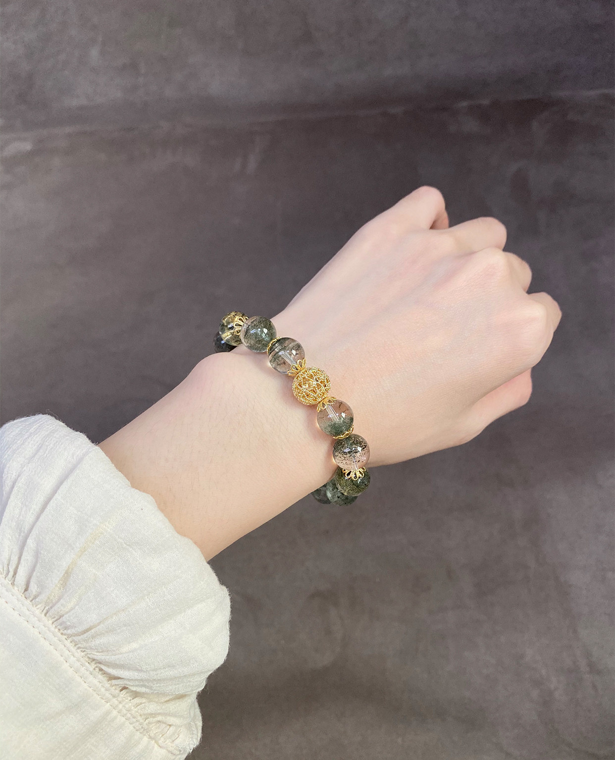 财富天然石绿幽灵手串女ins简约轻奢小众设计温柔气质百搭手链女