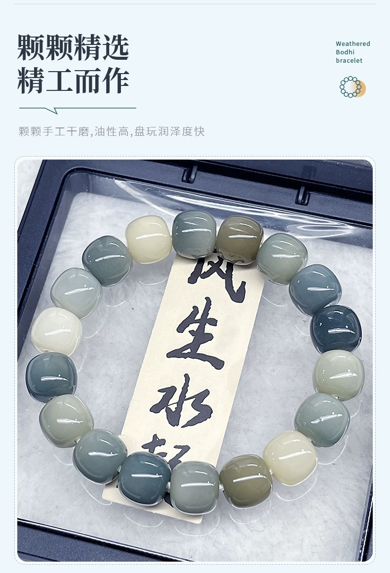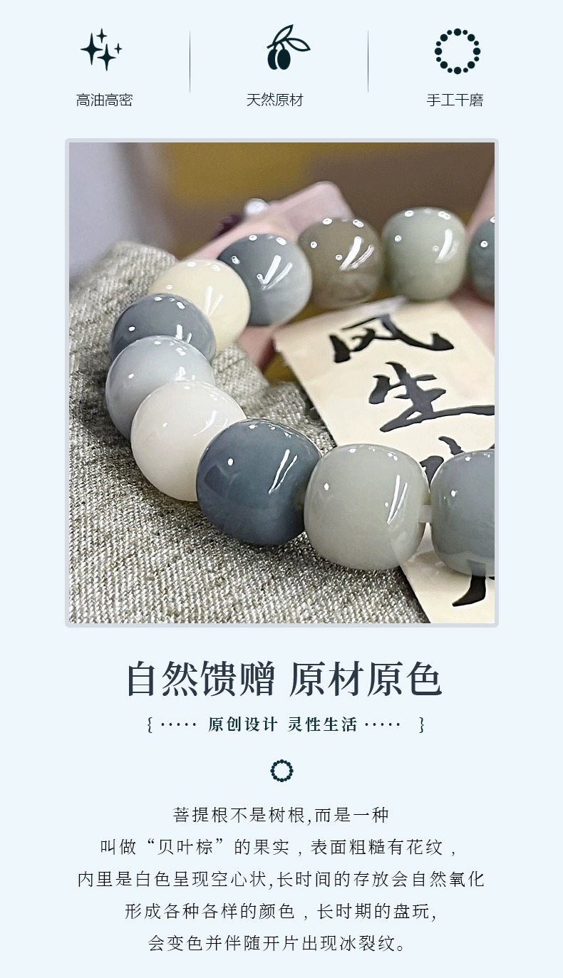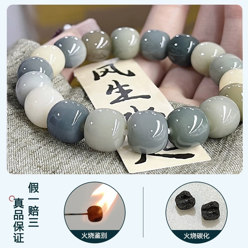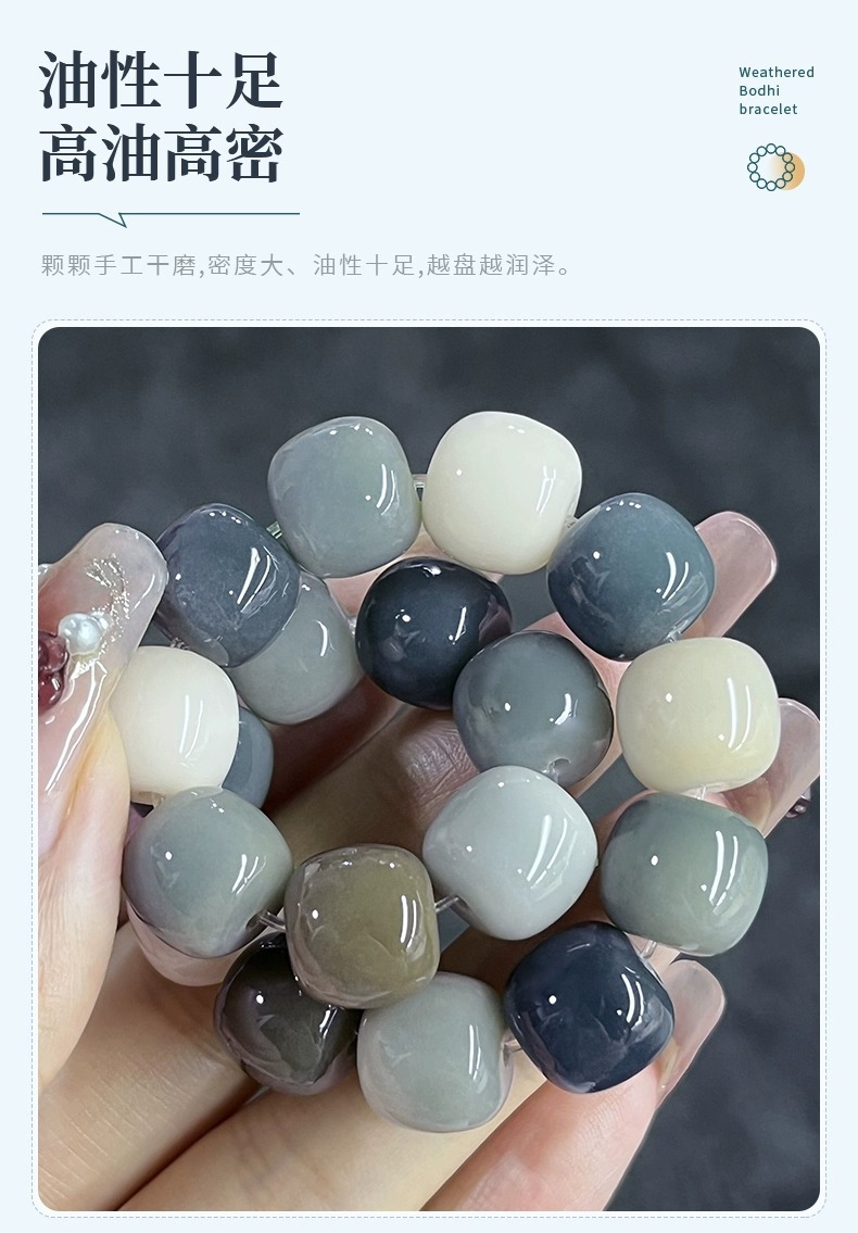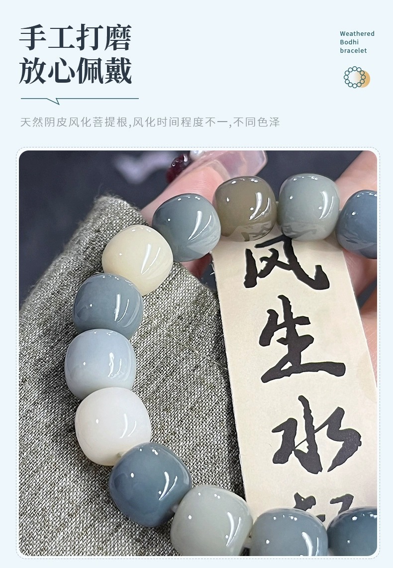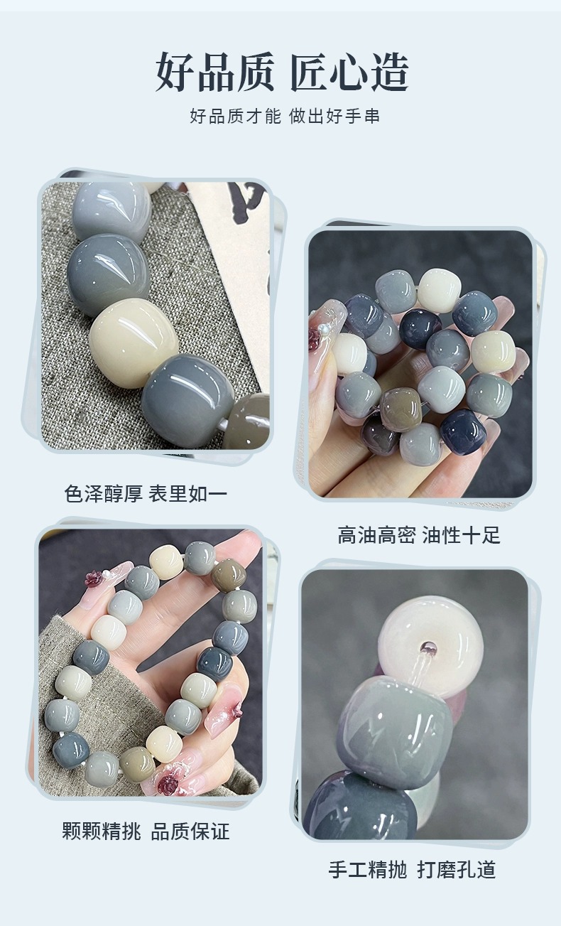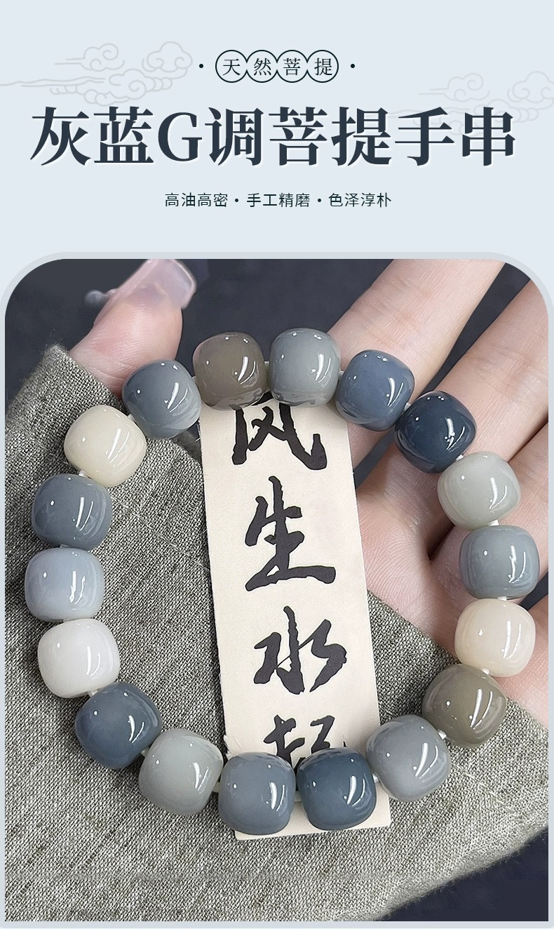 天然海盐色菩提手串学生灰蓝G调菩提子佛珠念珠文玩盘玩手链批发