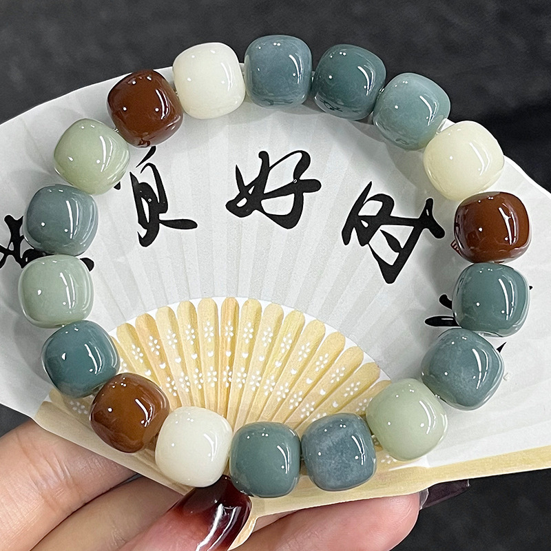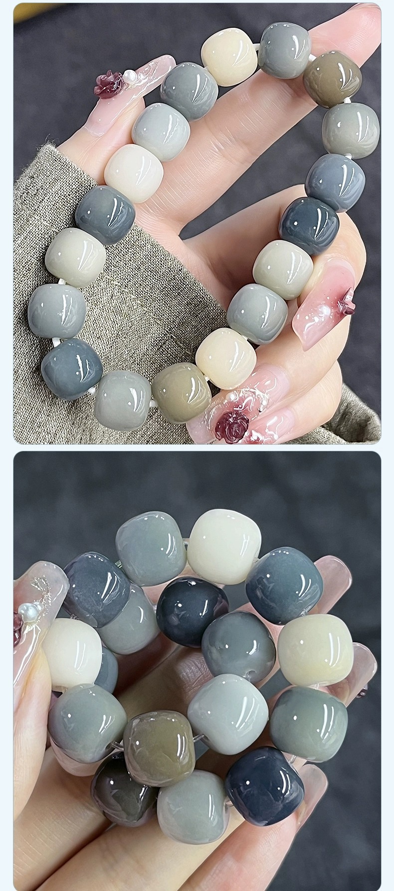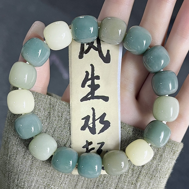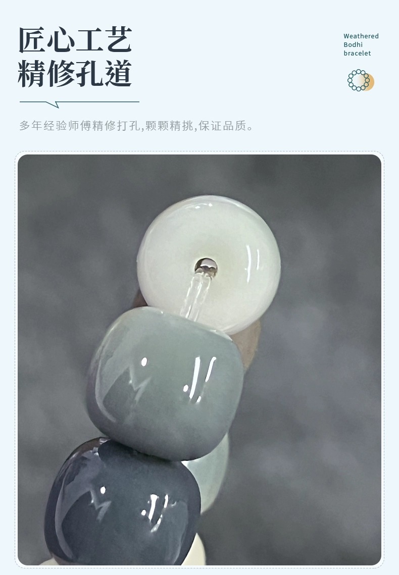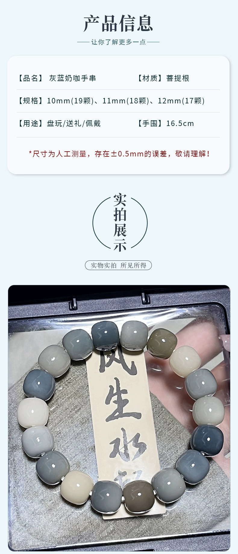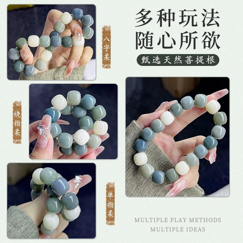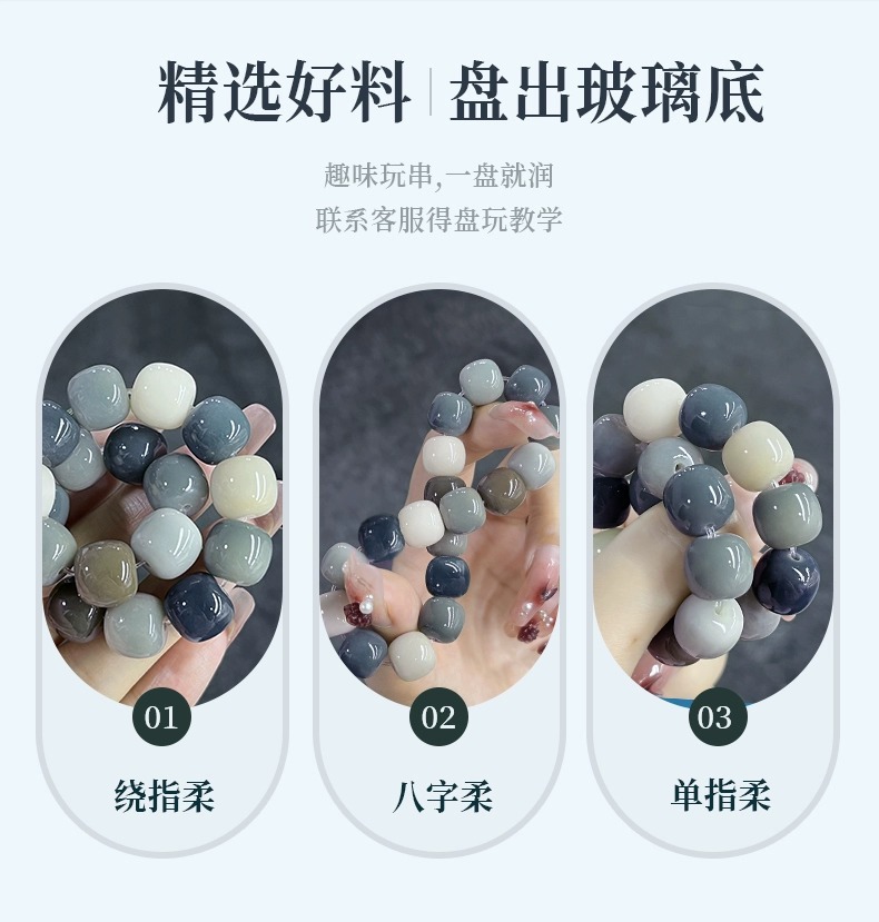 天然海盐色菩提手串学生灰蓝G调菩提子佛珠念珠文玩盘玩手链批发