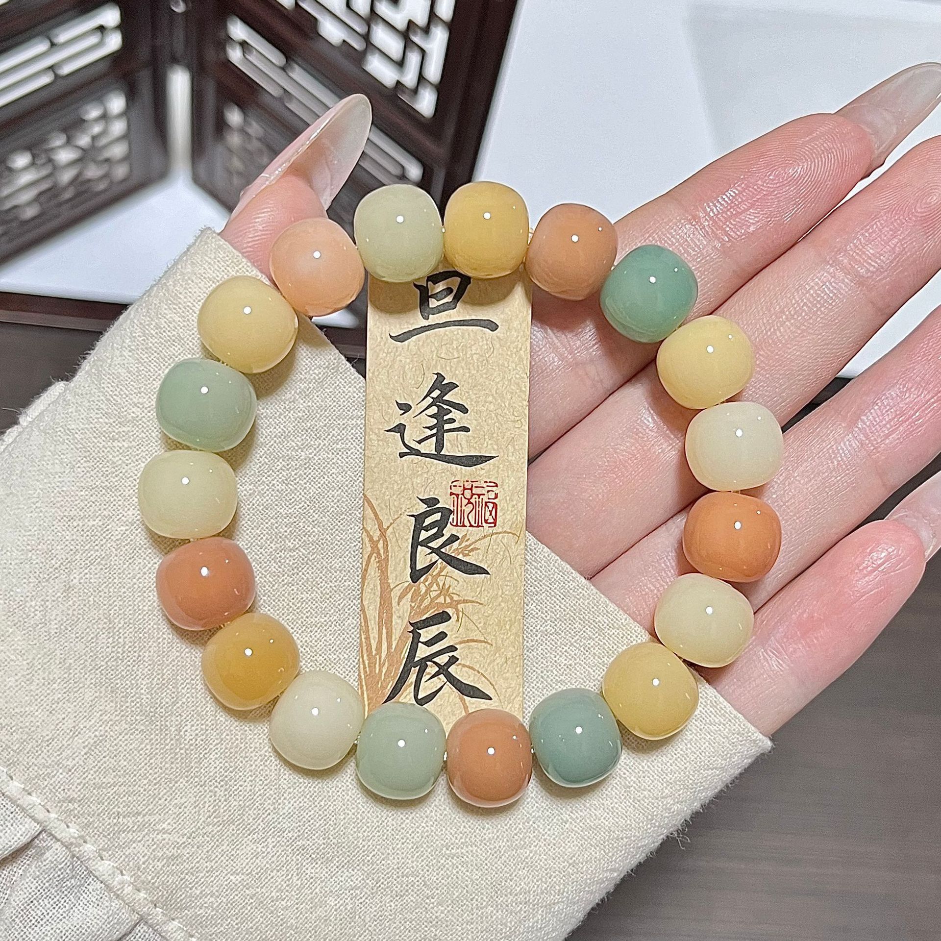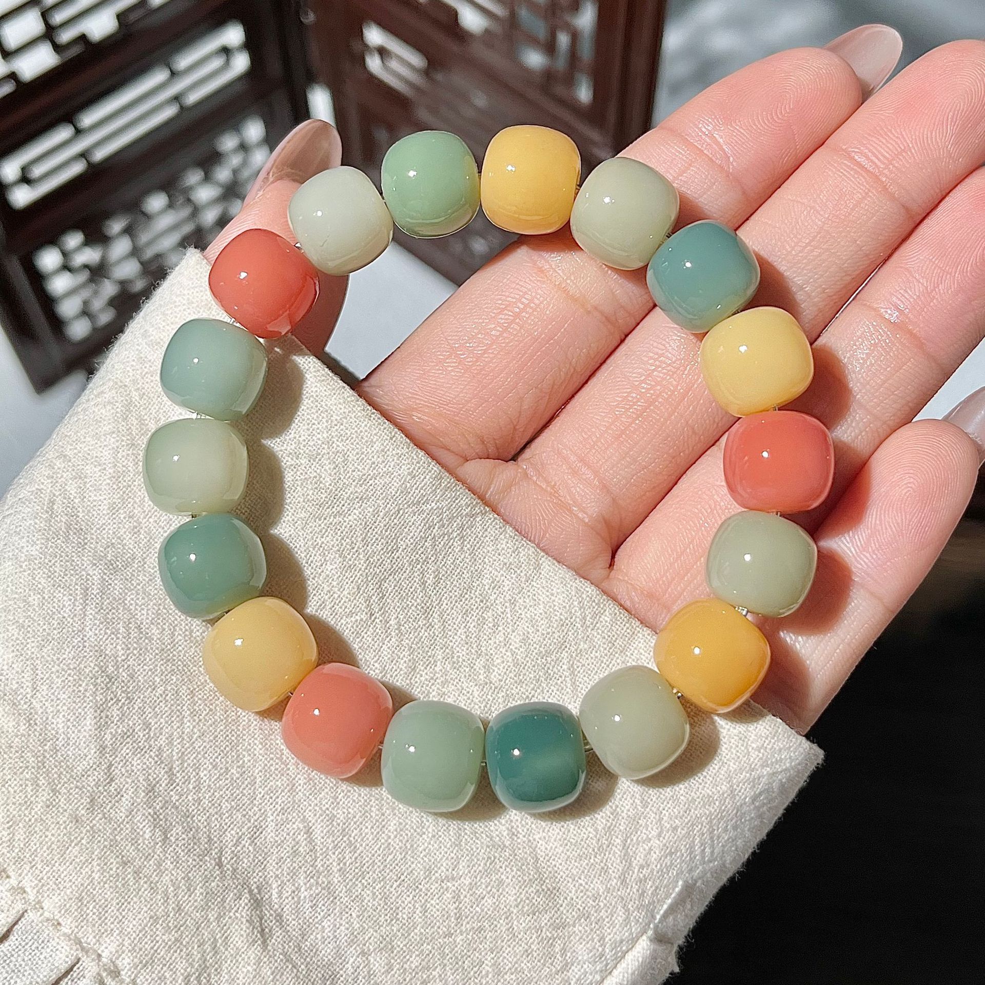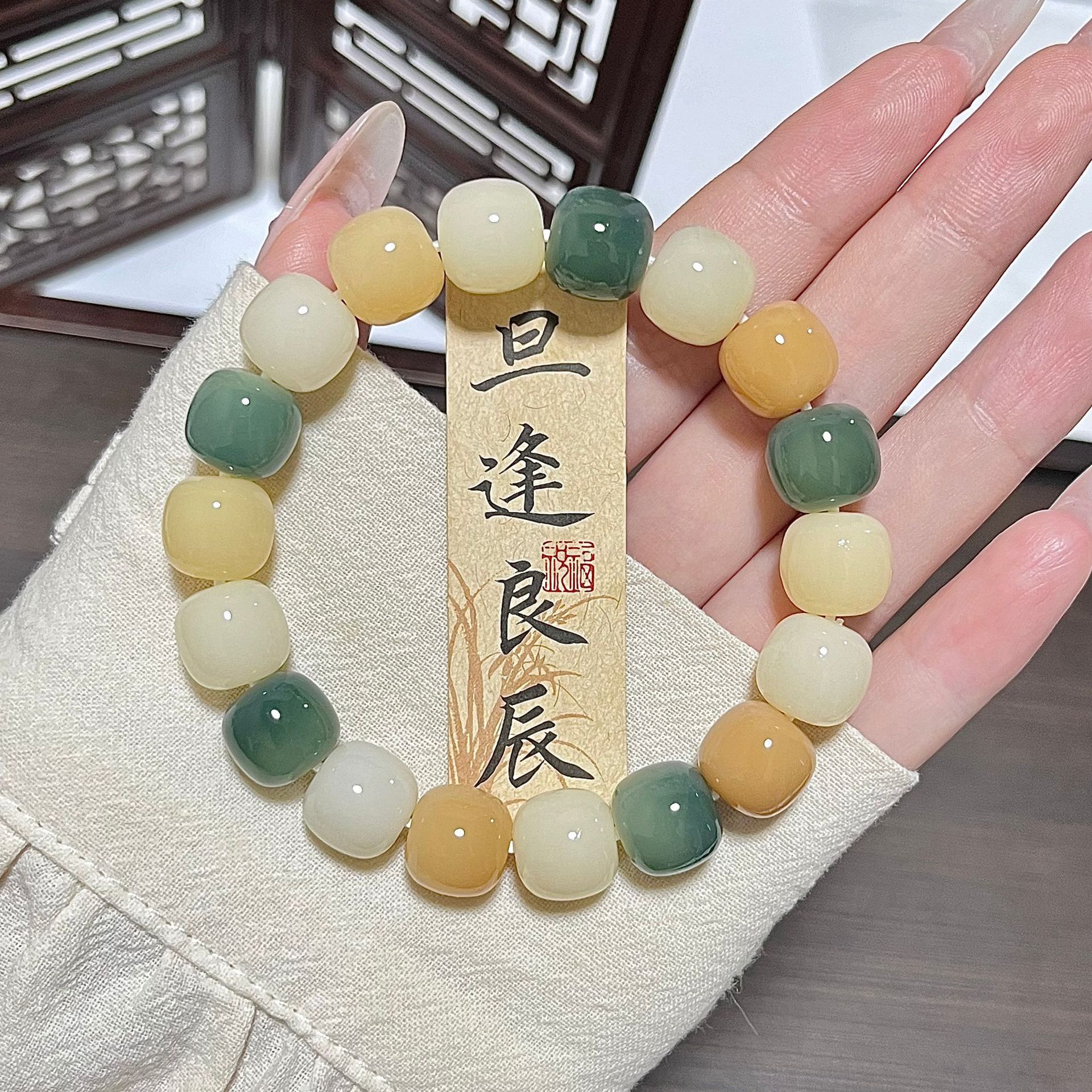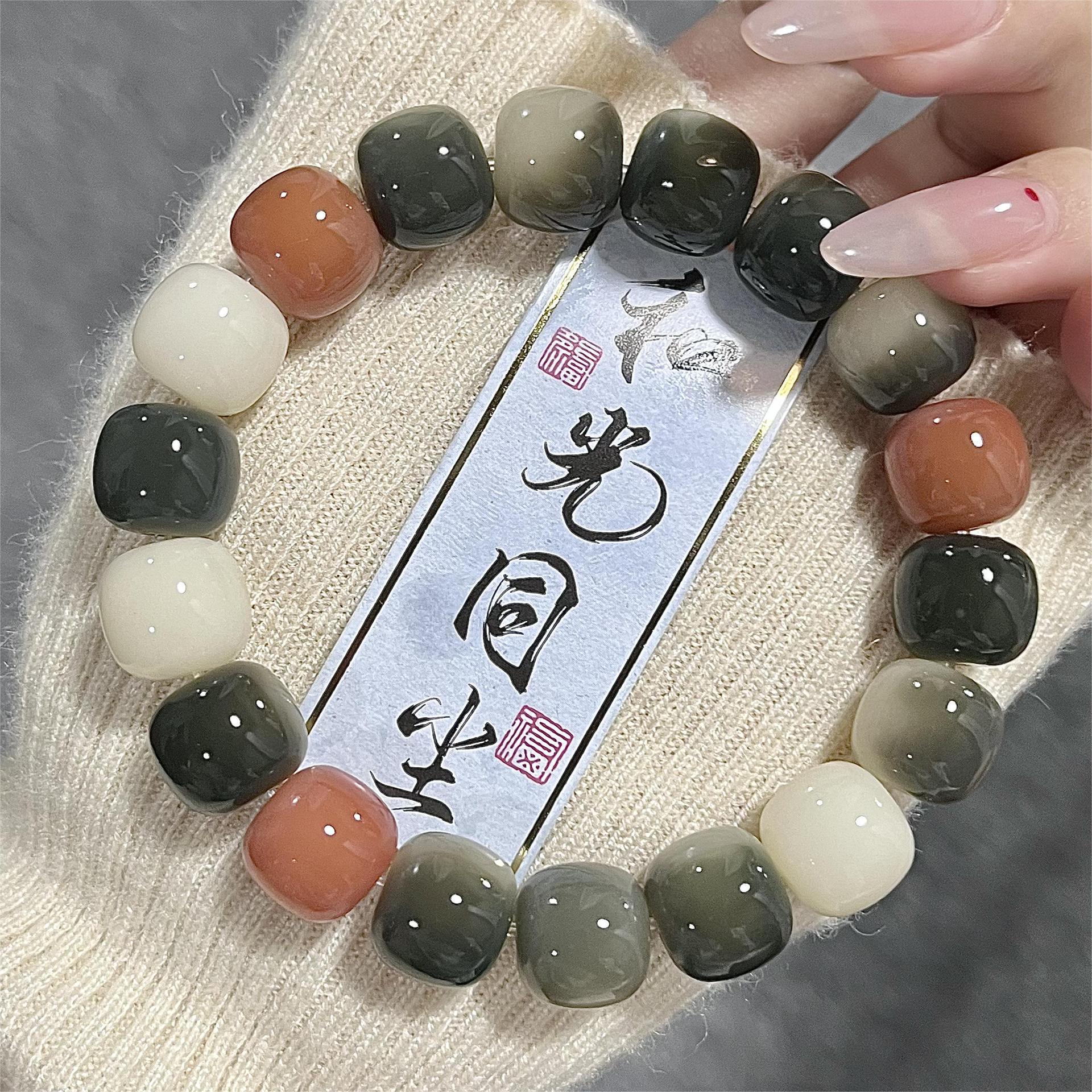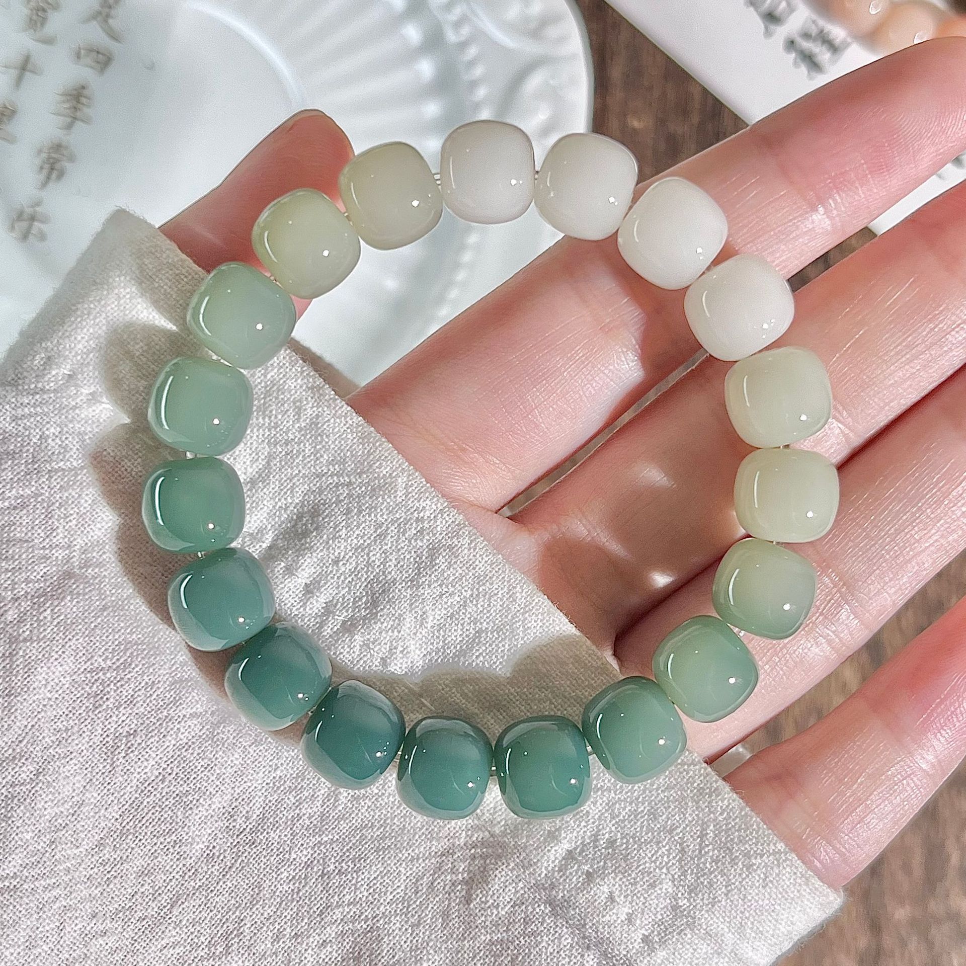 天然海盐色菩提手串学生灰蓝G调菩提子佛珠念珠文玩盘玩手链批发